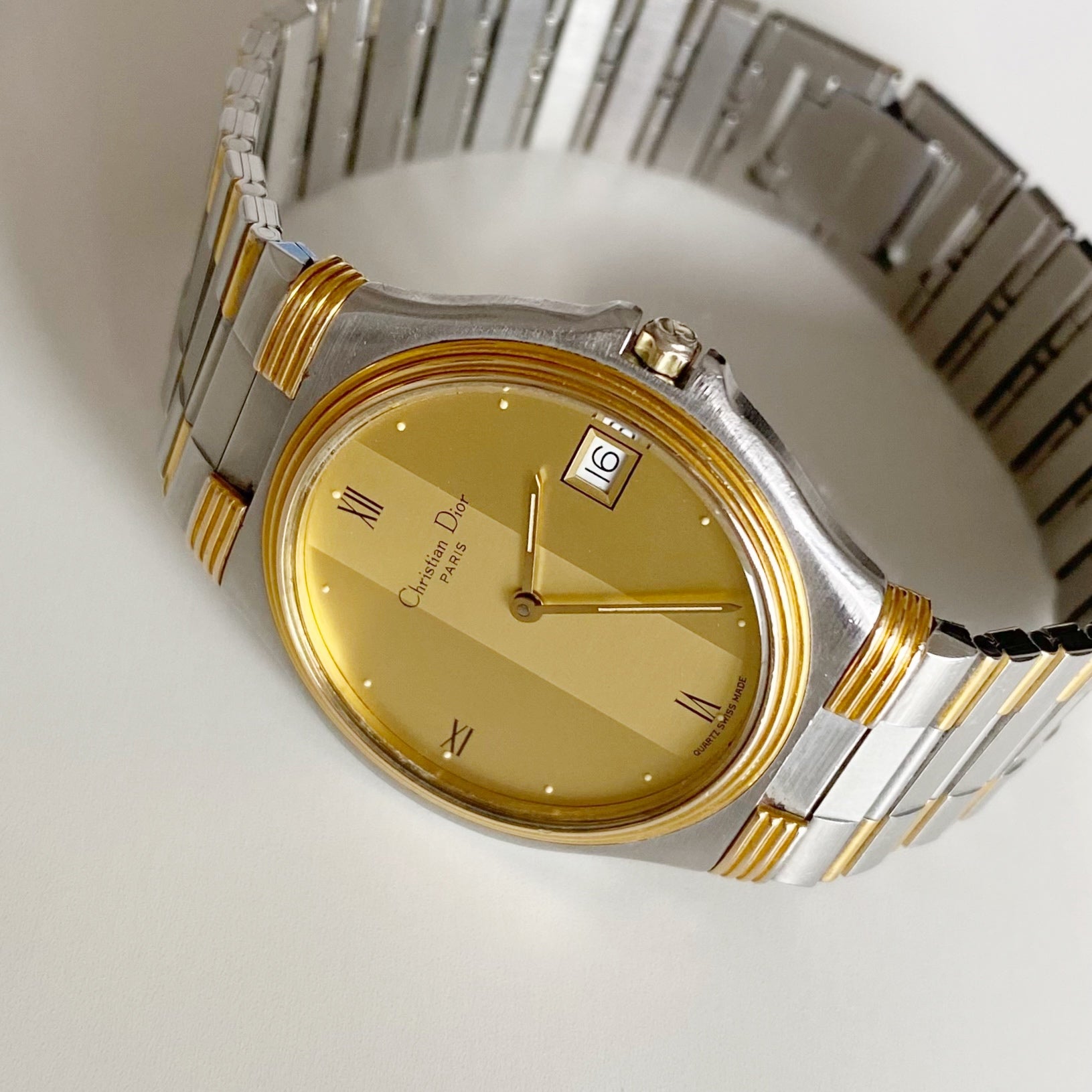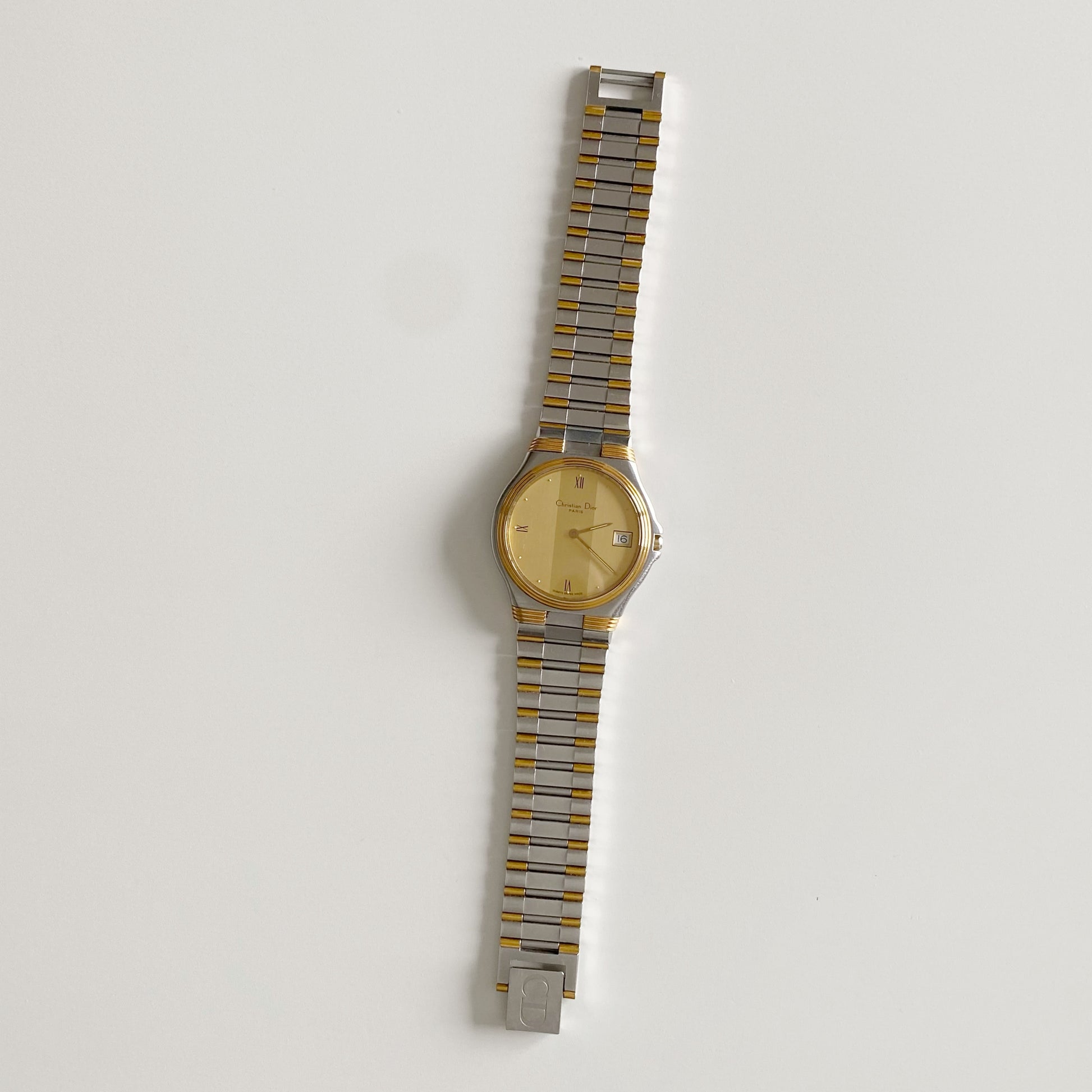 Dior 1990s Date Round Dial Two Tone Watch (Large)