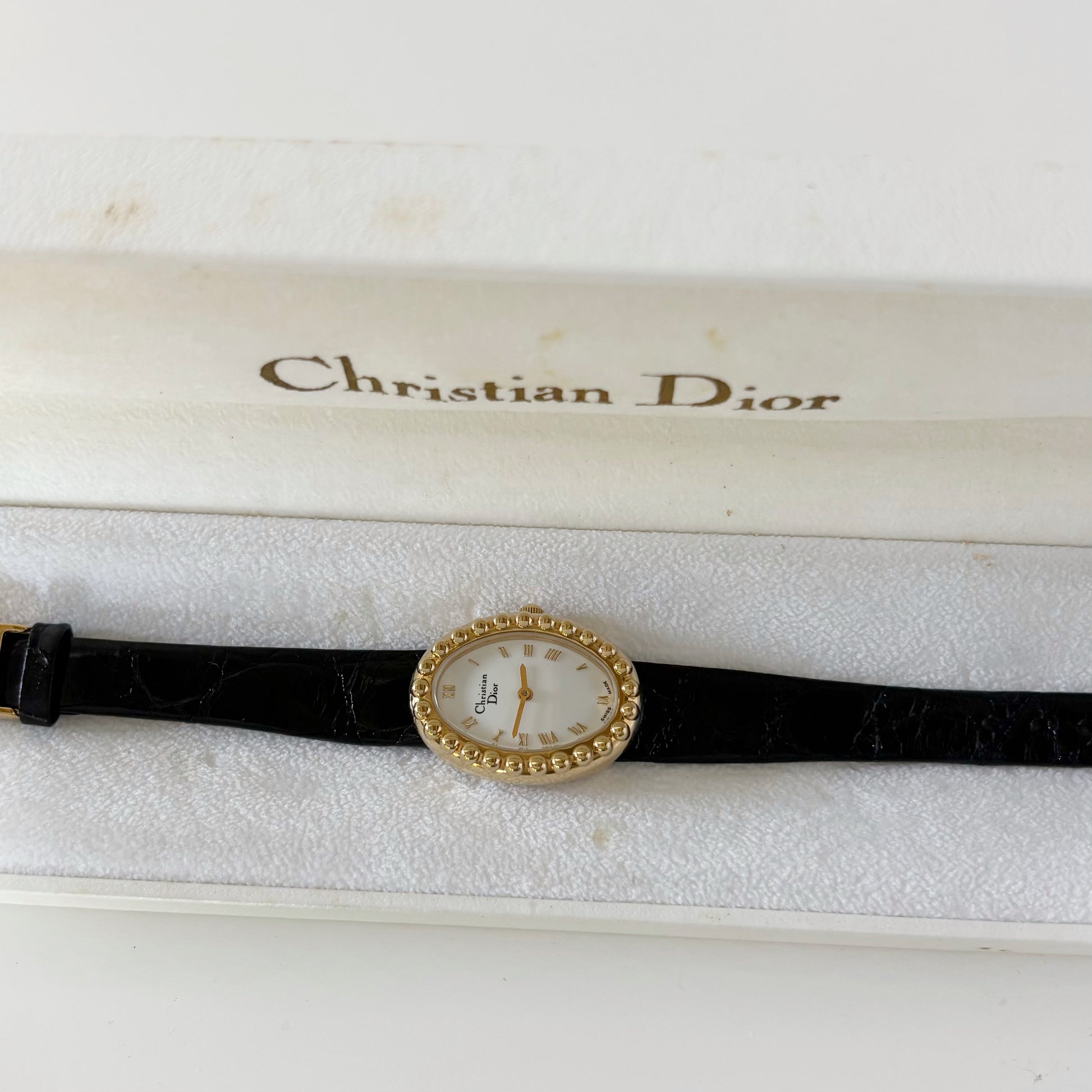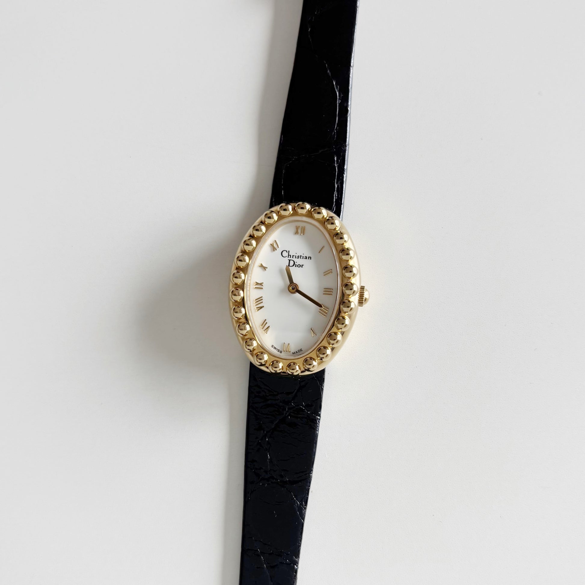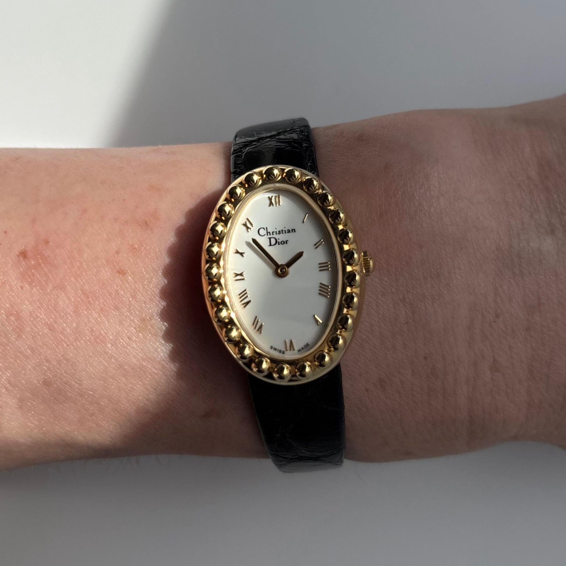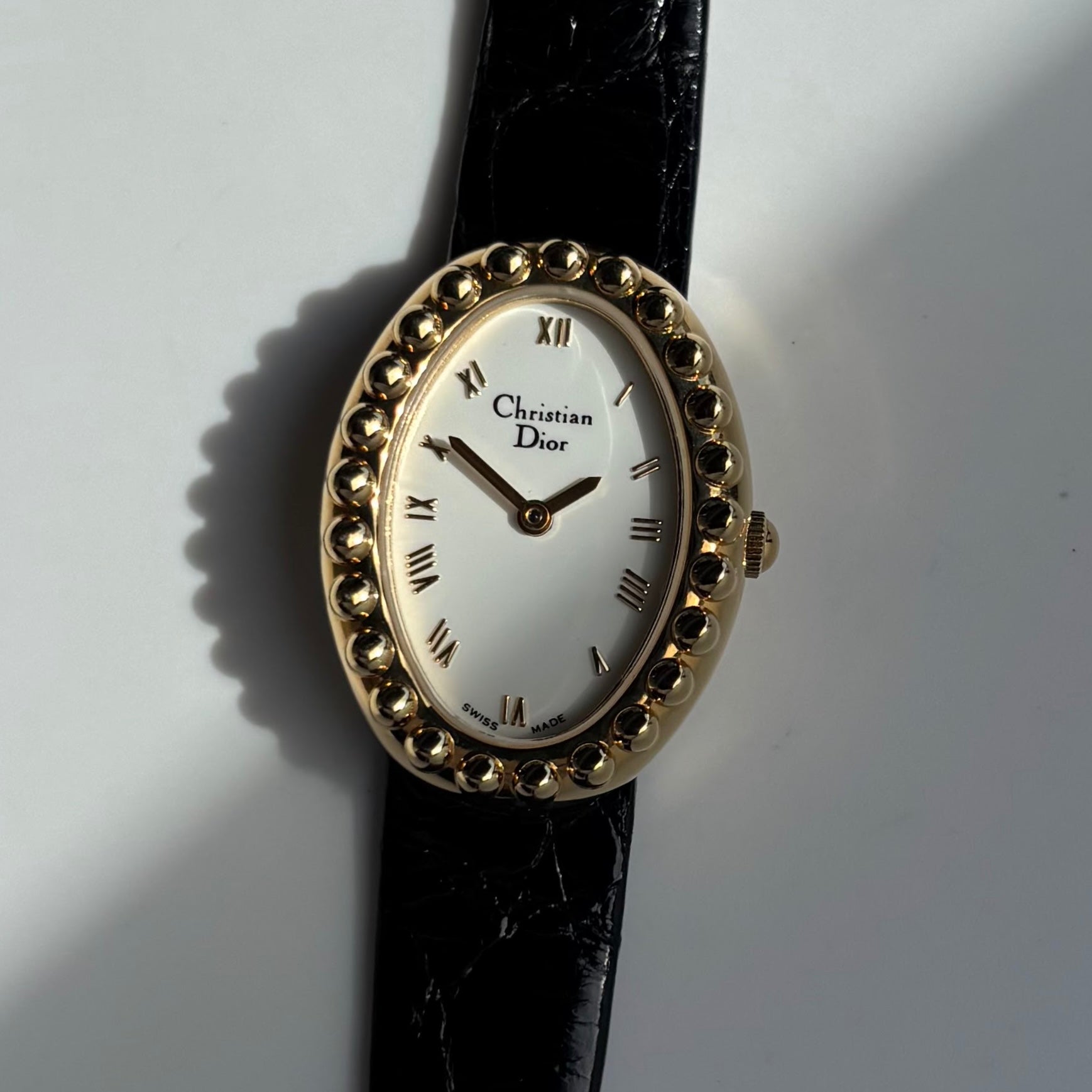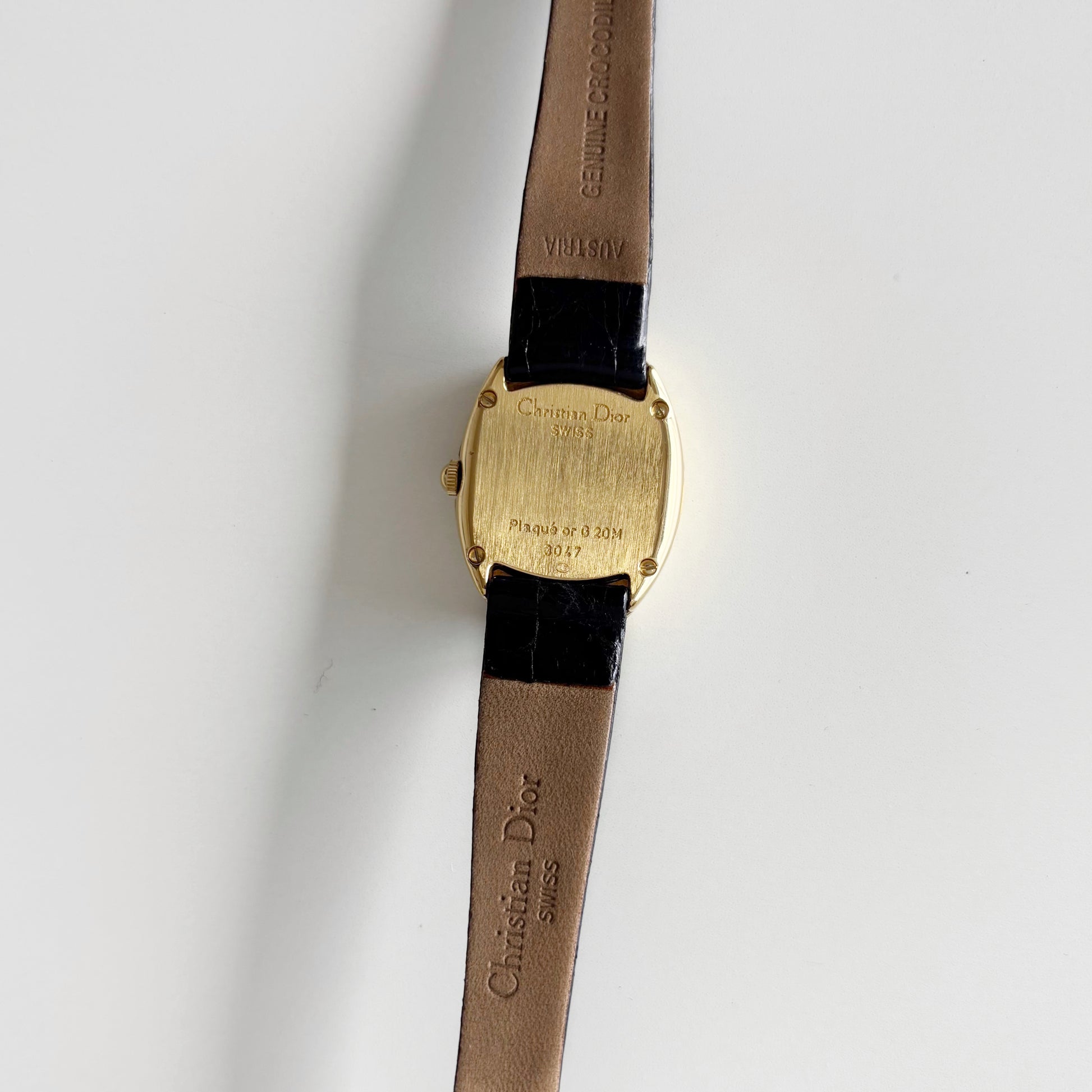 Dior 1990s Baignoire Gold Plated Leather Watch