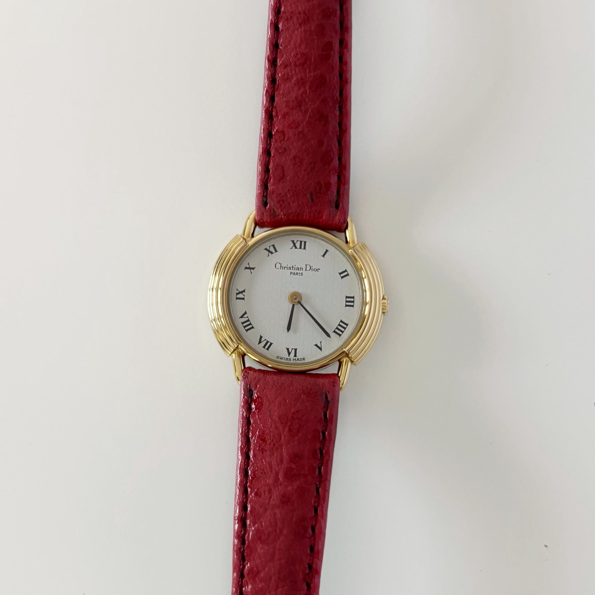 Dior 1990s CD Logo Round Dial Gold Plated Watch