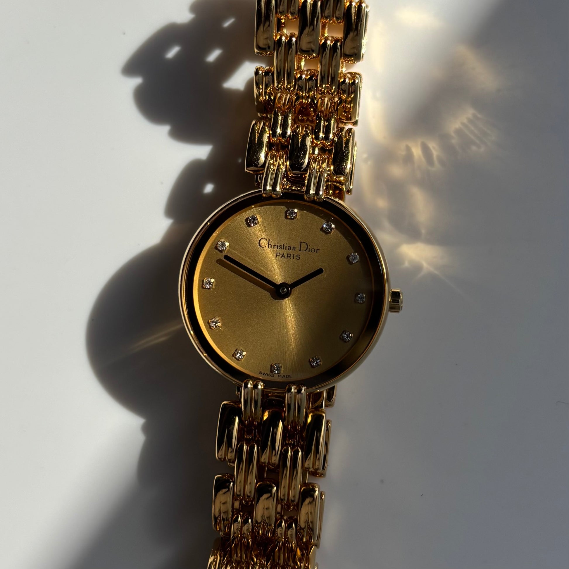 Dior 1990s Round Gold Dial Gold Plated Watch