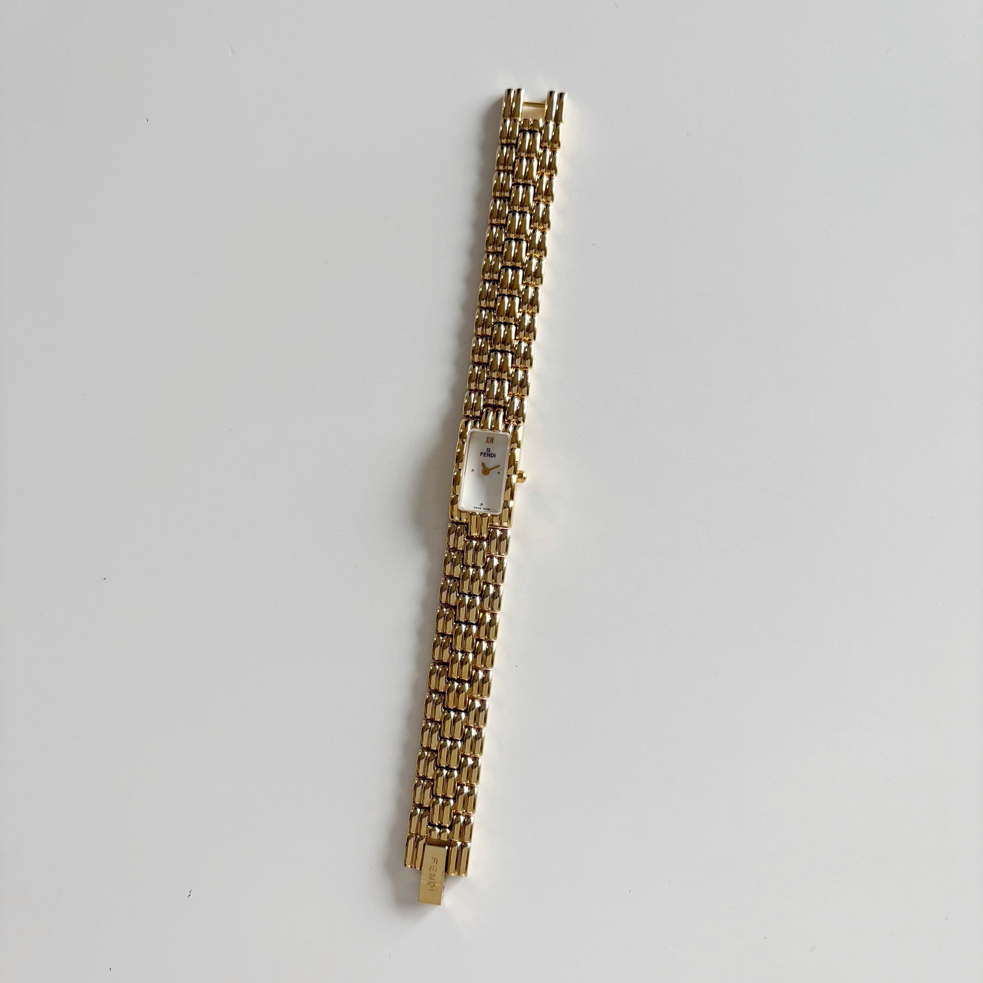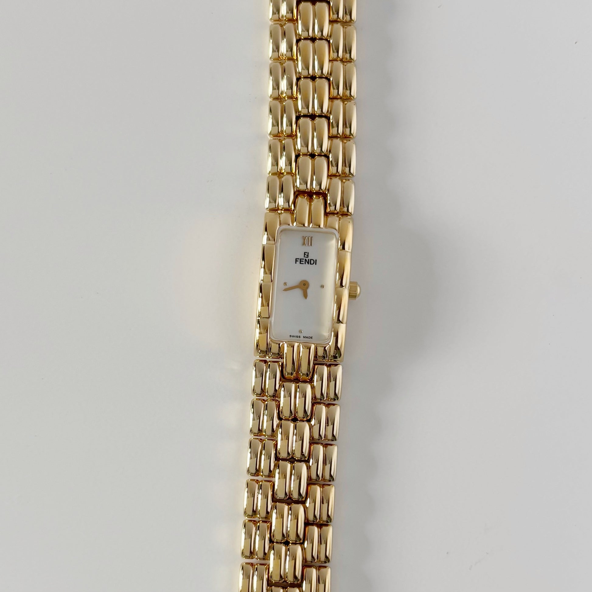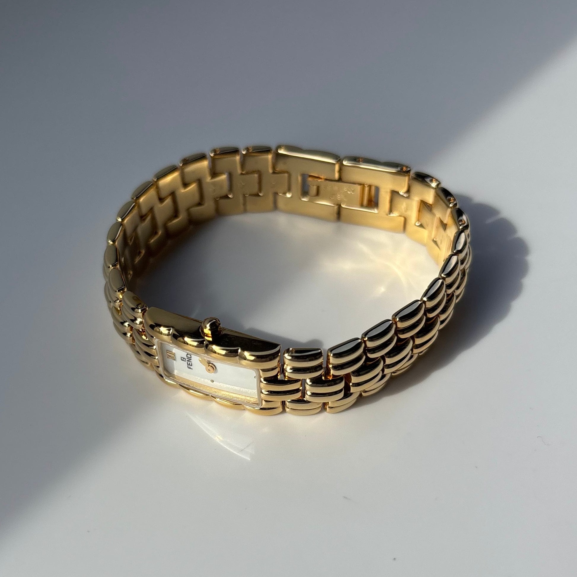 Fendi 1990s Rectangular Dial Gold Plated Watch