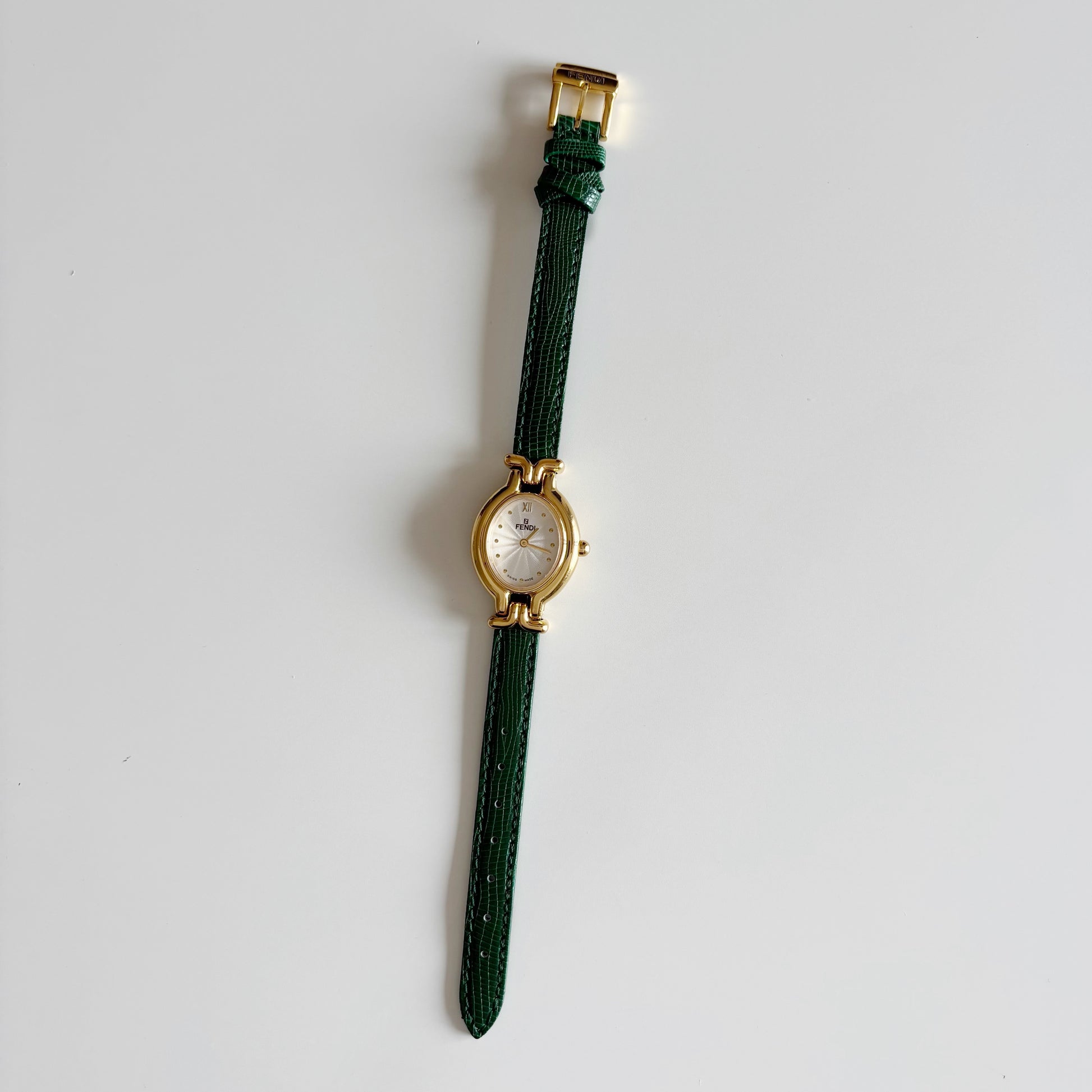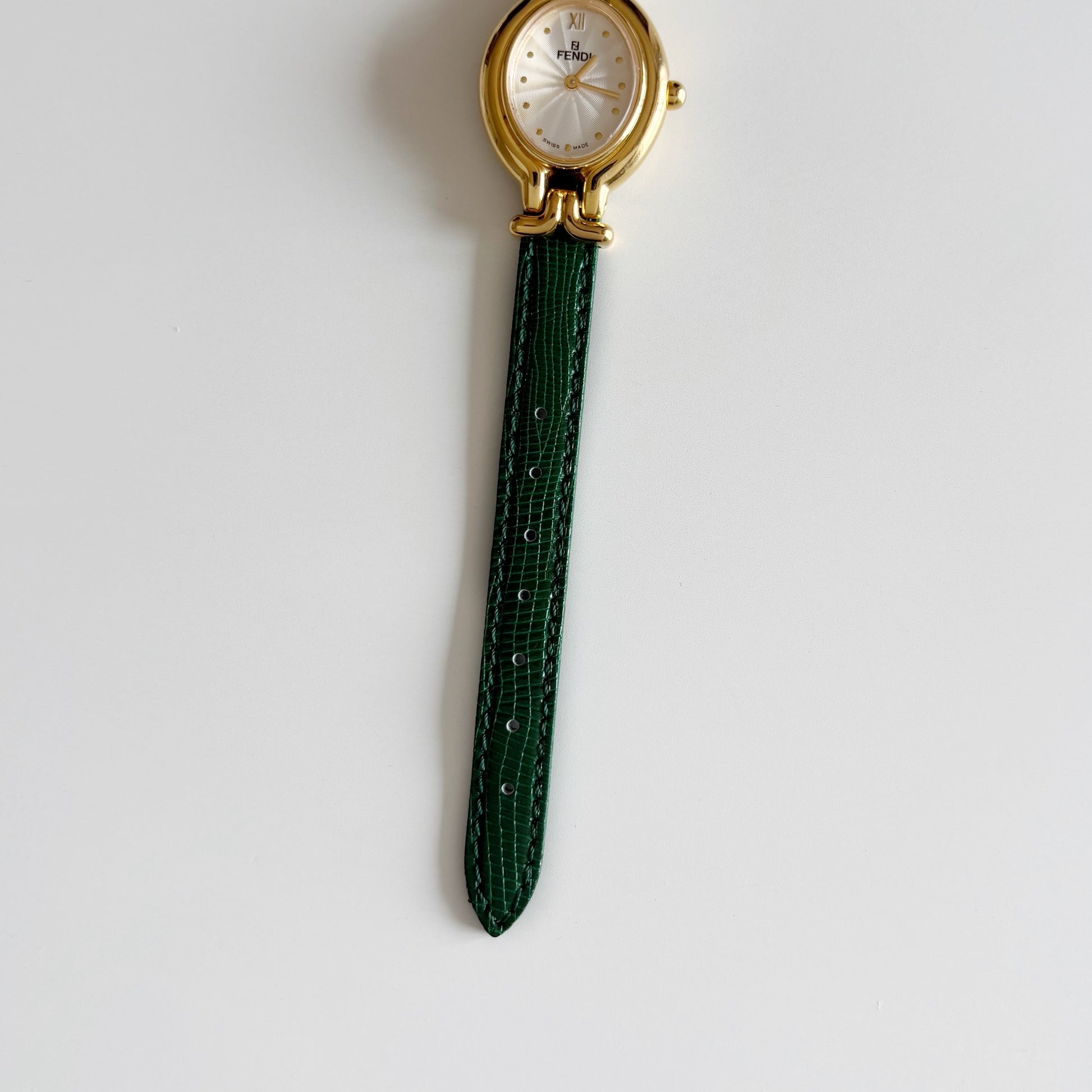 Fendi 1990s Interchangeable Belt Gold Plated Watch with 5 belts, case