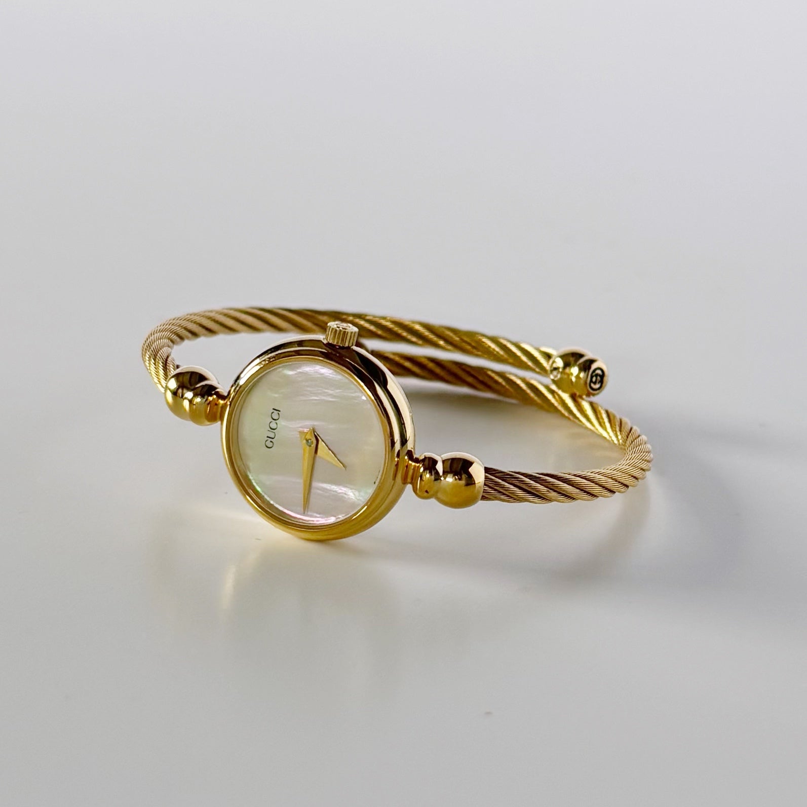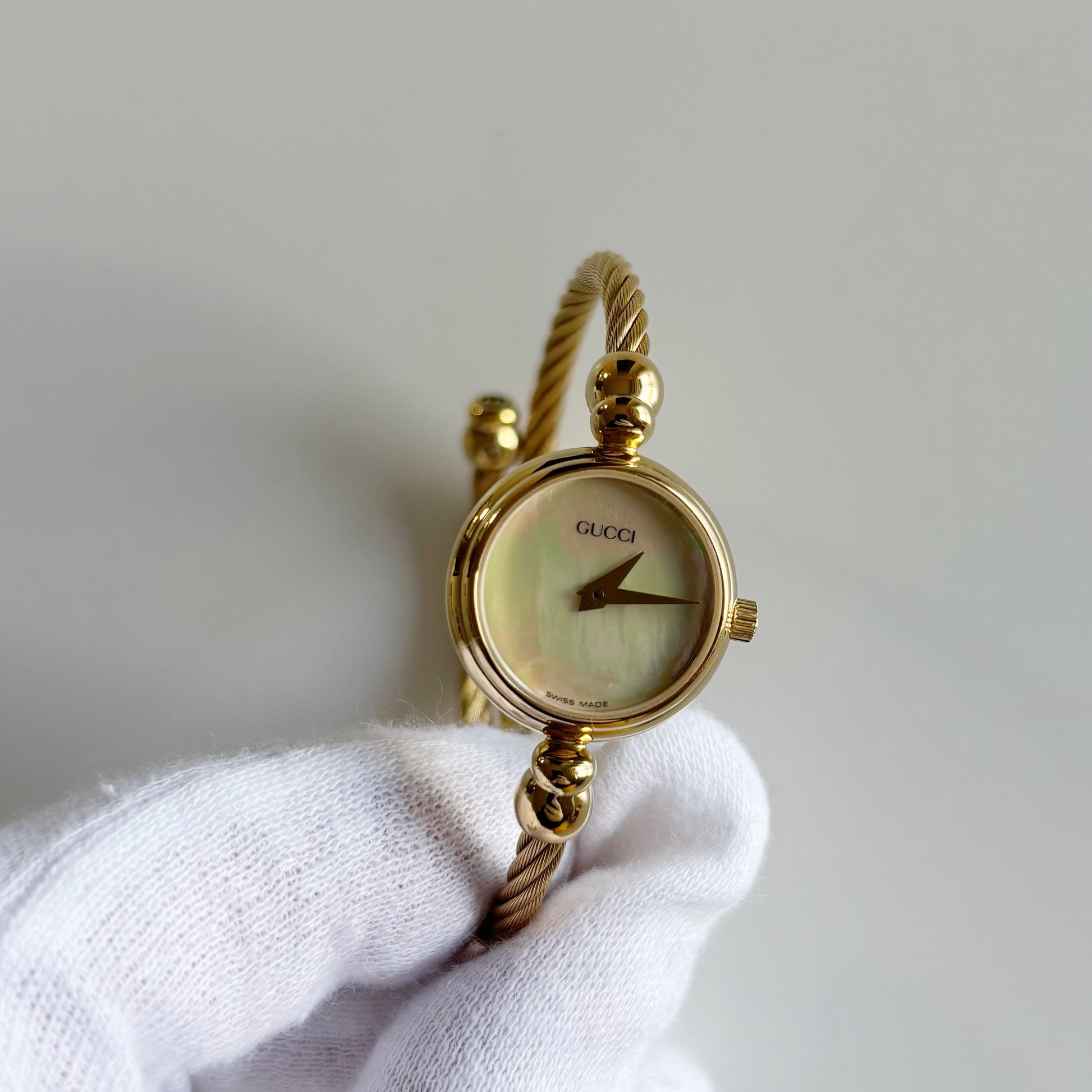 Gucci 1990s Seashell Dial Gold Plated Cable Bangle Watch