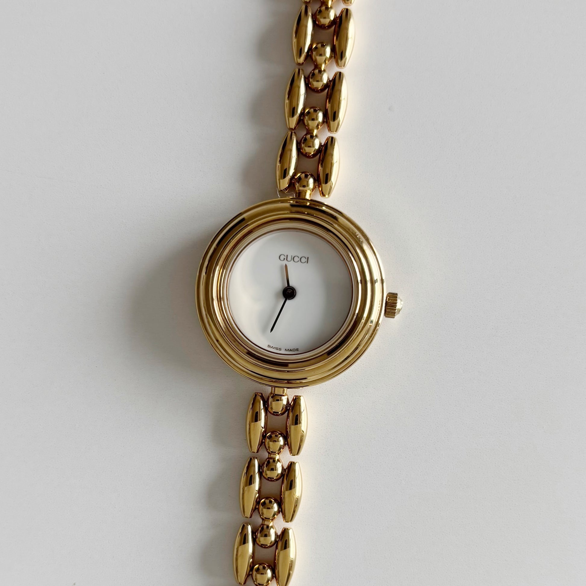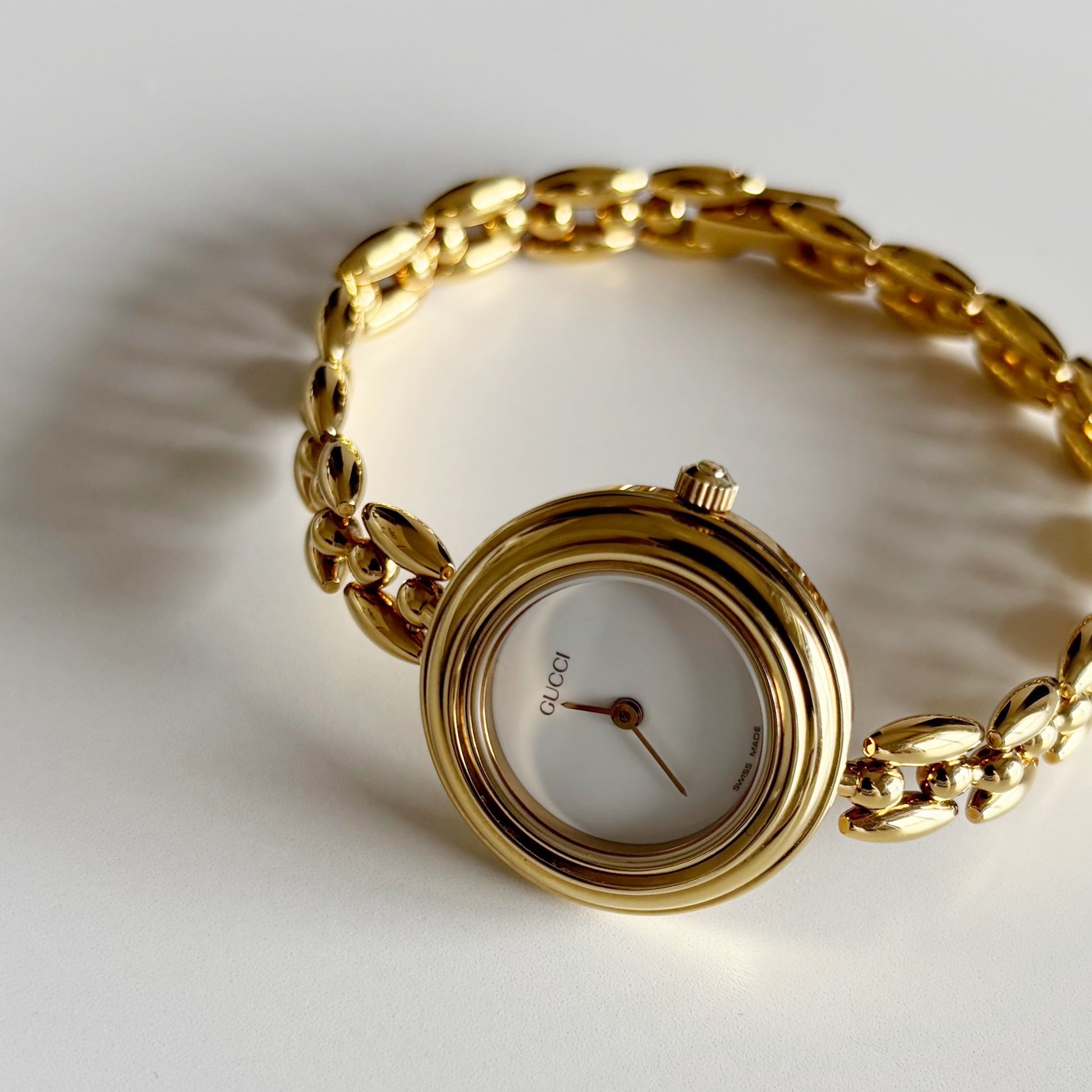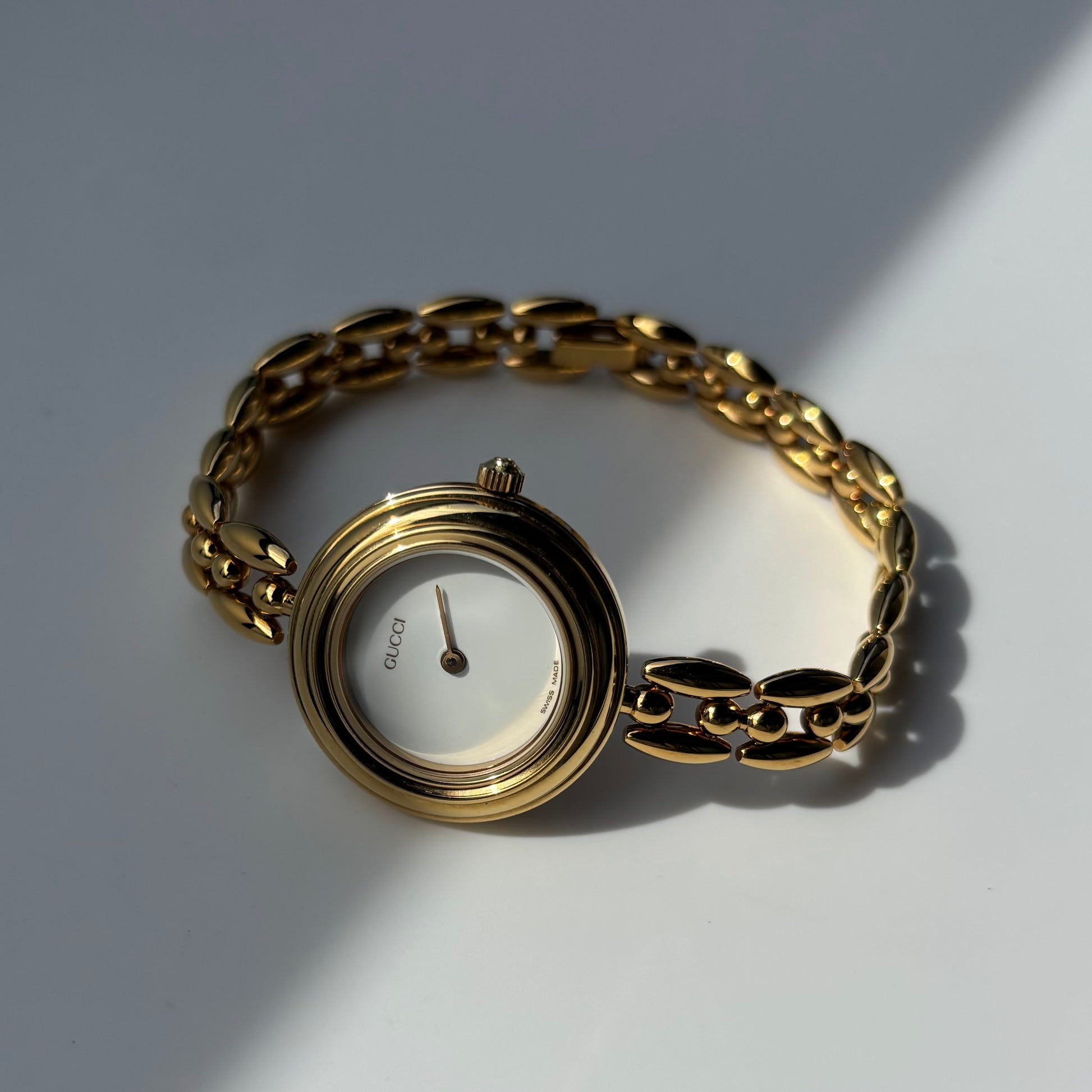 Gucci 1990s Interchangeable Bezel Gold Plated Watch with 6 bezels, case (167mm)