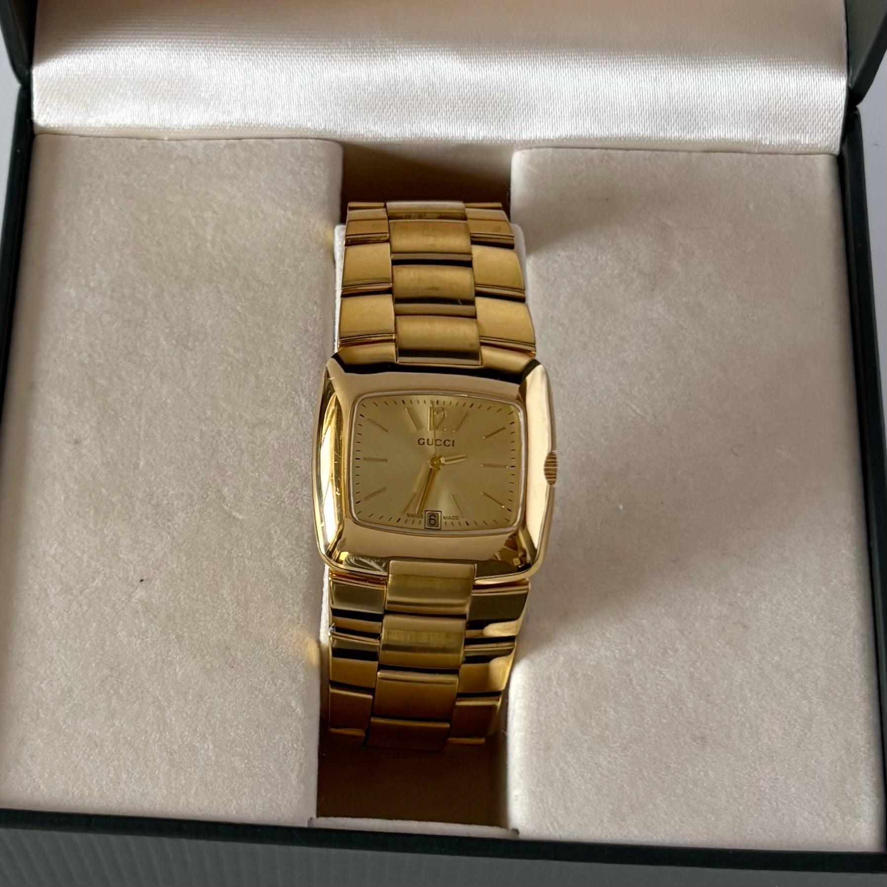 Gucci 1990s Date Gold Dial Gold Plated Watch