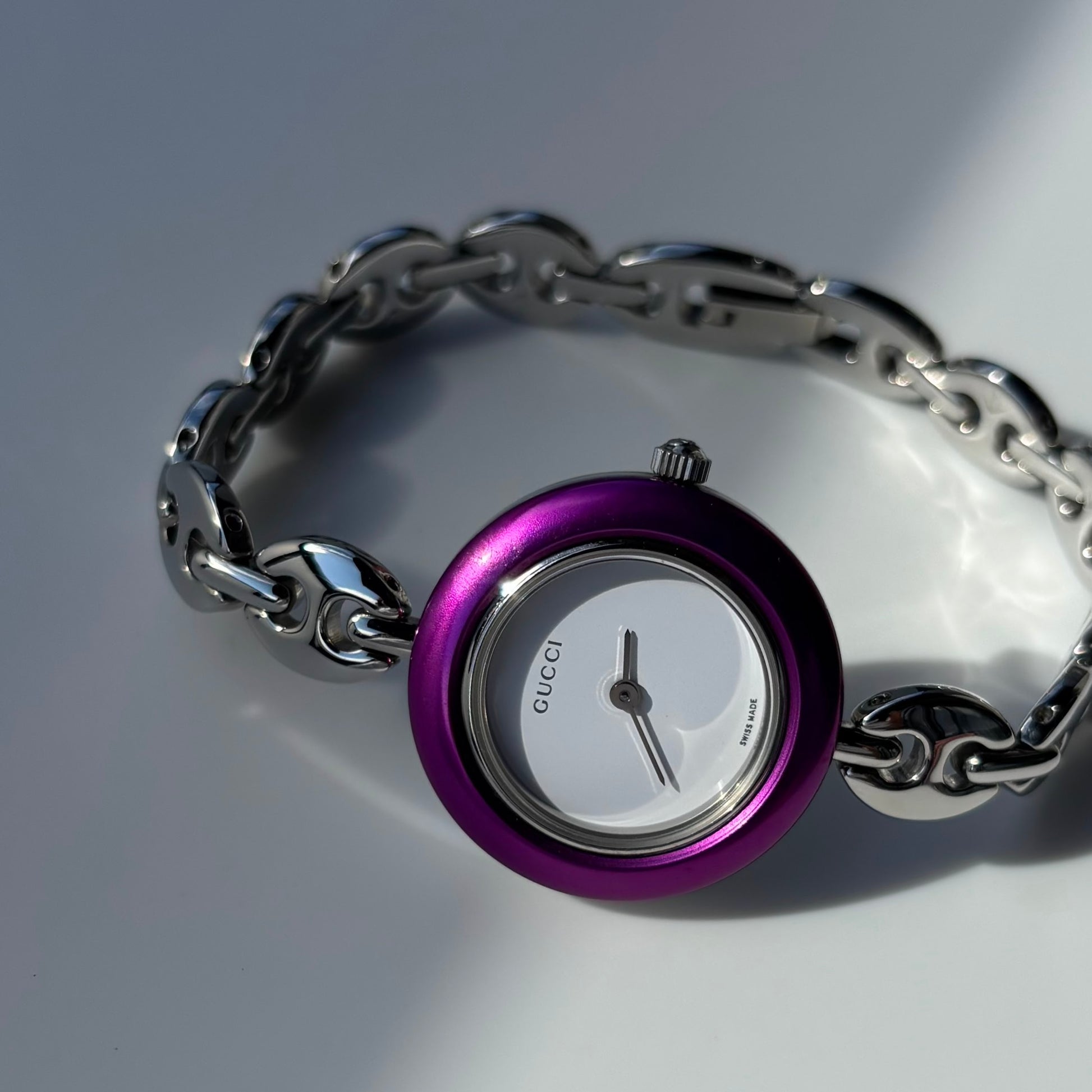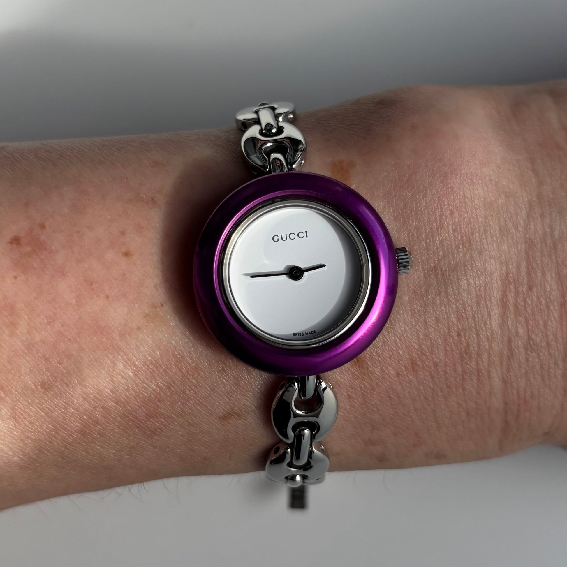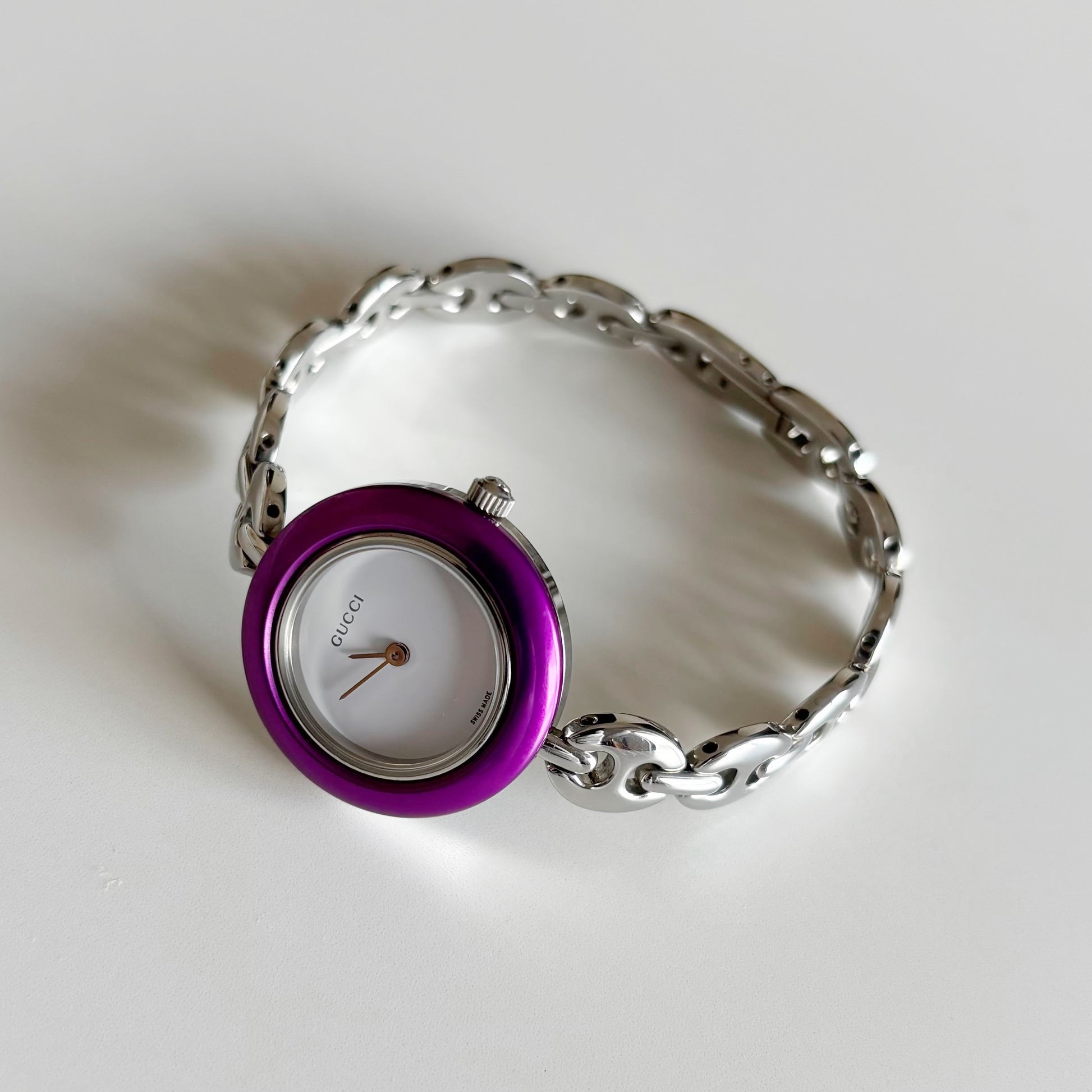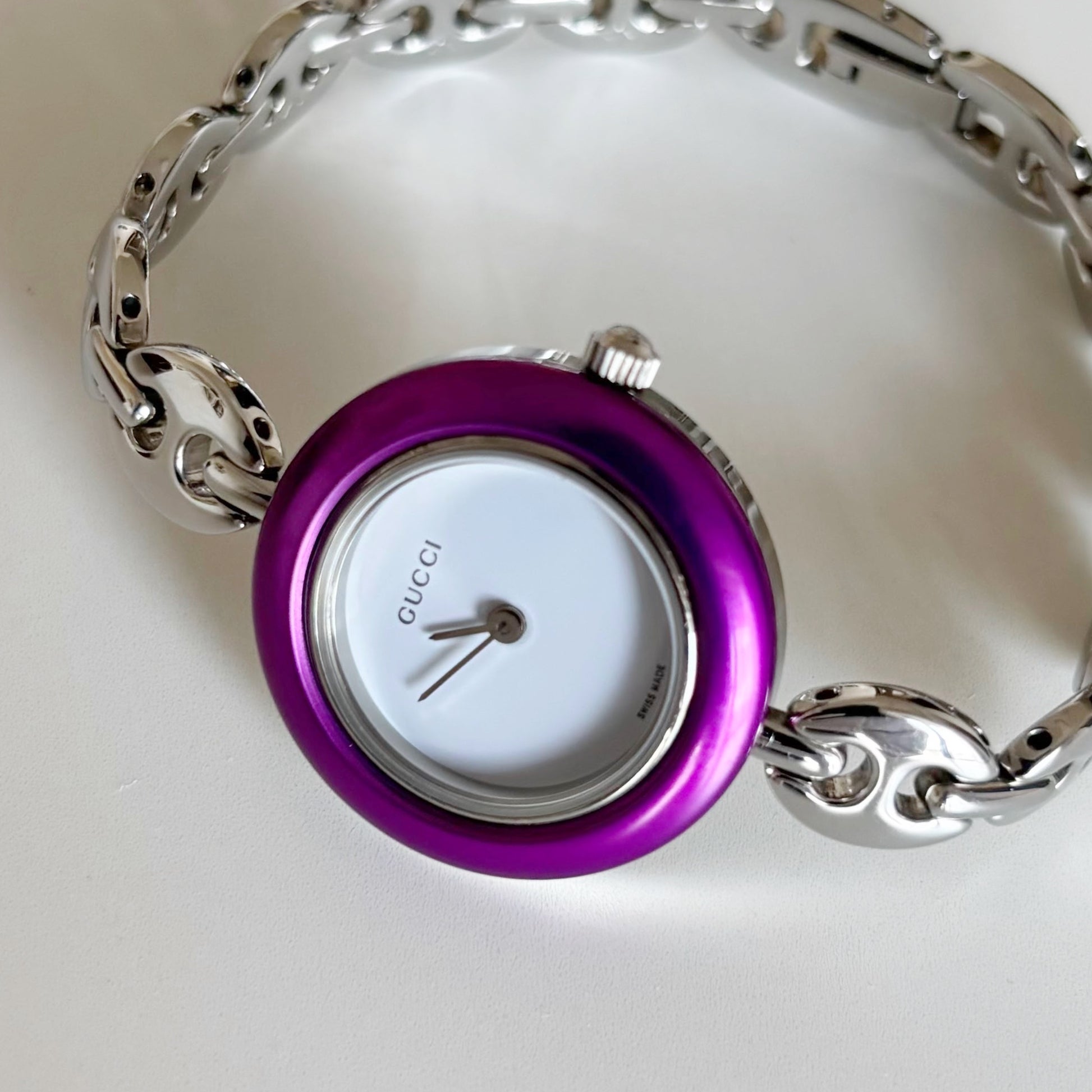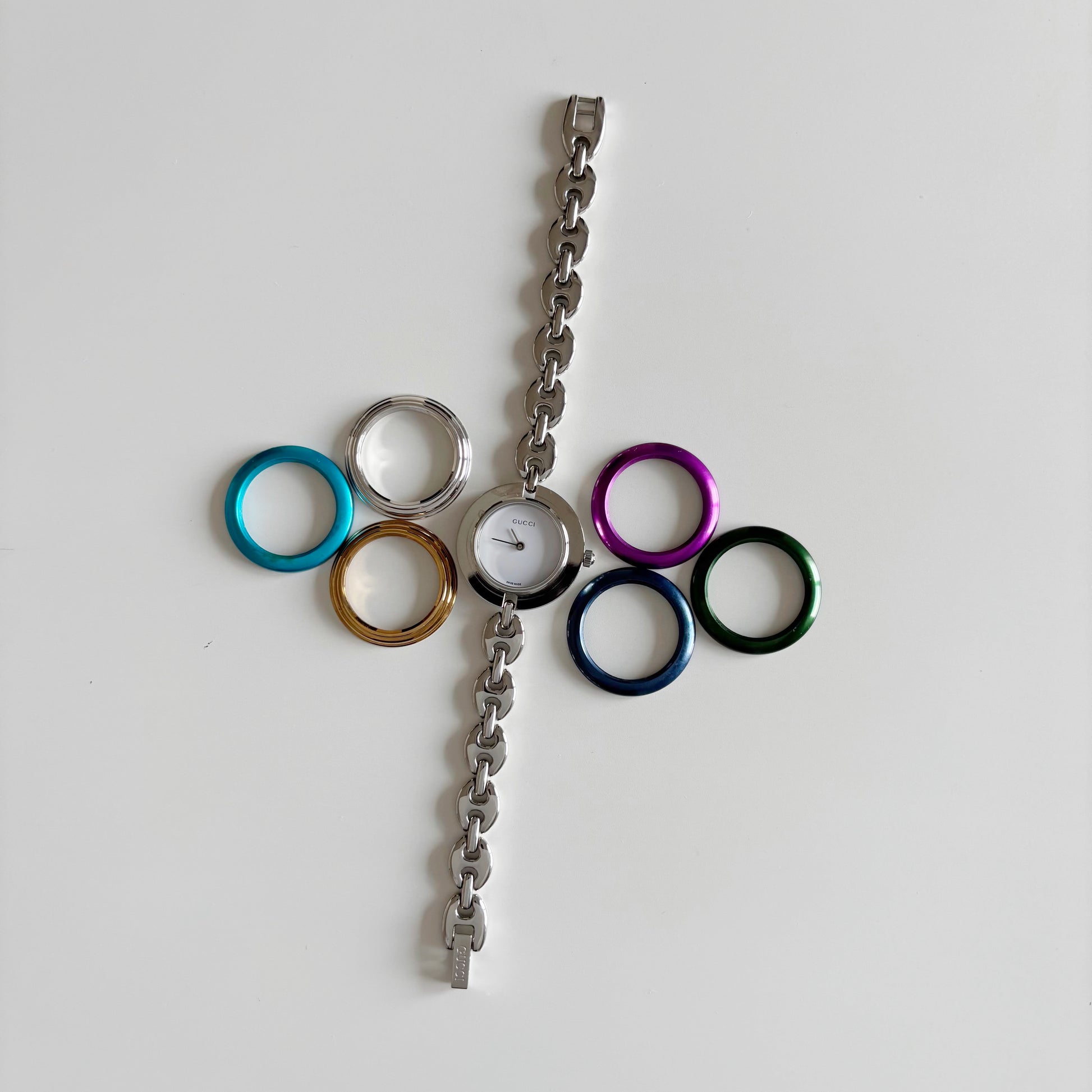 Gucci 1990s Interchangeable Bezel Stainless steel Silver Watch with 6 bezels, case (167mm)