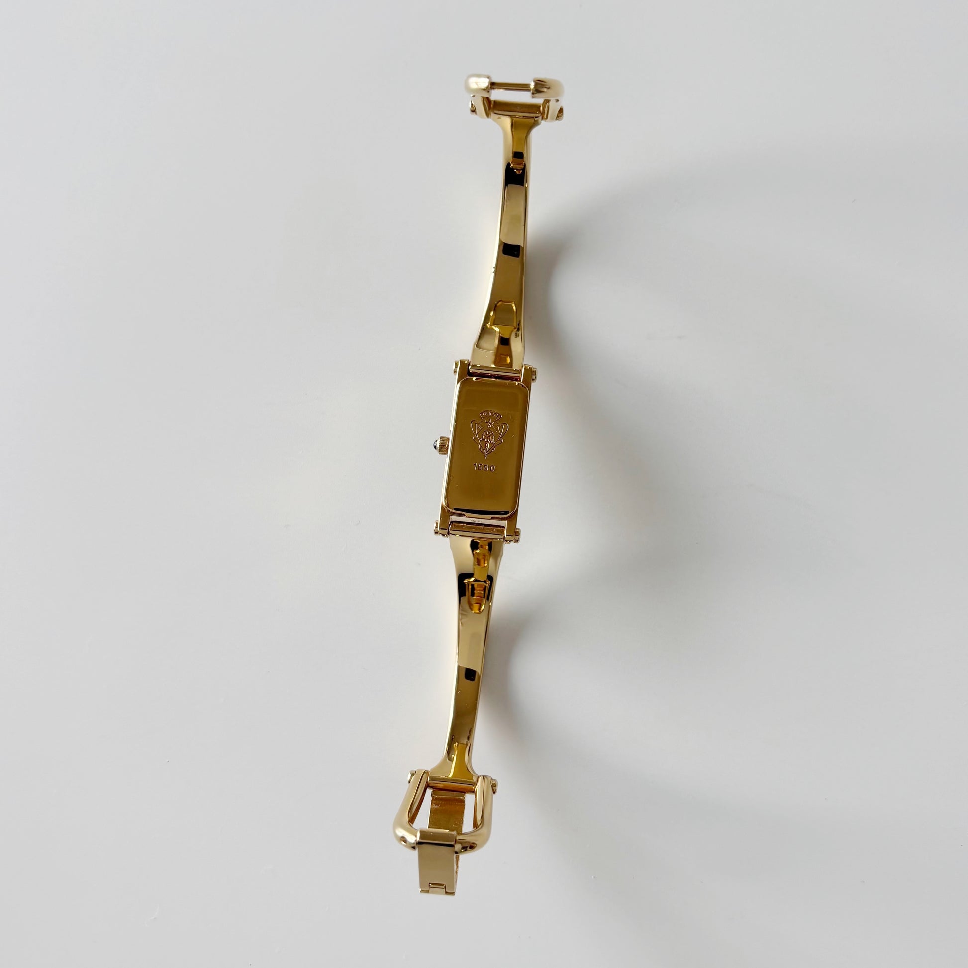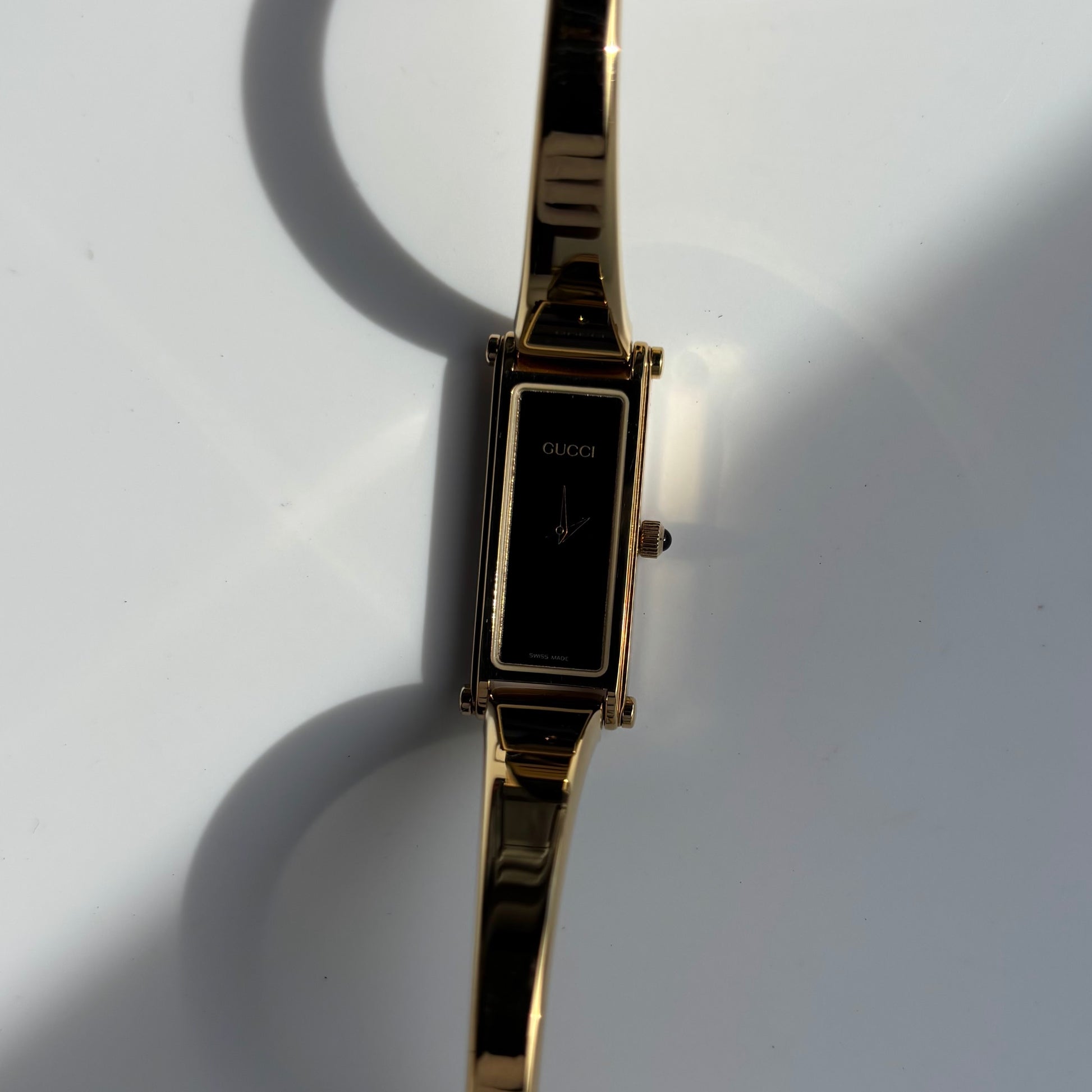 Gucci 1990s Rectangular Black Dial Gold Plated Bangle Watch