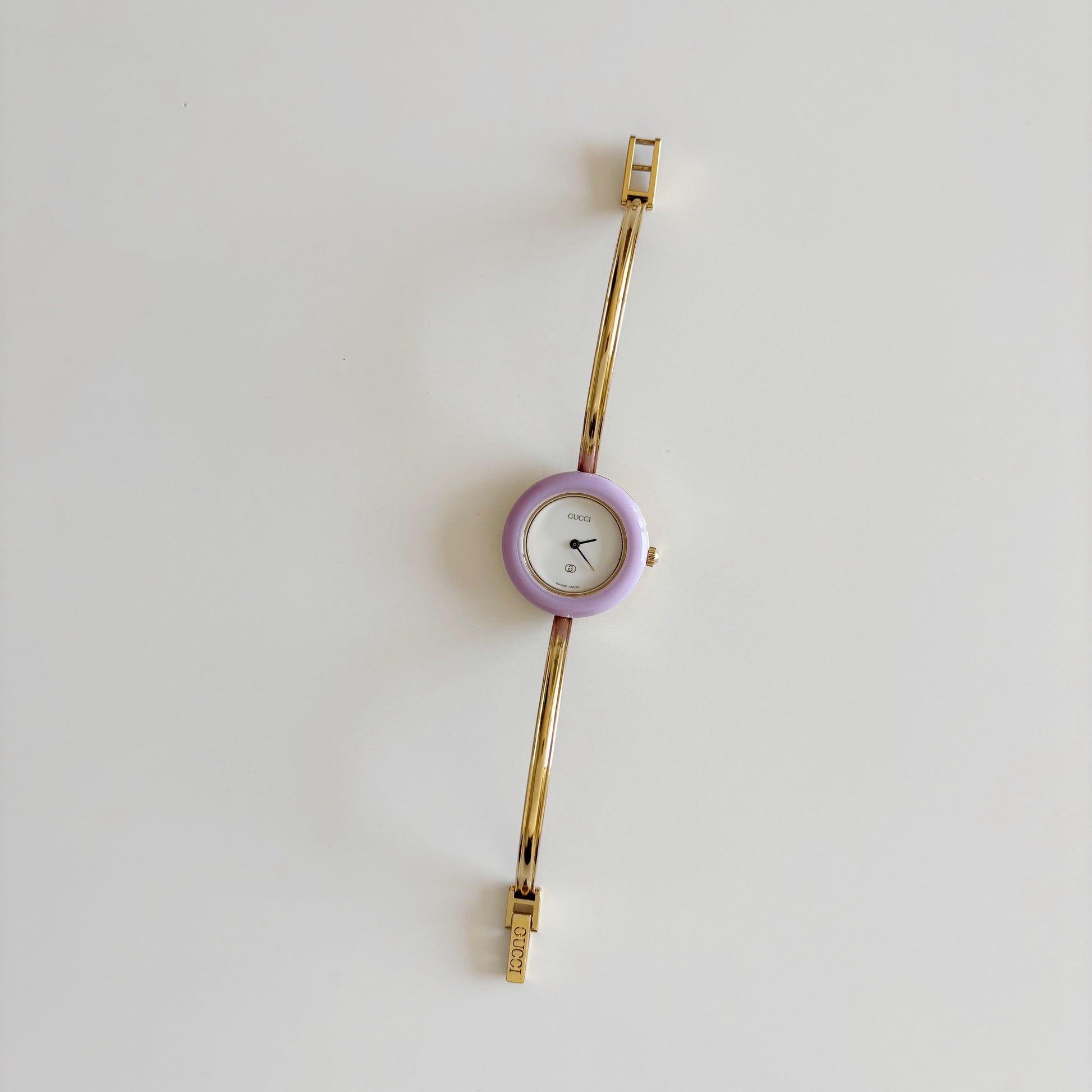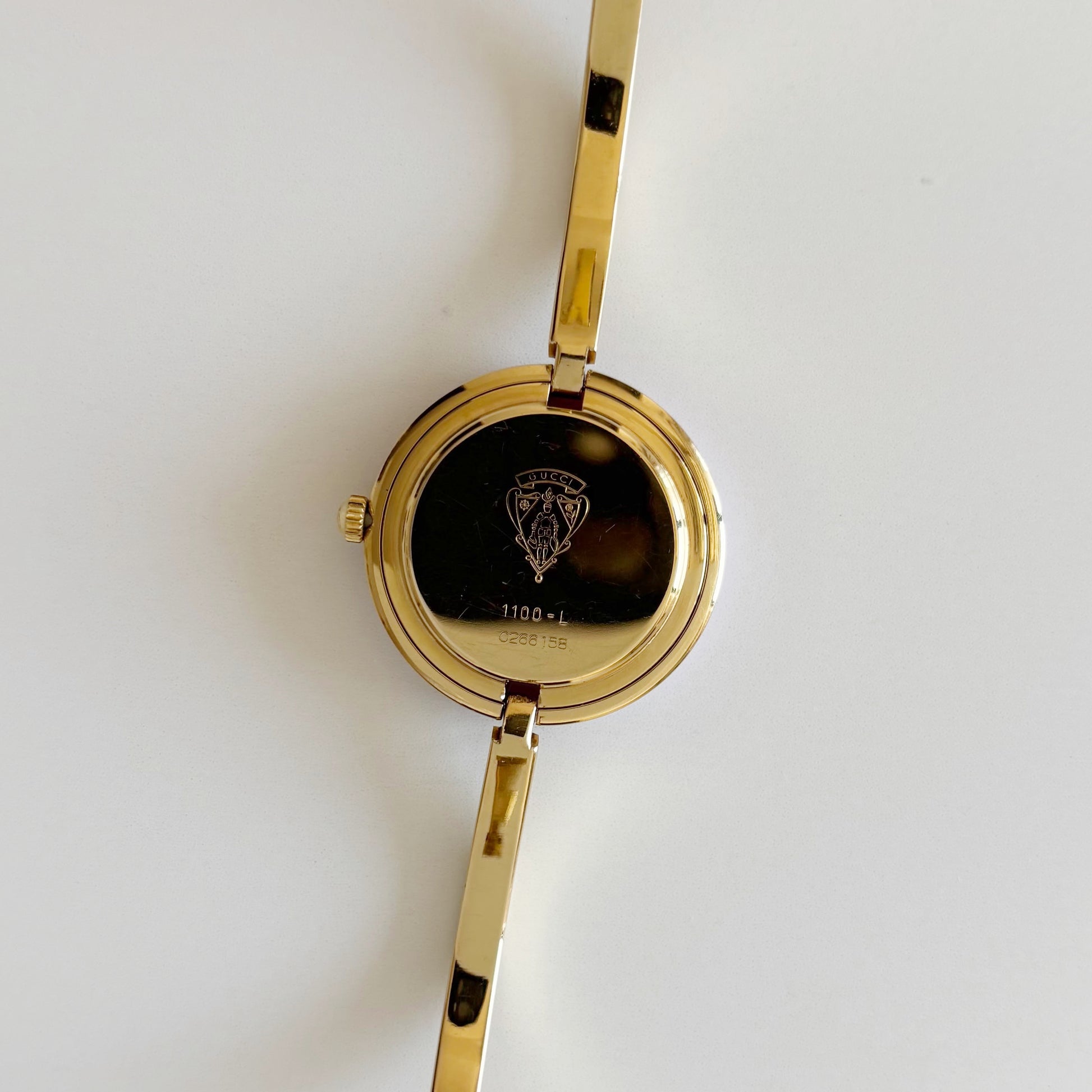 Gucci 1990s Interchangeable Bezel Gold Plated Bangle Watch with 12 bezels, case