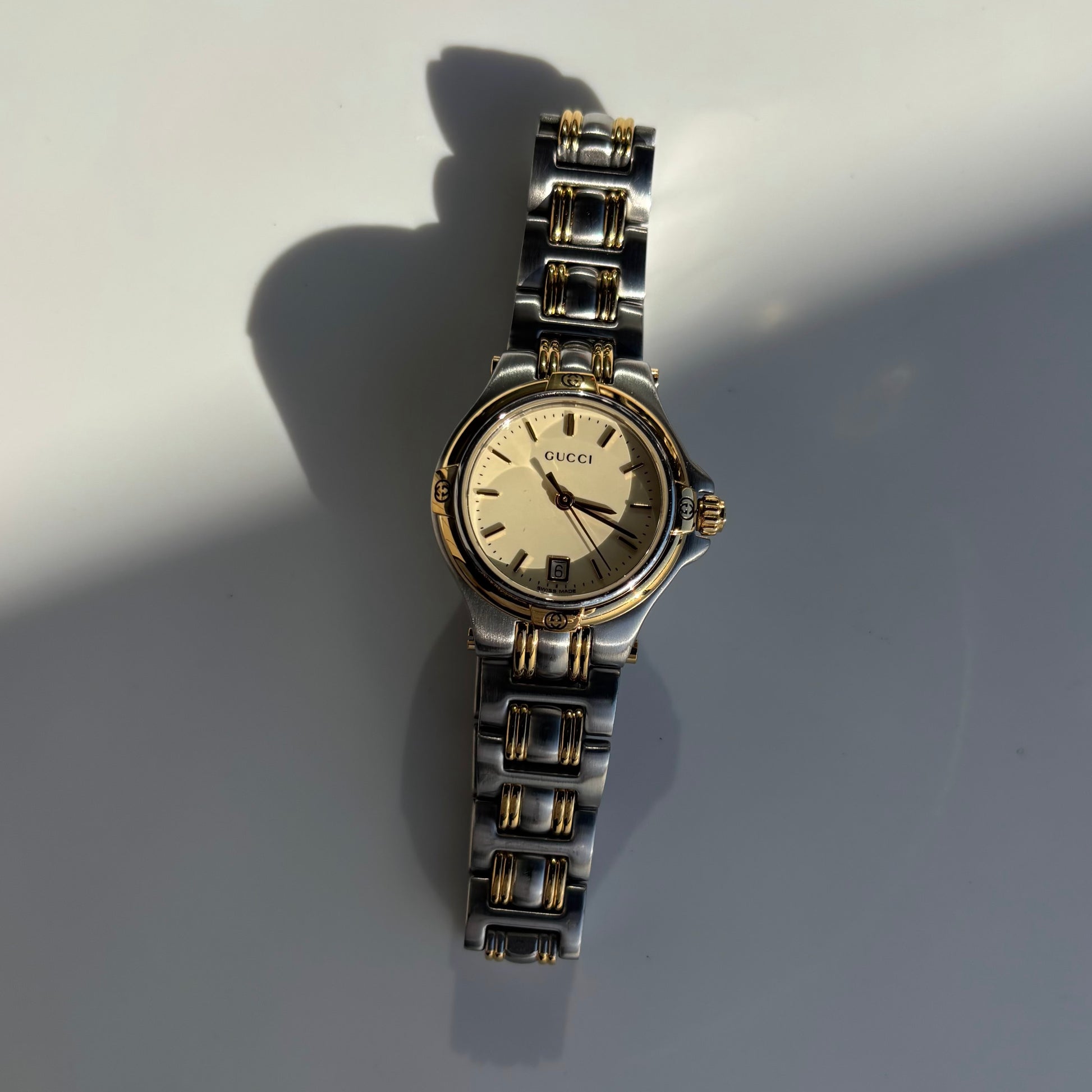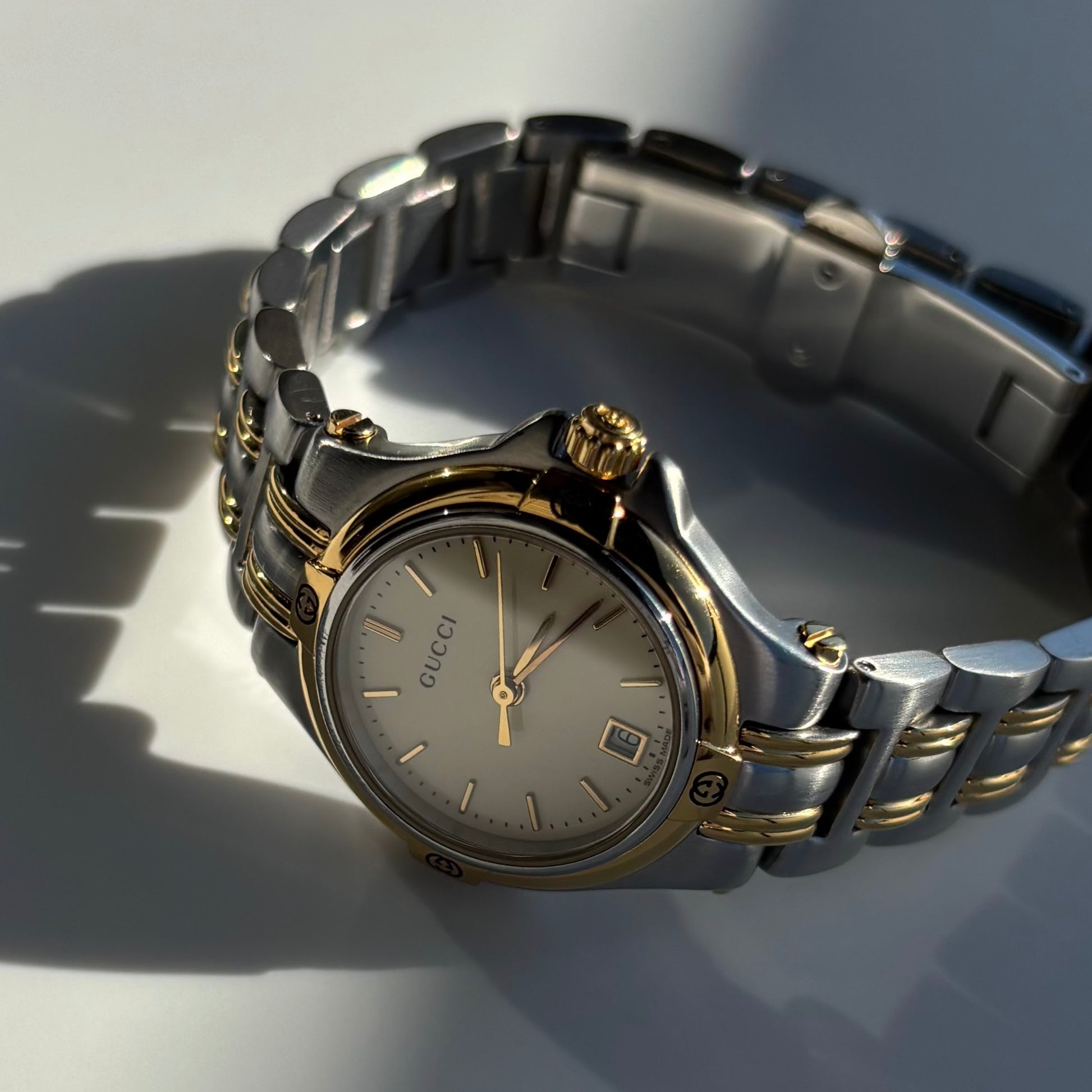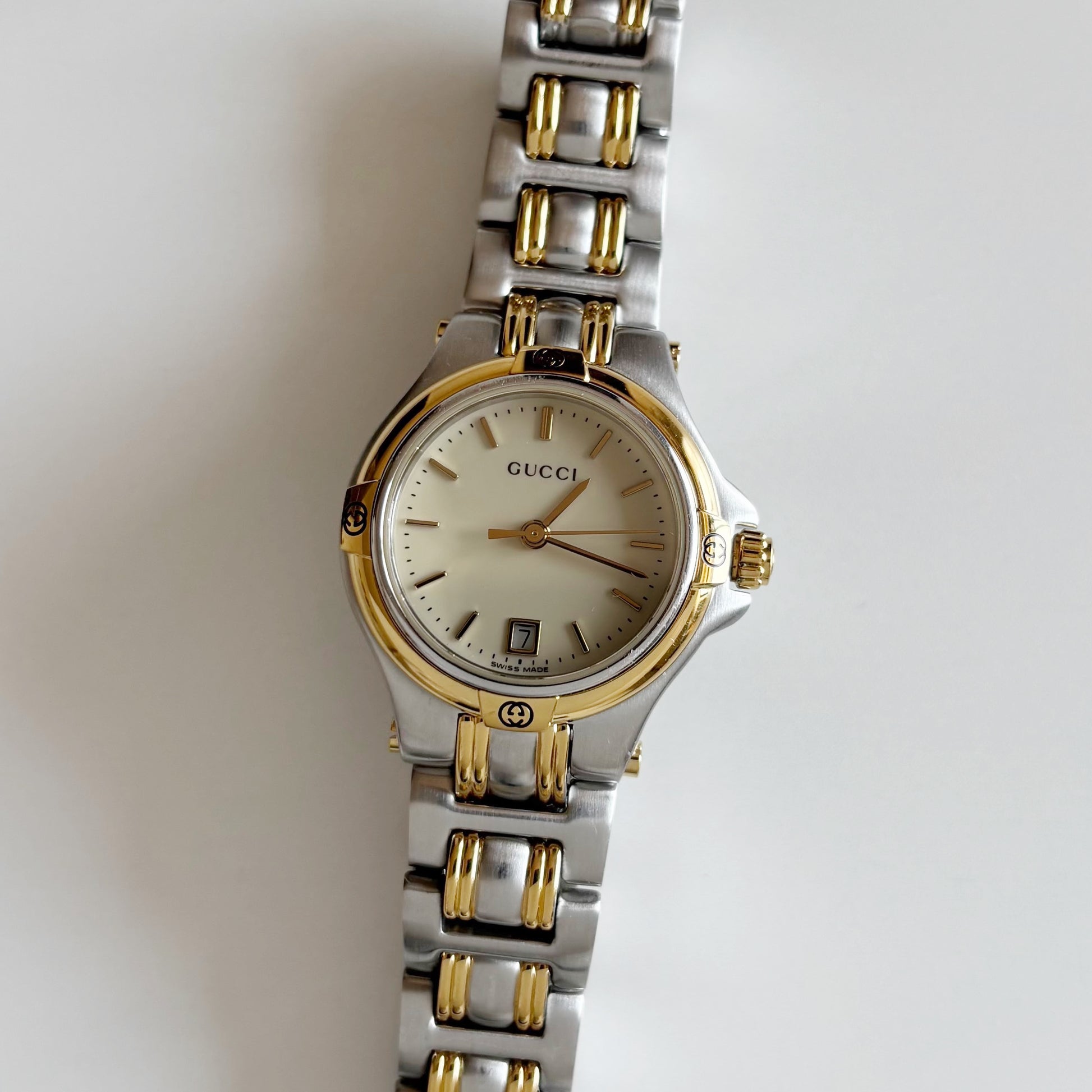 Gucci 1990s Date Gold Plated Two Tone Watch