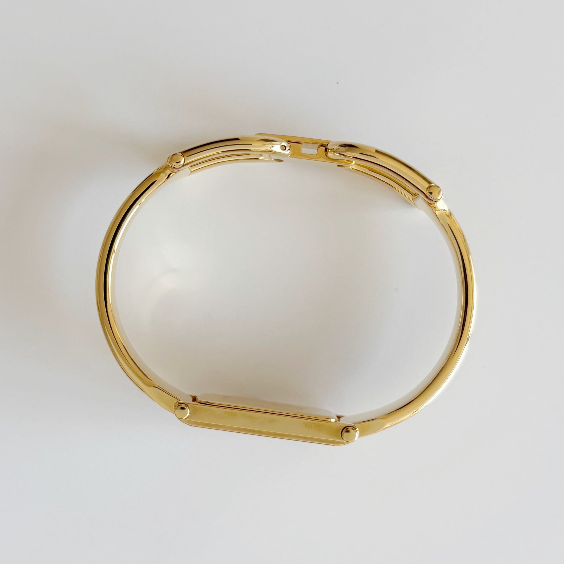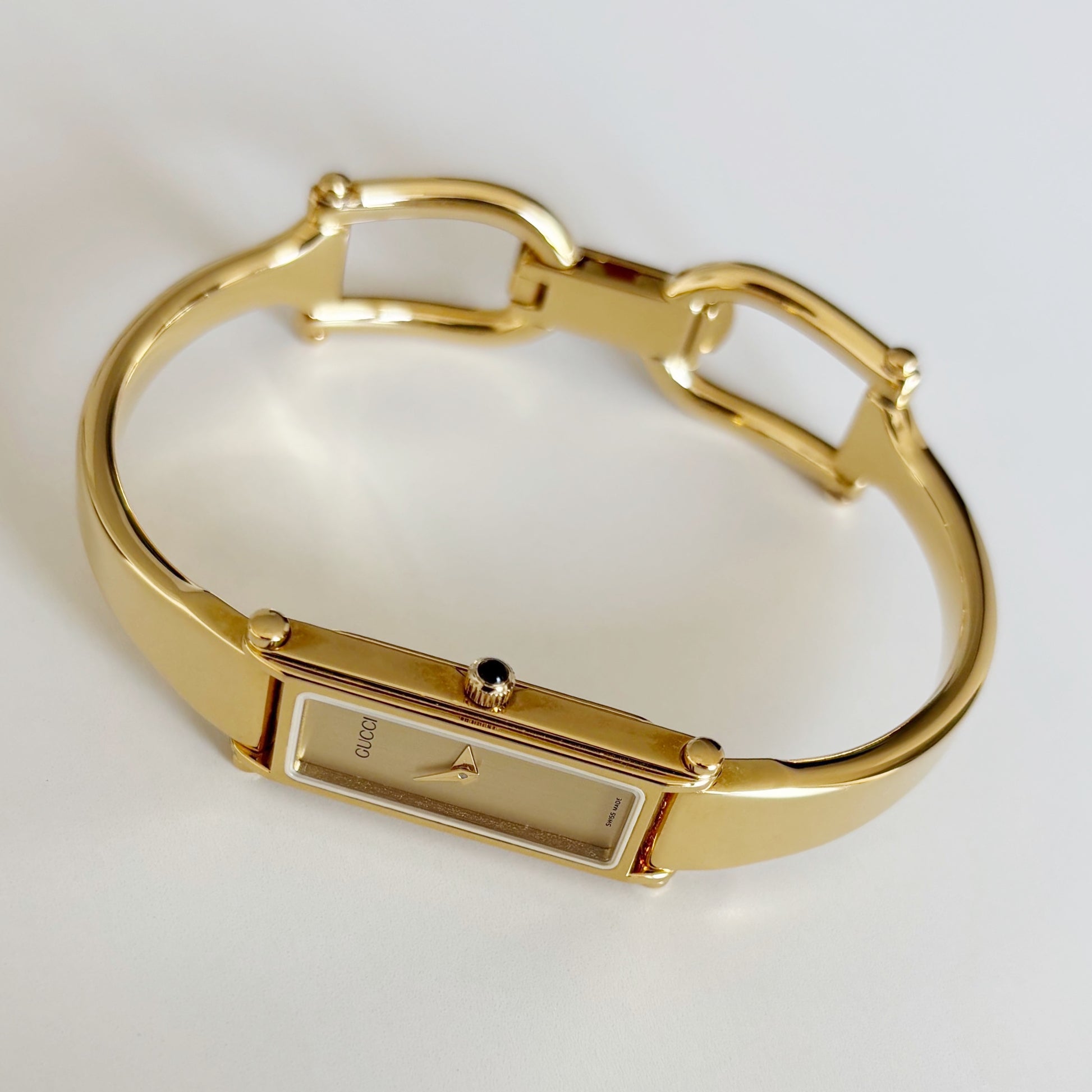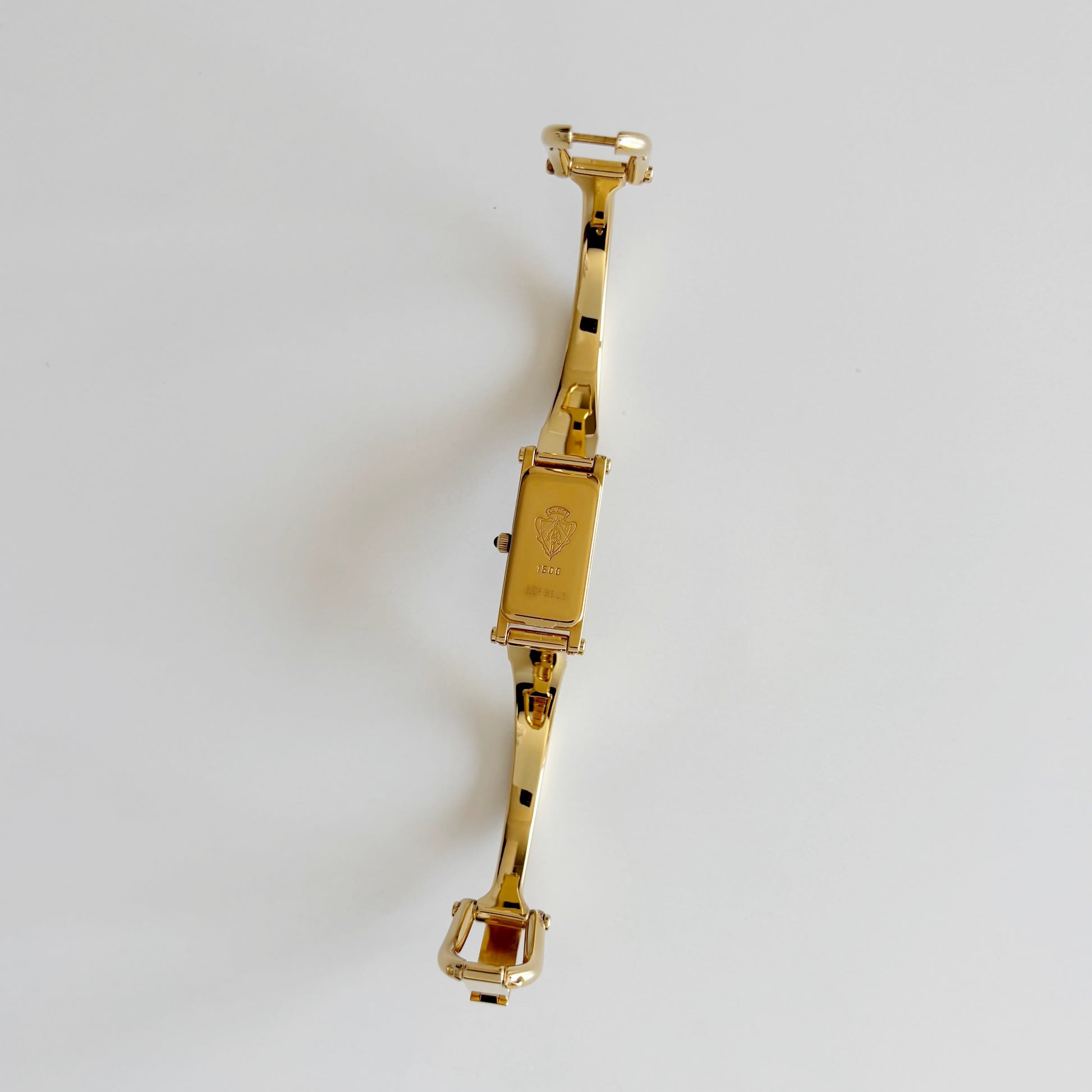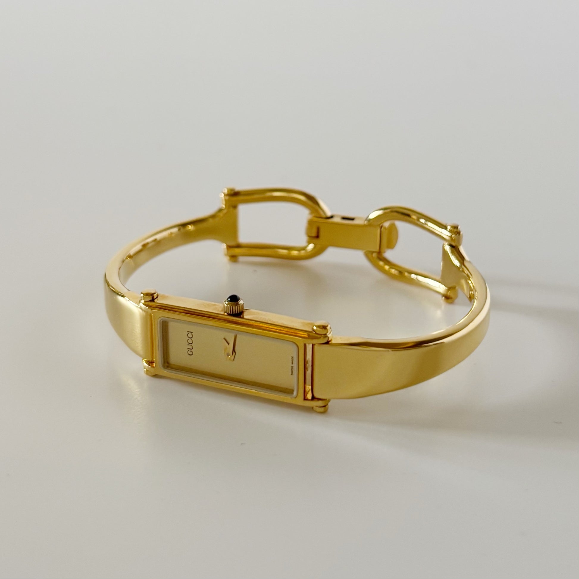 Gucci 1990s Rectangular Gold Dial Gold Plated Bangle Watch