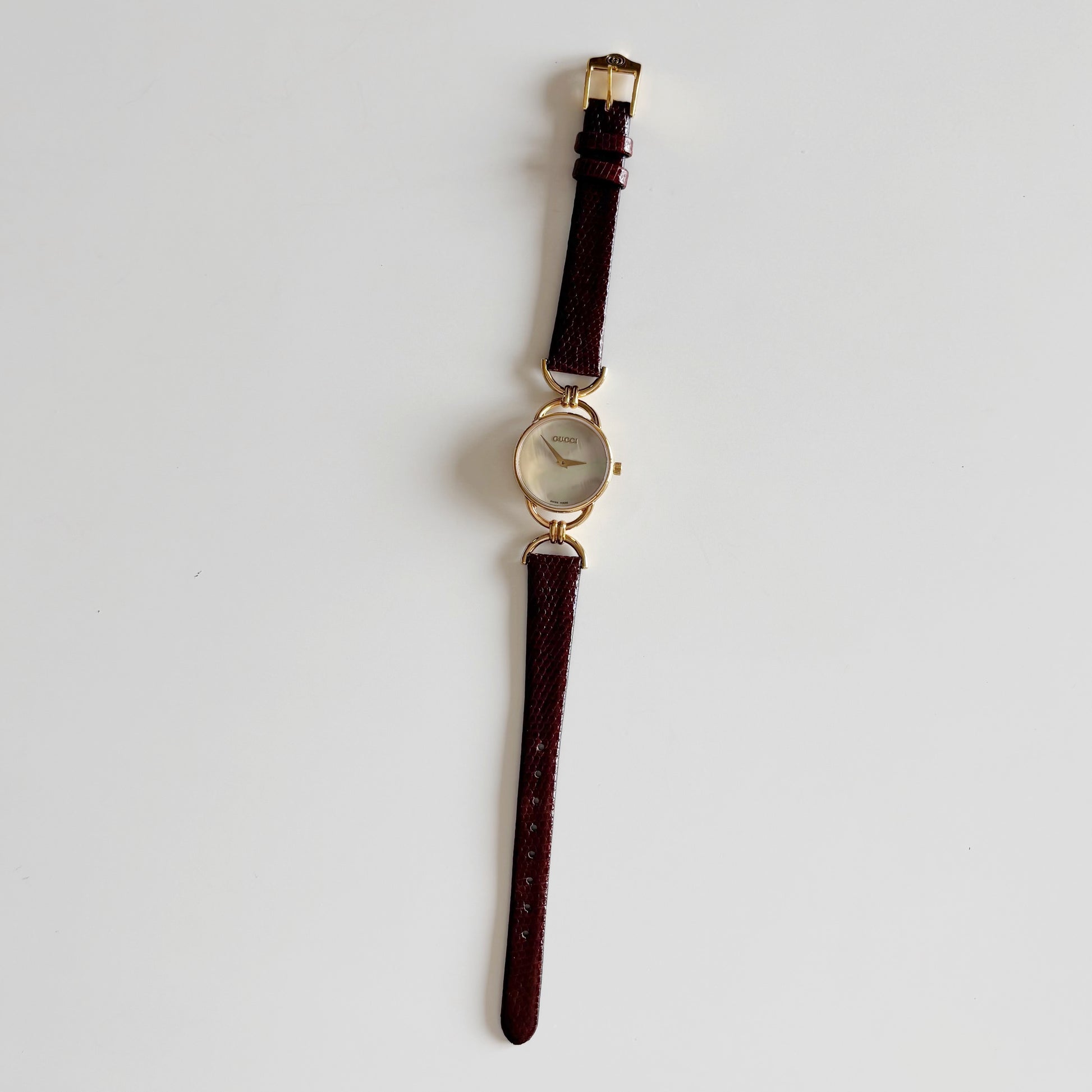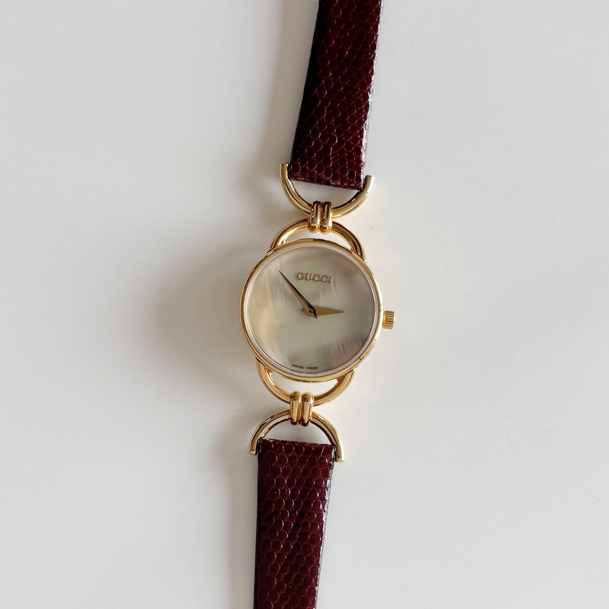 Gucci 1990s Seashell Dial Horsibit Gold Plated Watch