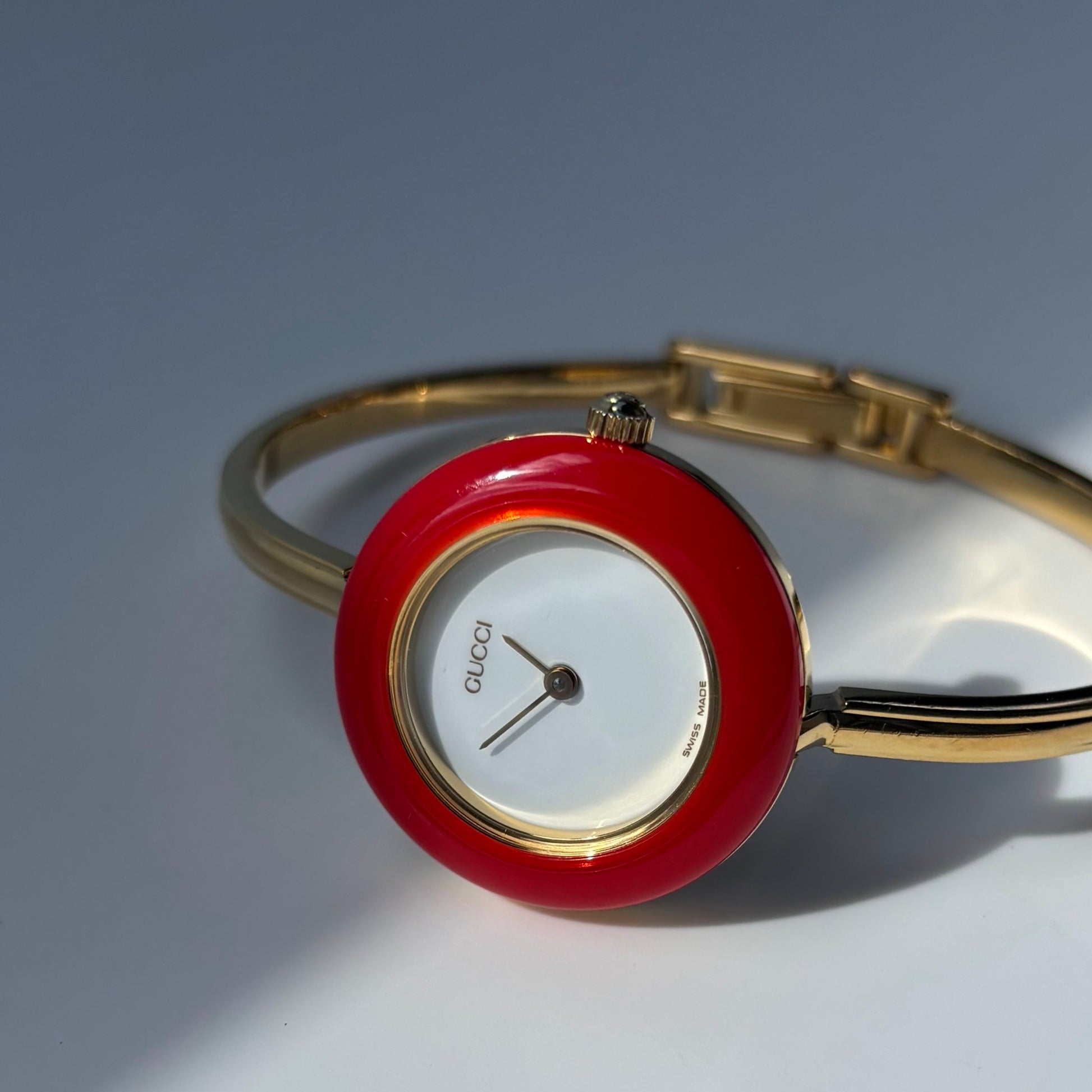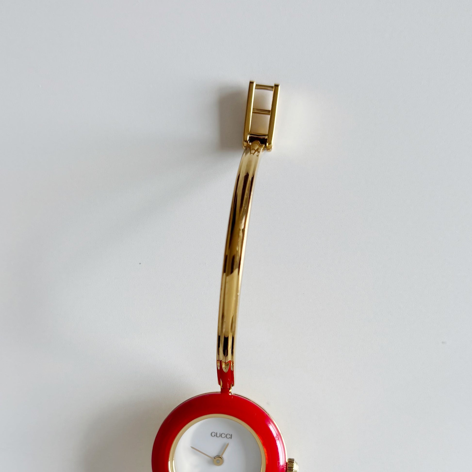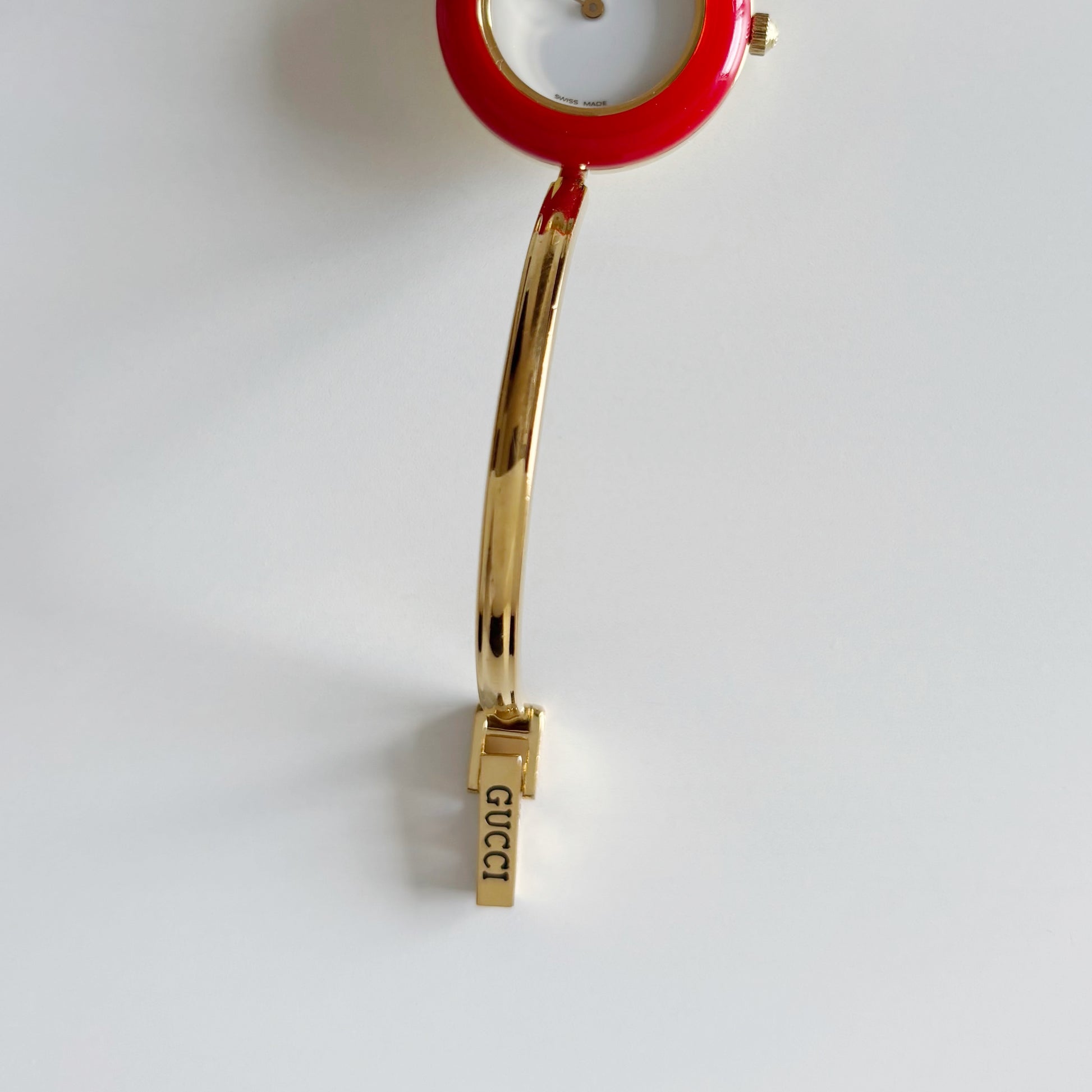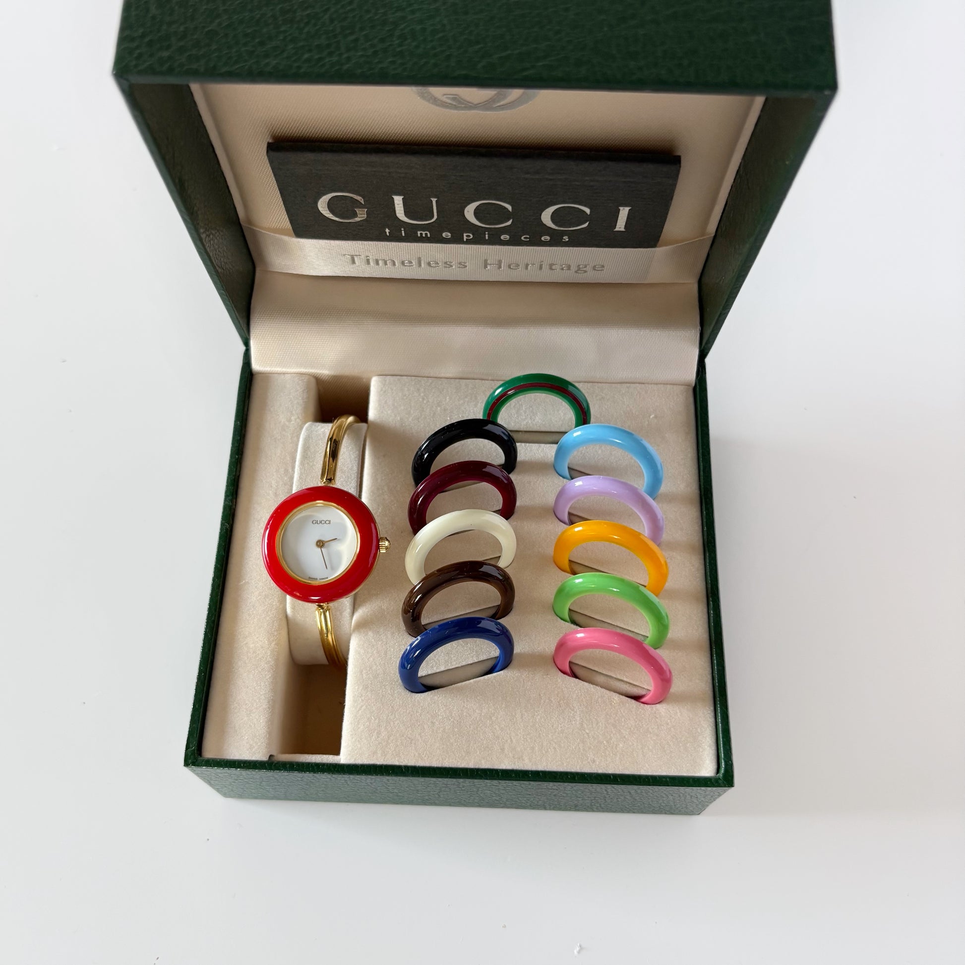 Gucci 1990s Interchangeable Bezel Gold Plated Bangle Watch with 12 bezels, case
