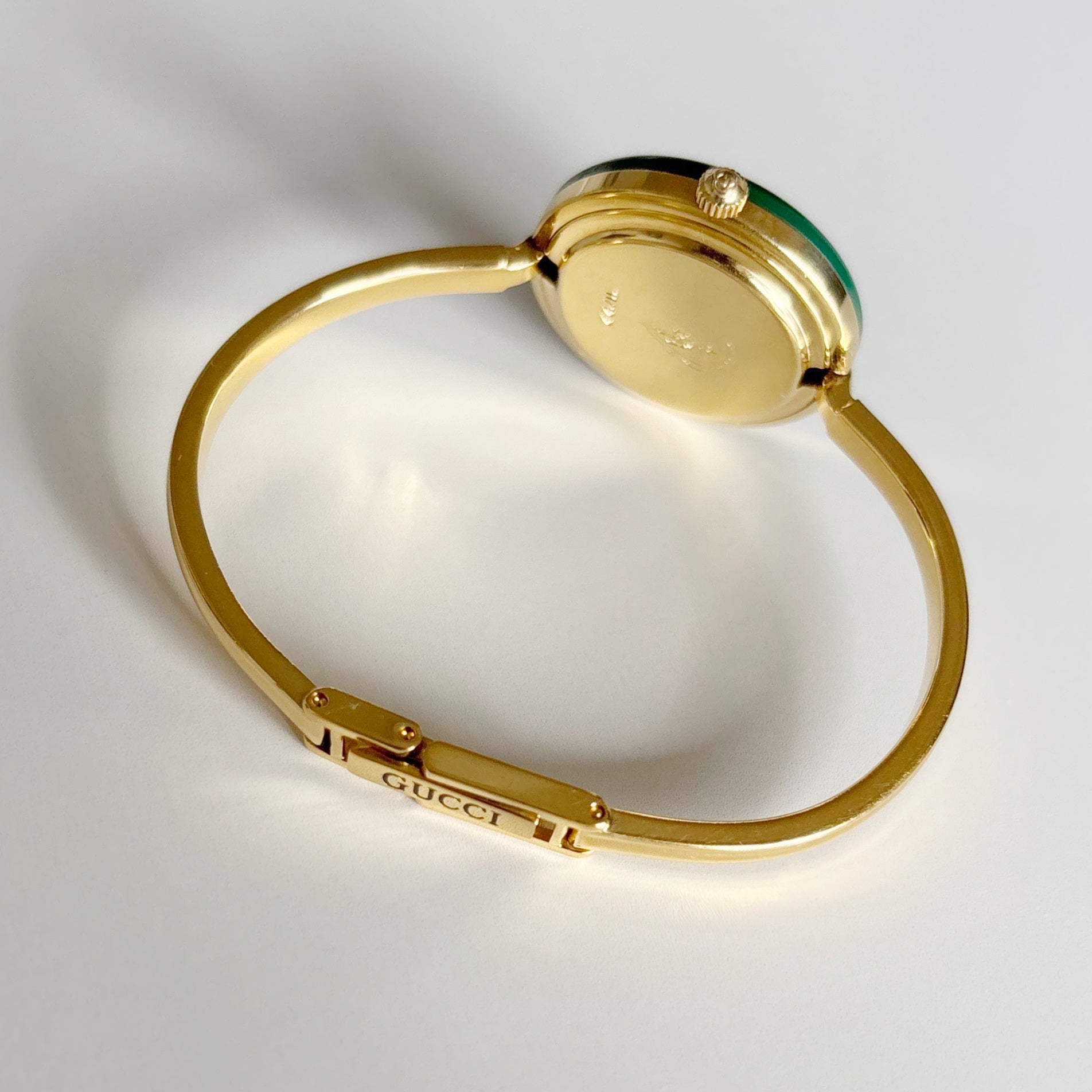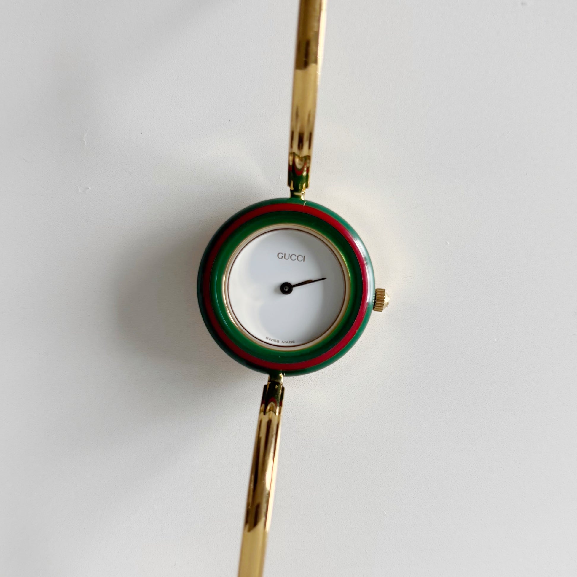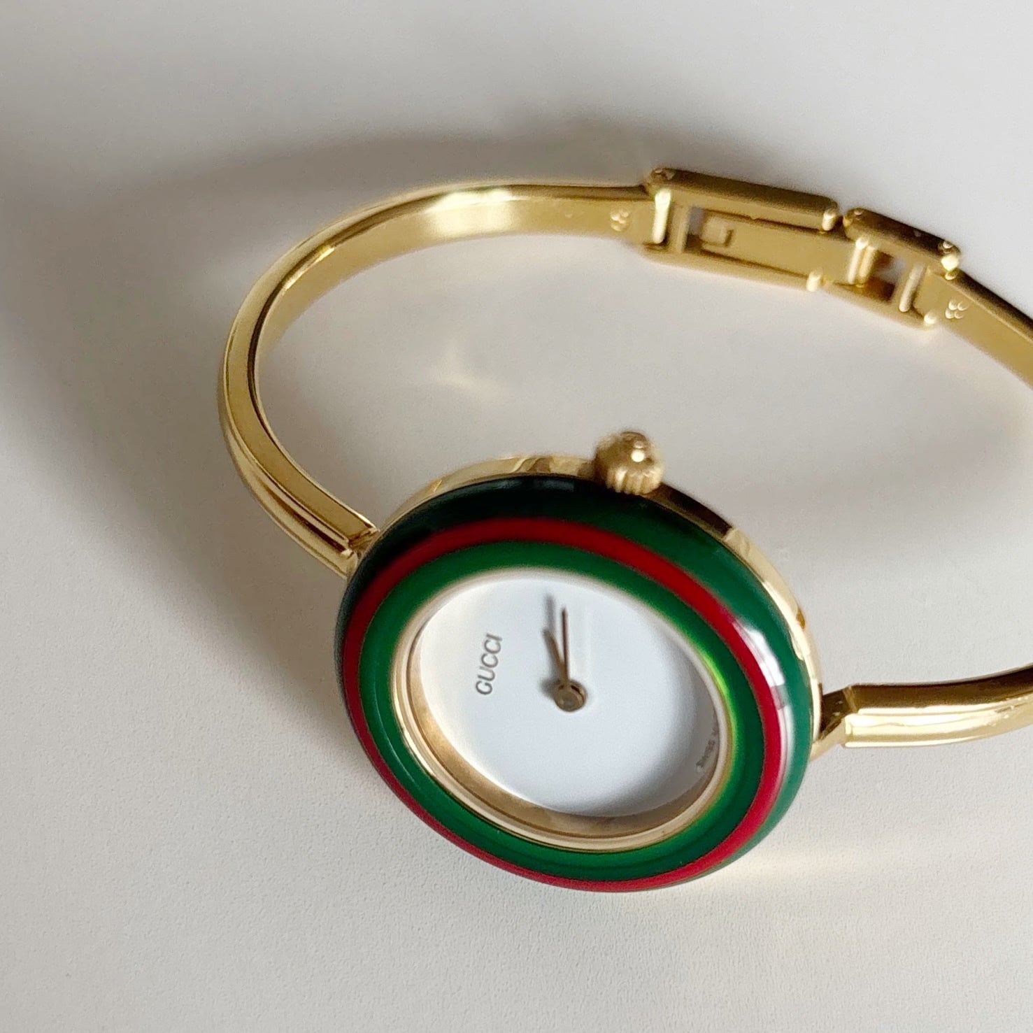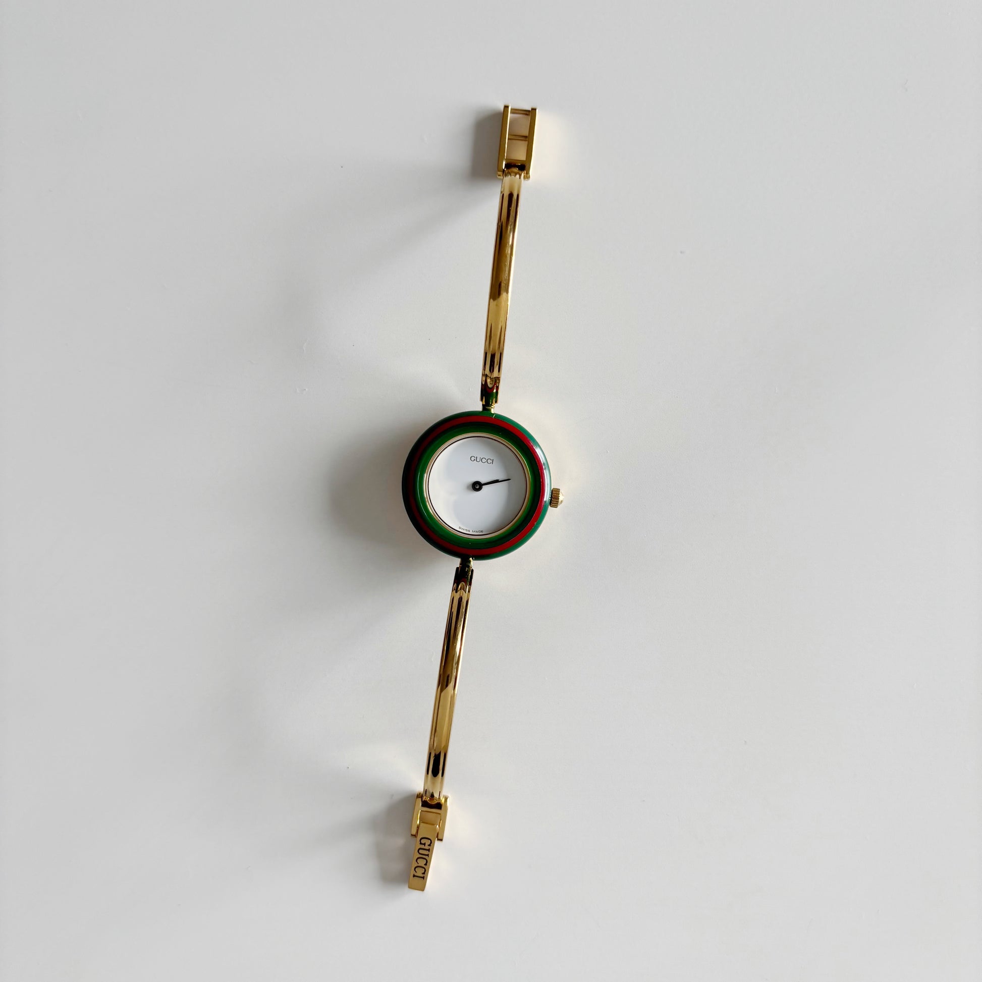 Gucci 1990s Interchangeable Bezel Gold Plated Bangle Watch with 12 bezels, case (Small)