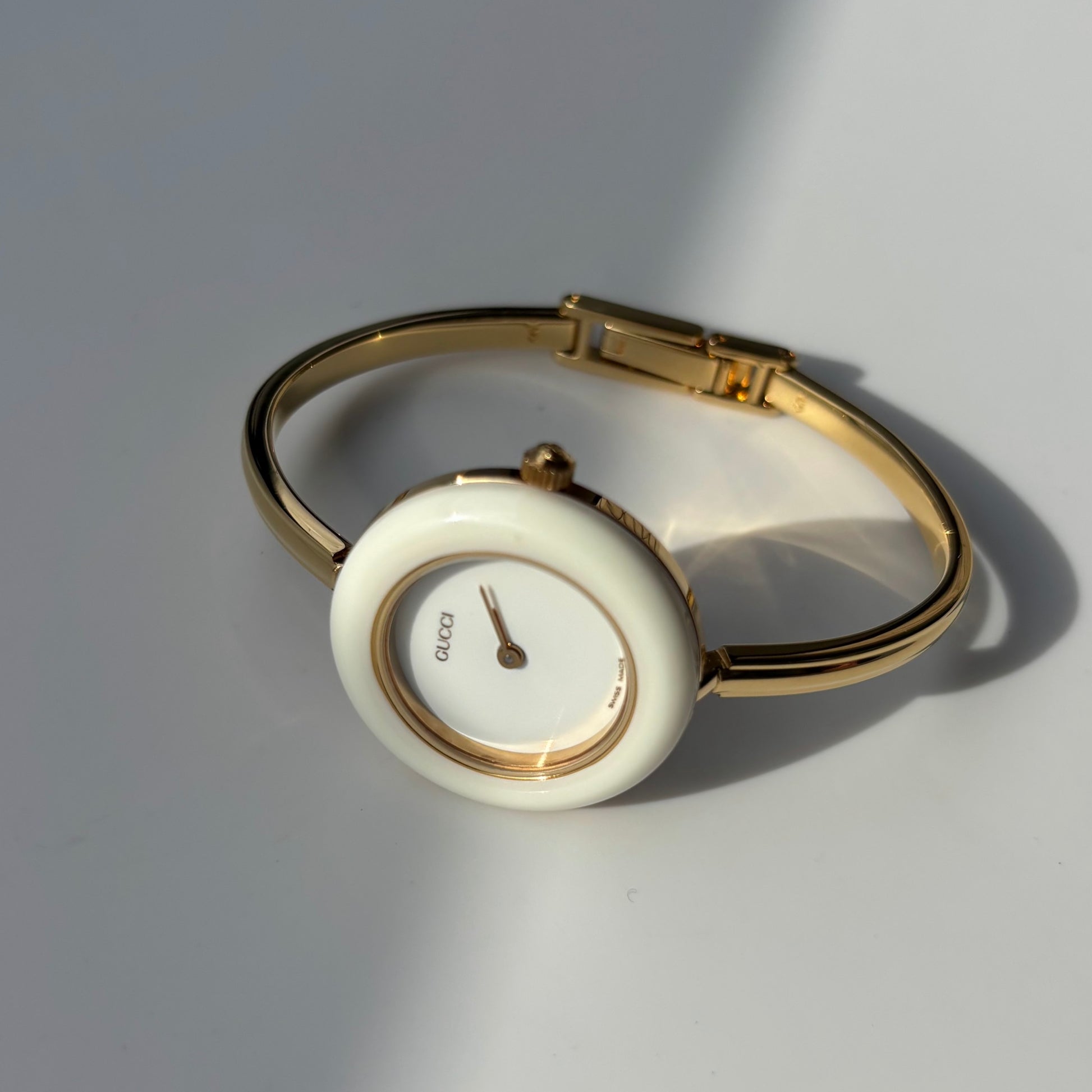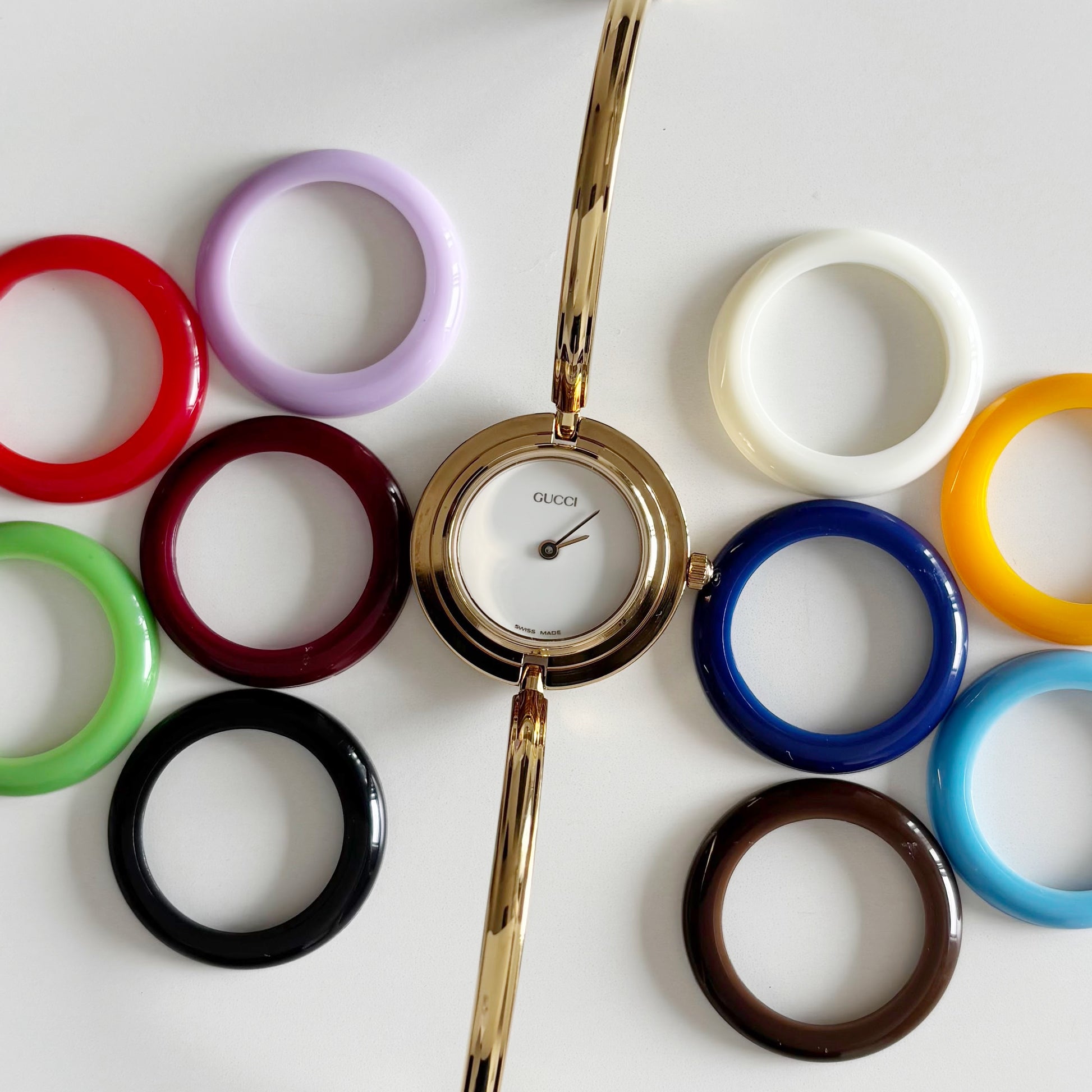 Gucci 1990s Interchangeable Bezel Gold Plated Watch with 12 bezels, case (Small)