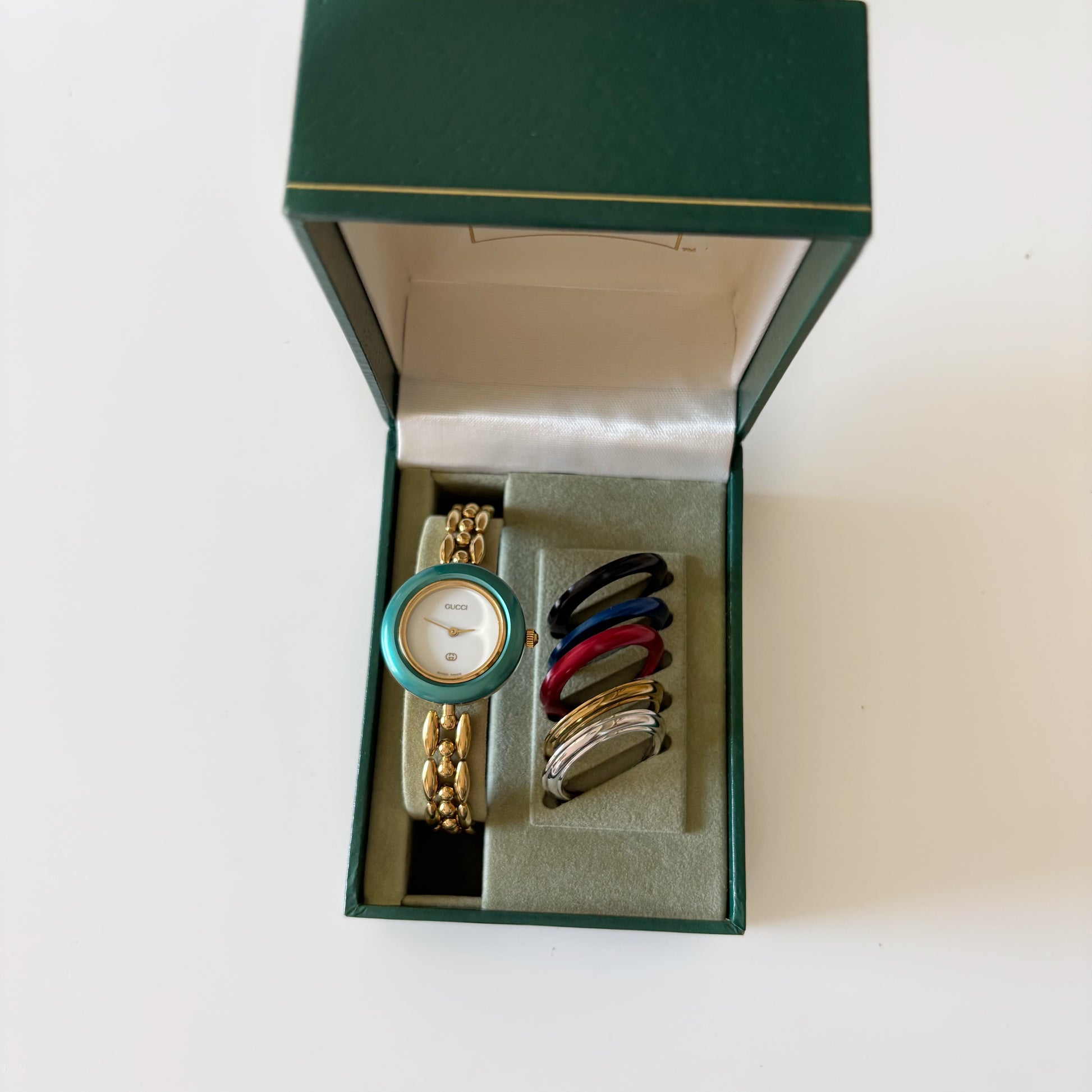 Gucci 1990s Interchangeable Bezel Gold Plated Watch with 6 bezels, case