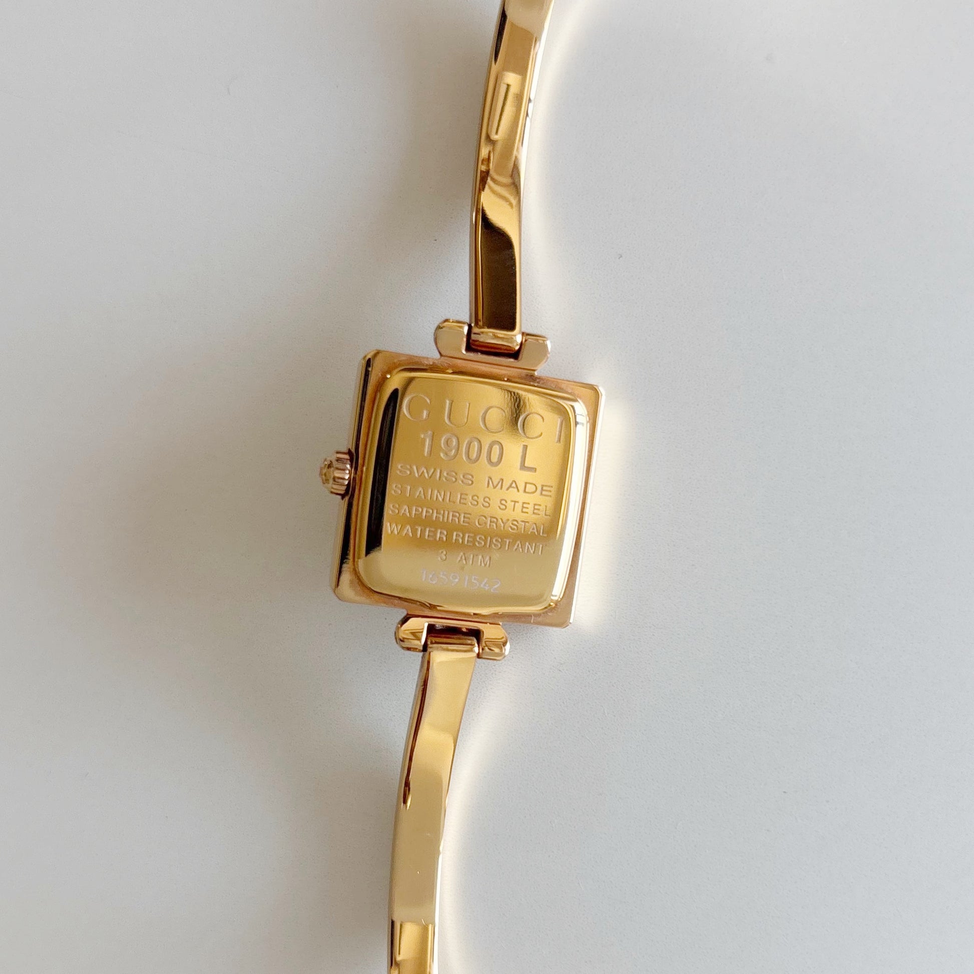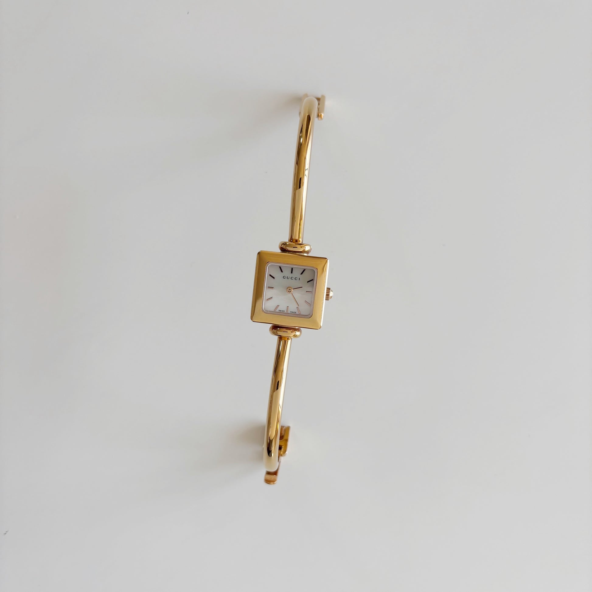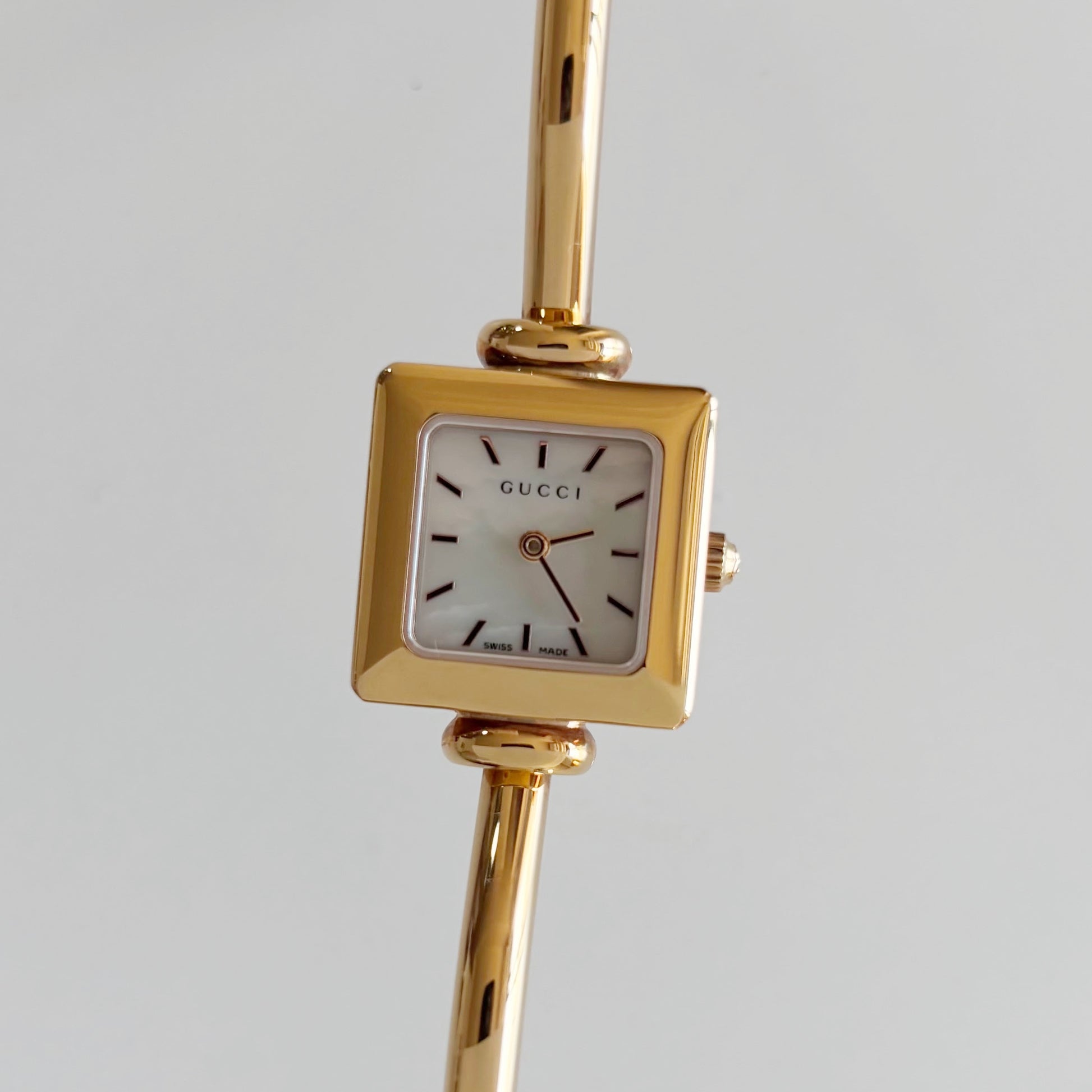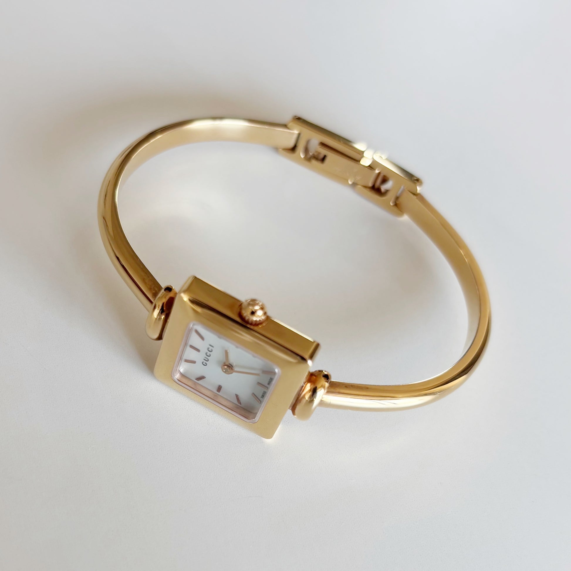 Gucci 1990s Seashell Square Dial Gold Plated Bangle Watch