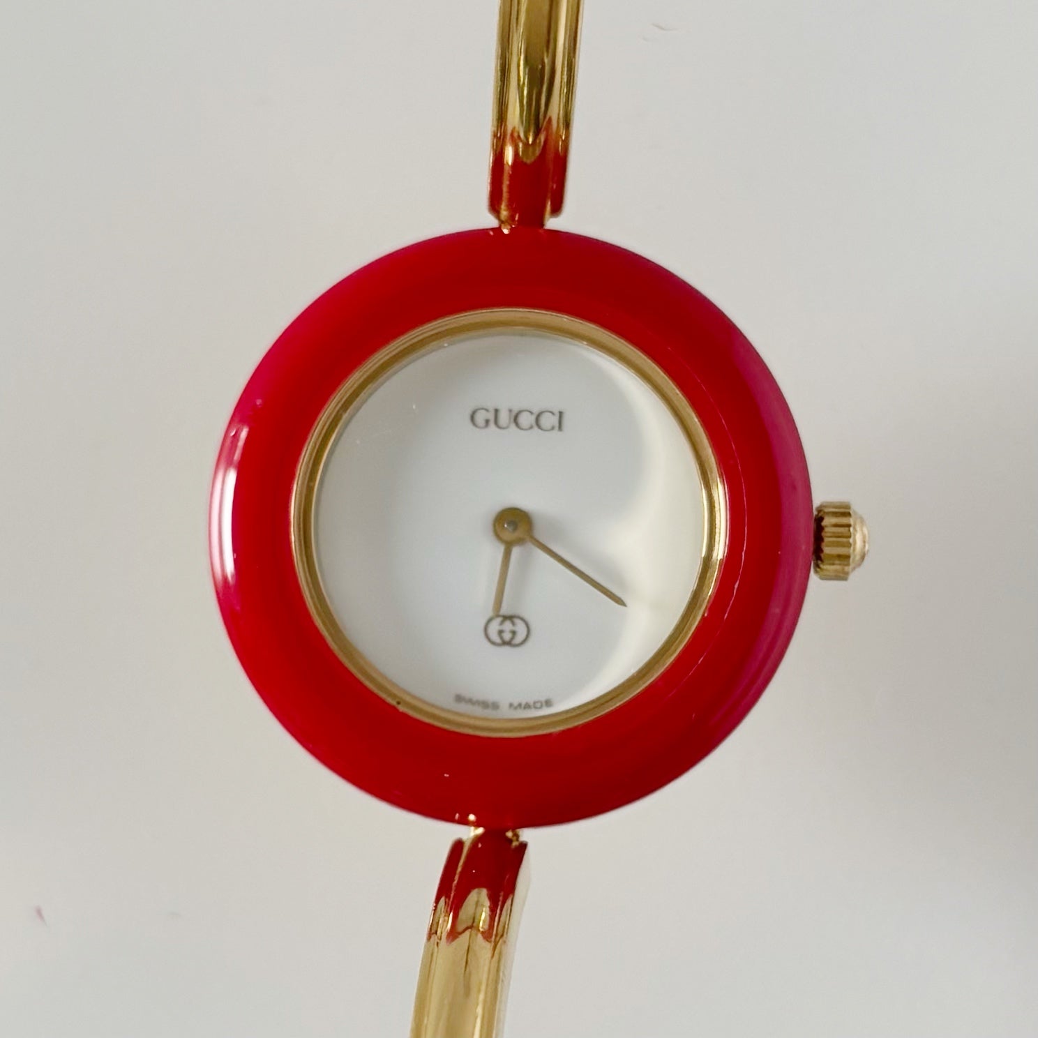 Gucci 1990s Interchangeable Bezel Gold Plated Bangle Watch with 12 bezels, case