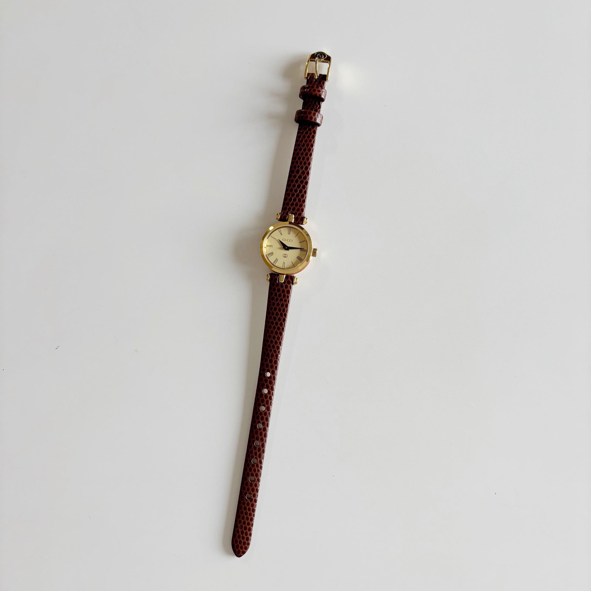 Gucci 1990s Round Gold Dial Gold Plated Watch