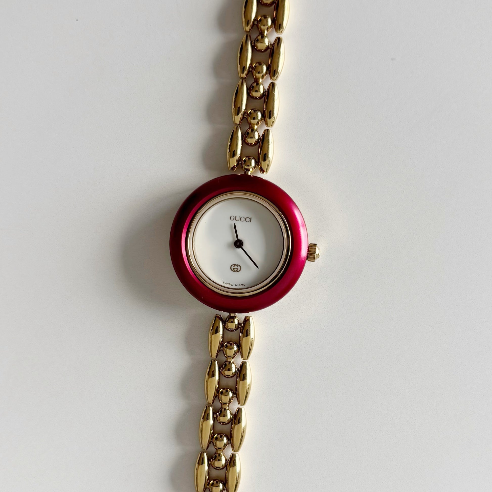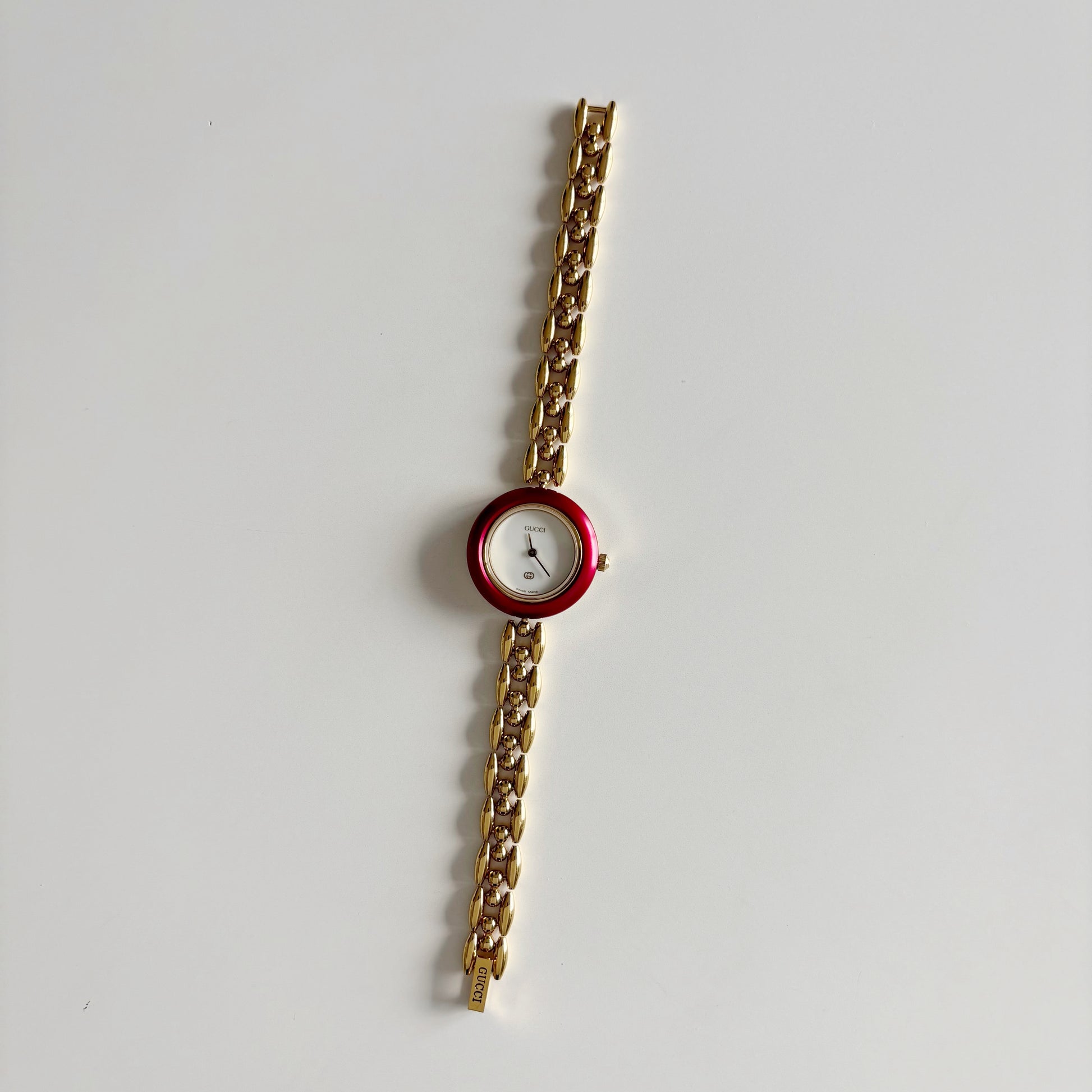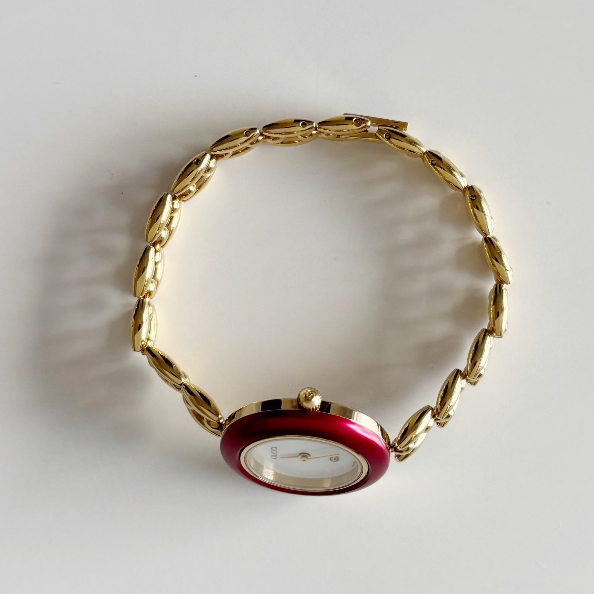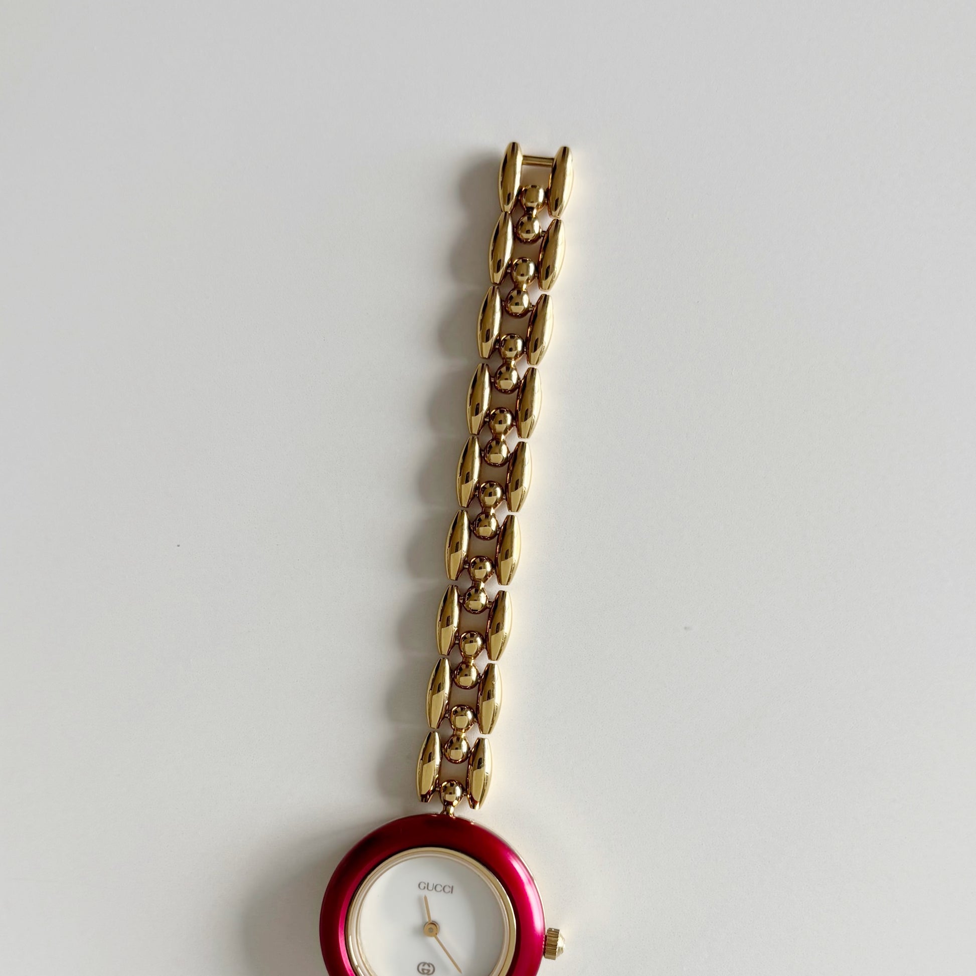 Gucci 1990s Interchangeable Bezel Gold Plated Rice Chain Watch (165mm)