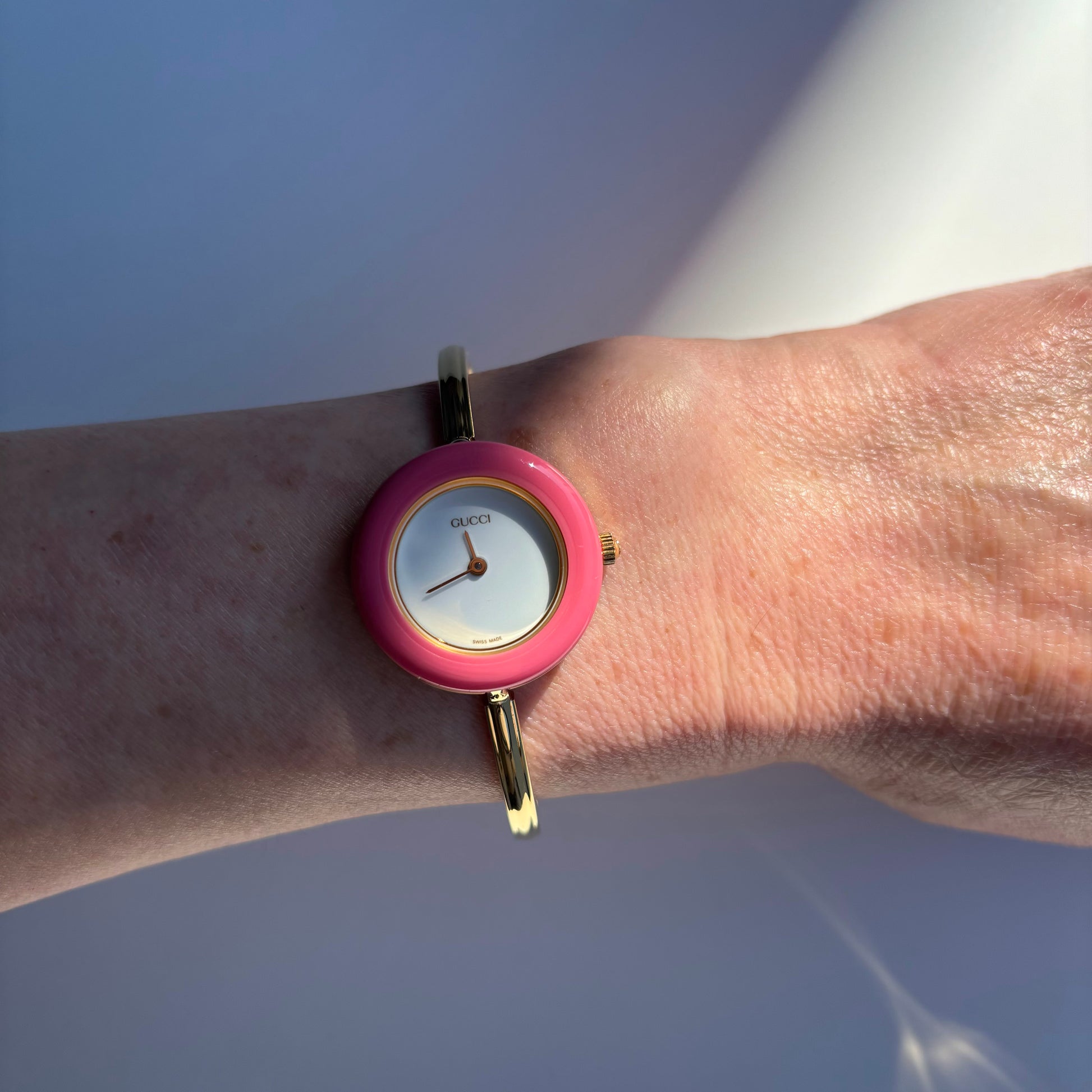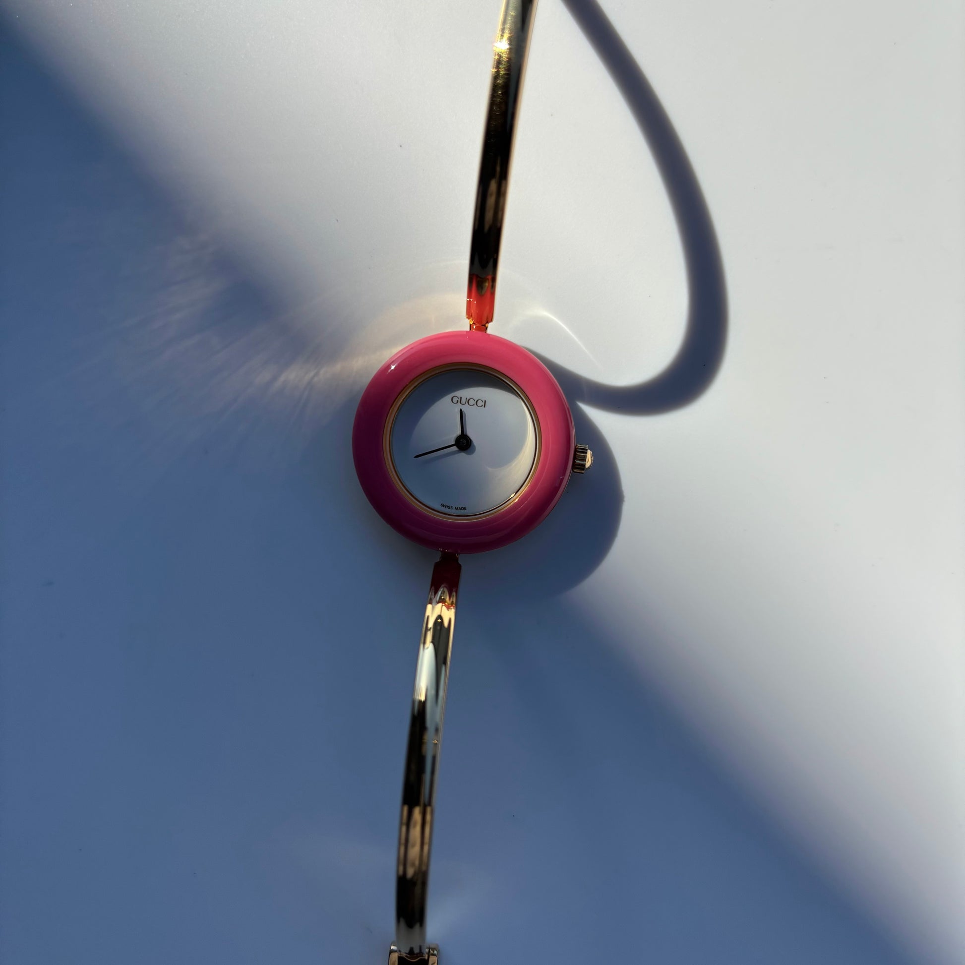Gucci 1990s Interchangeable Bezel Gold Plated Bangle Watch with 12 bezels, case