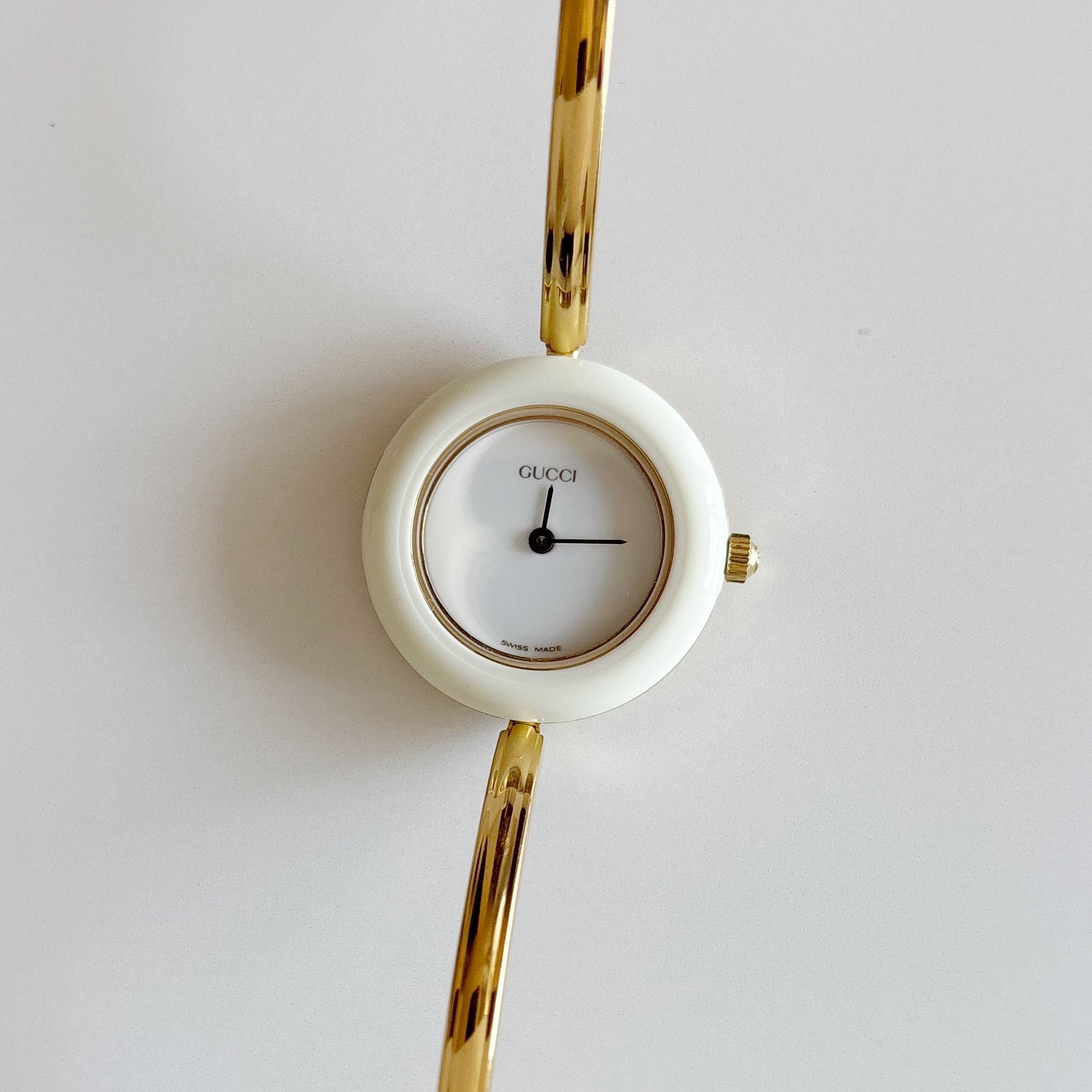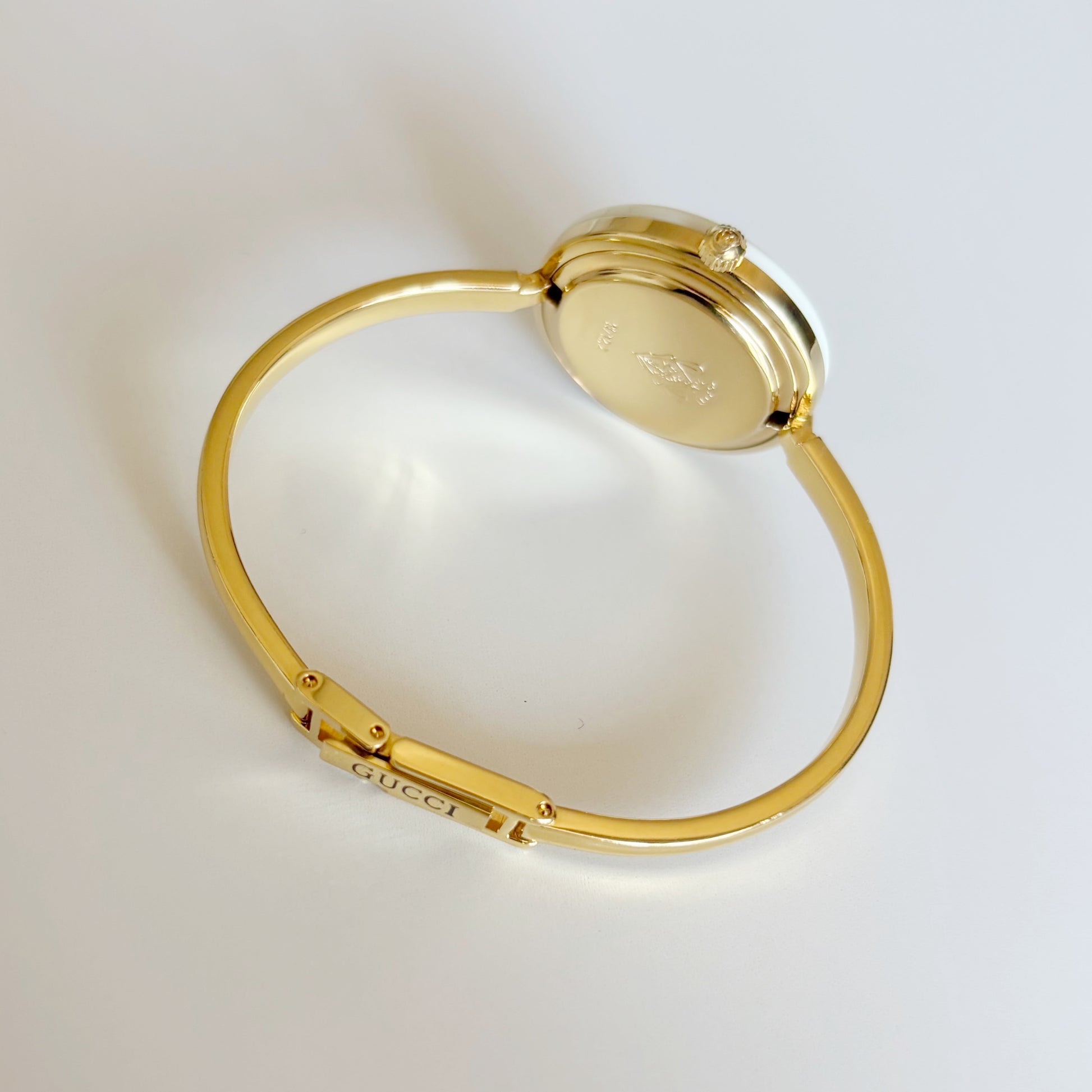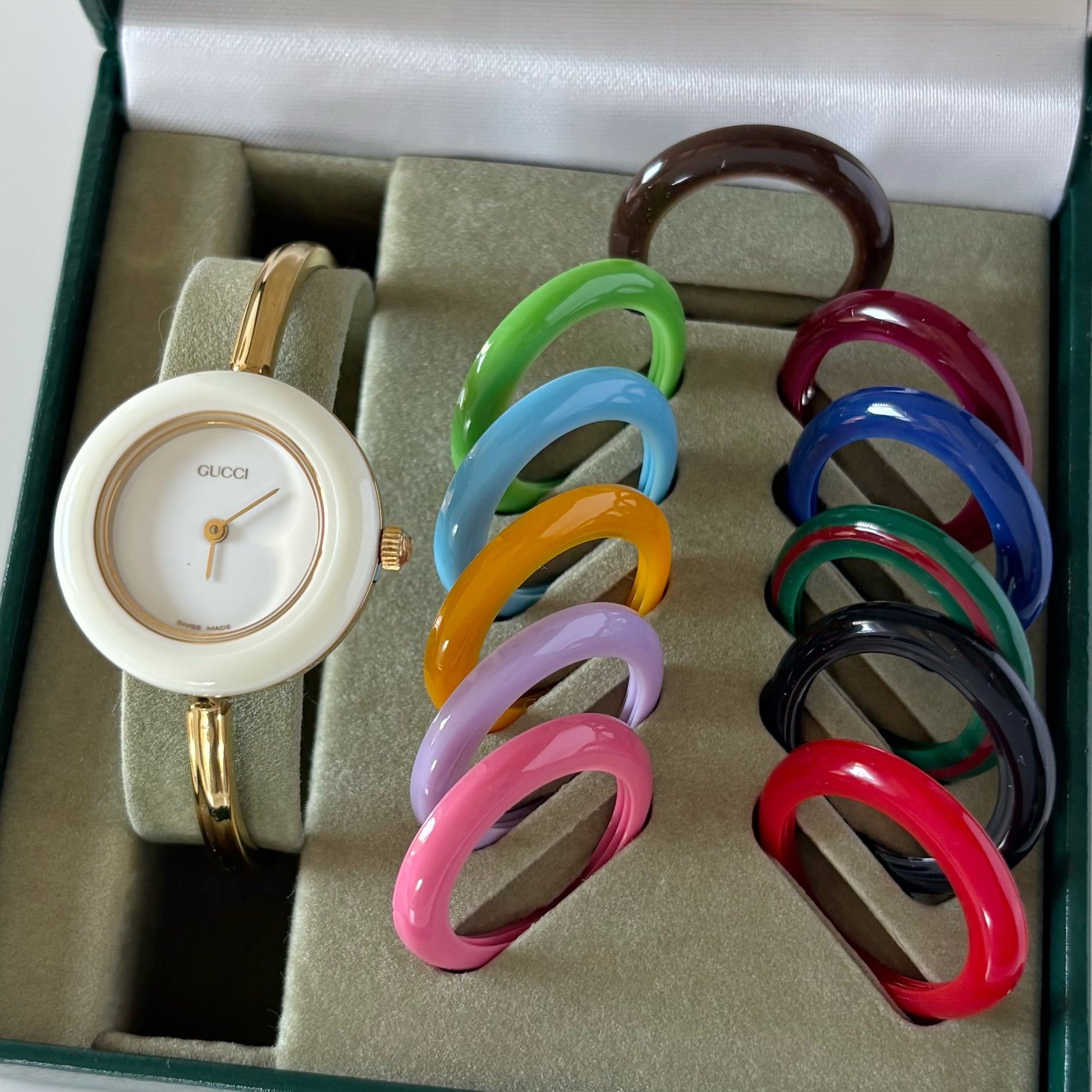 Gucci 1990s Interchangeable Bezel Gold Plated Bangle Watch with 12 bezels, case (Small)