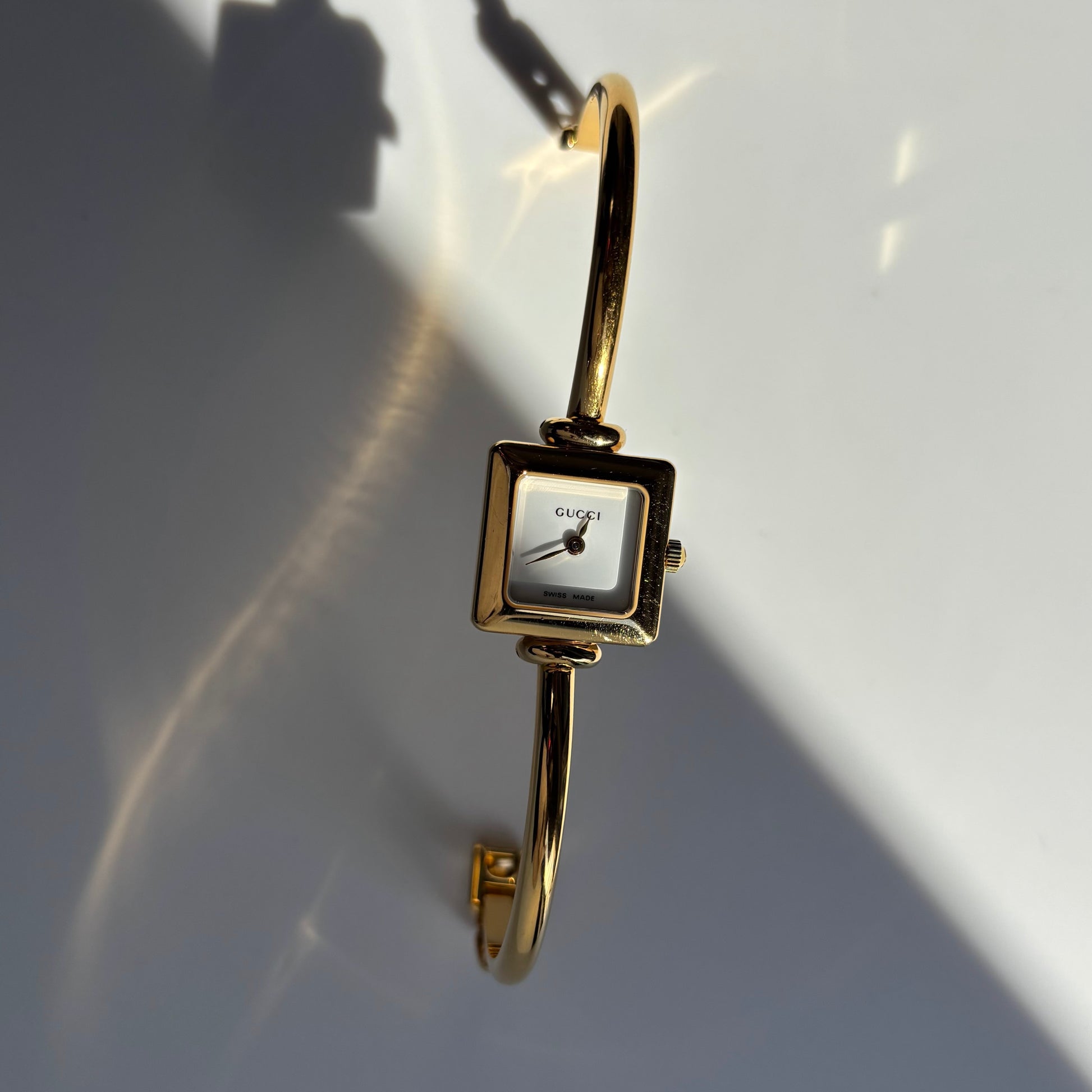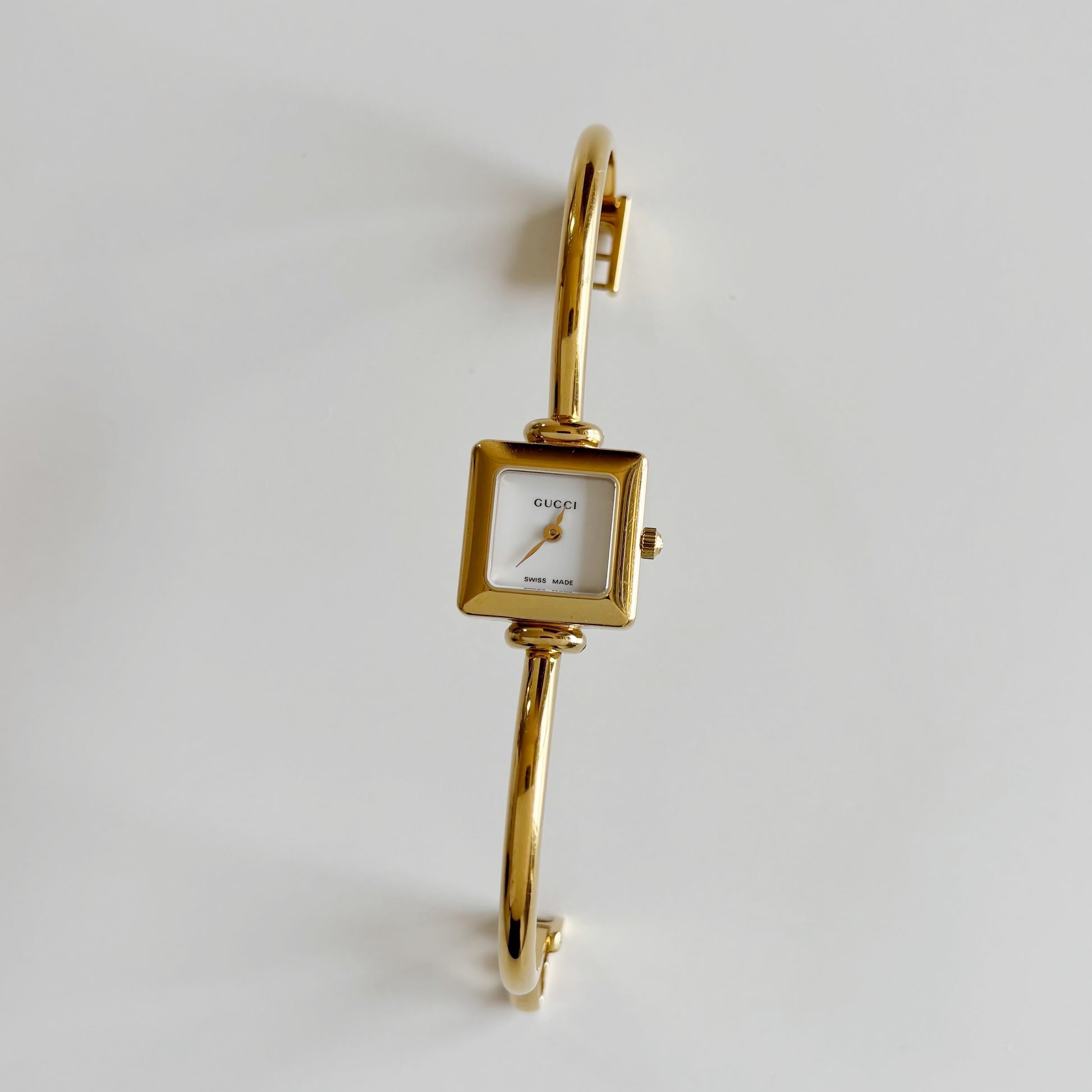 Gucci 1990s Square Dial Gold Plated Bangle Watch