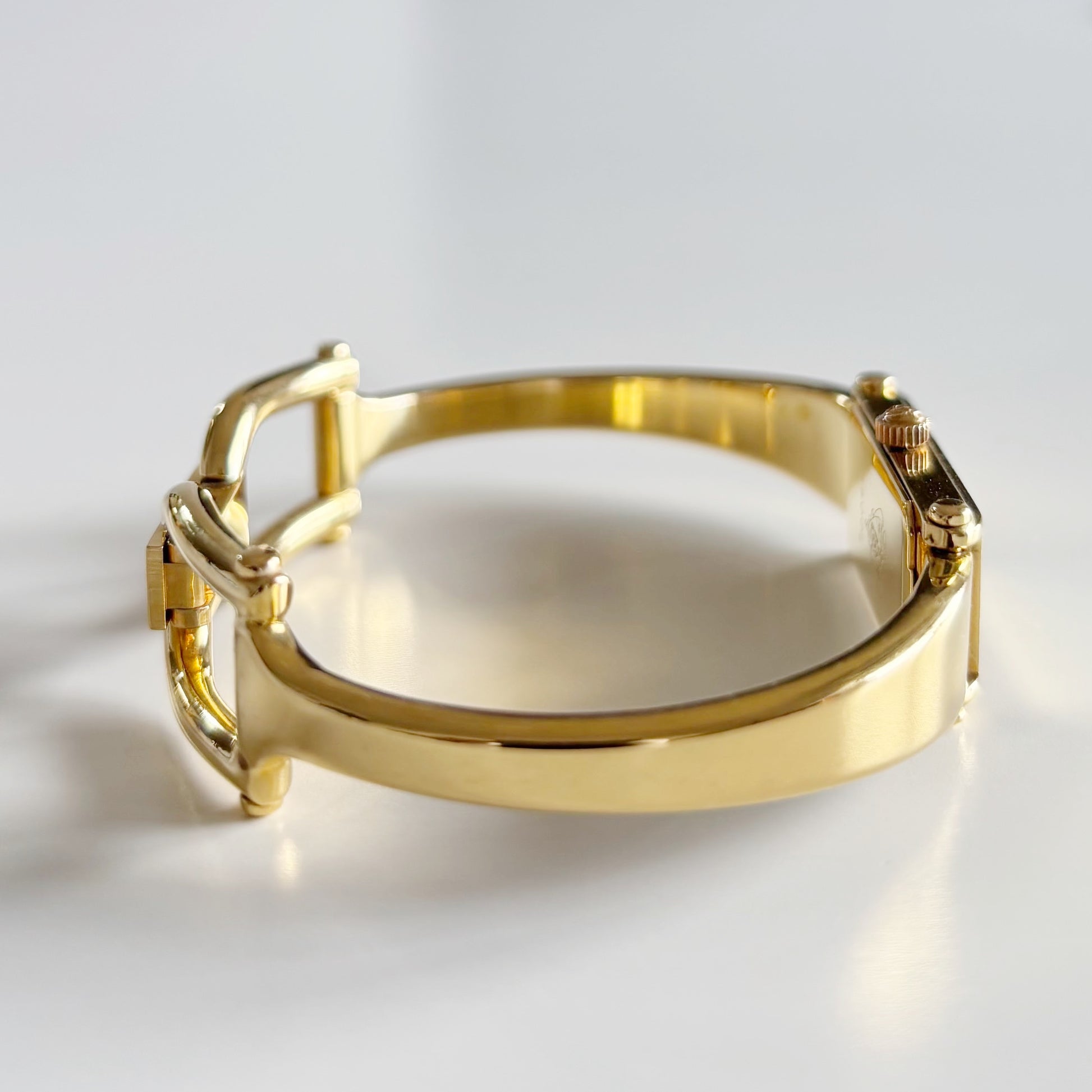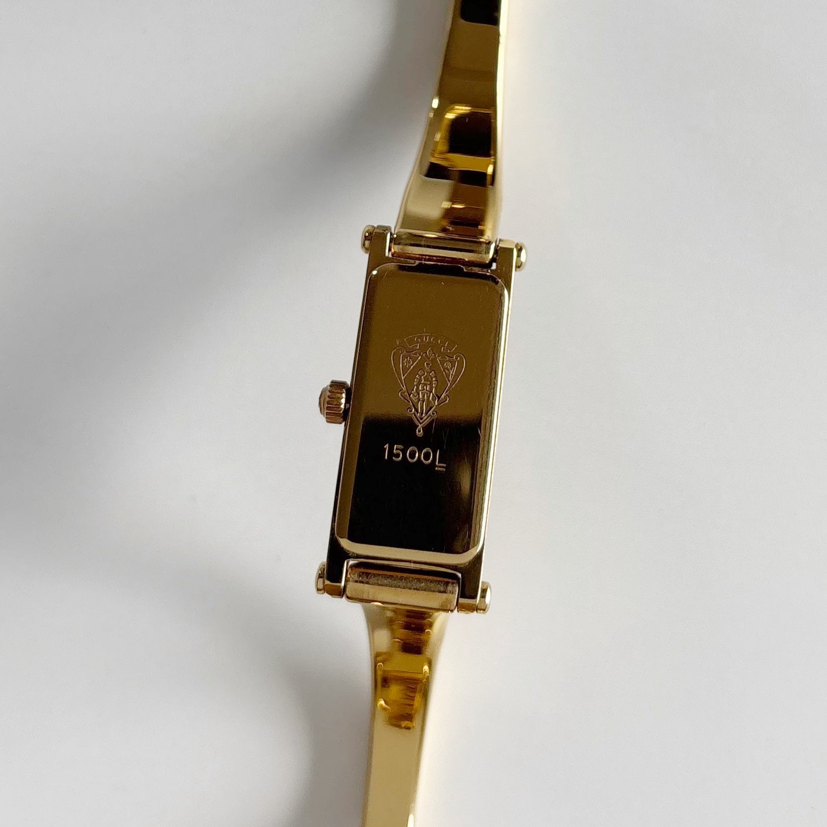 Gucci 1990s Gold Rectangular Dial Gold Plated Bangle Watch