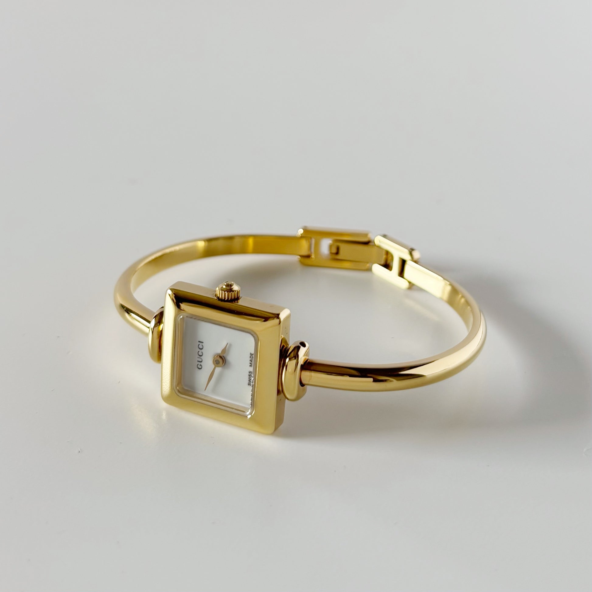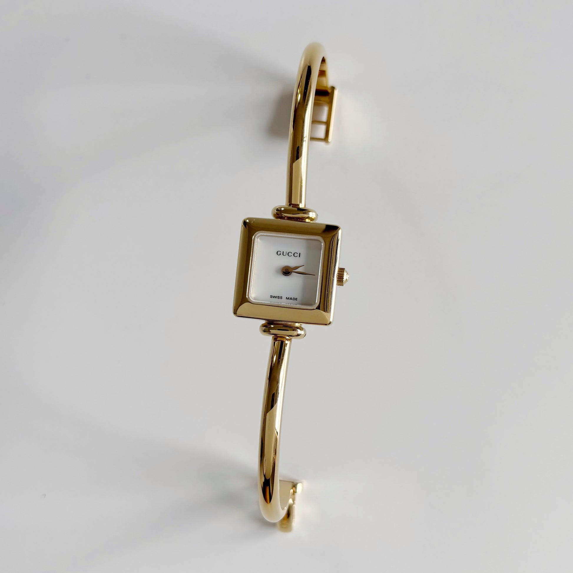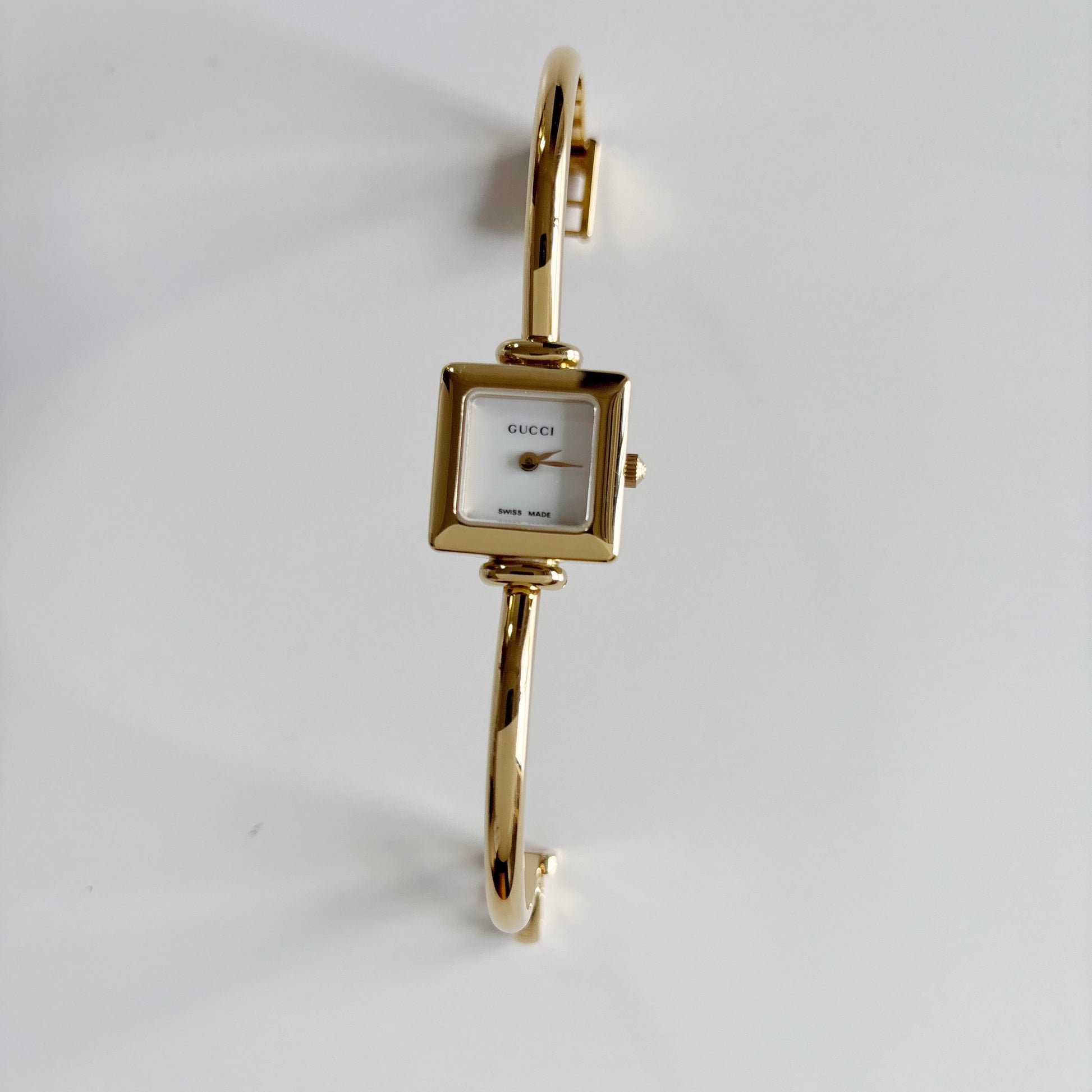 Gucci 1990s Square Dial Gold Plated Bangle Watch