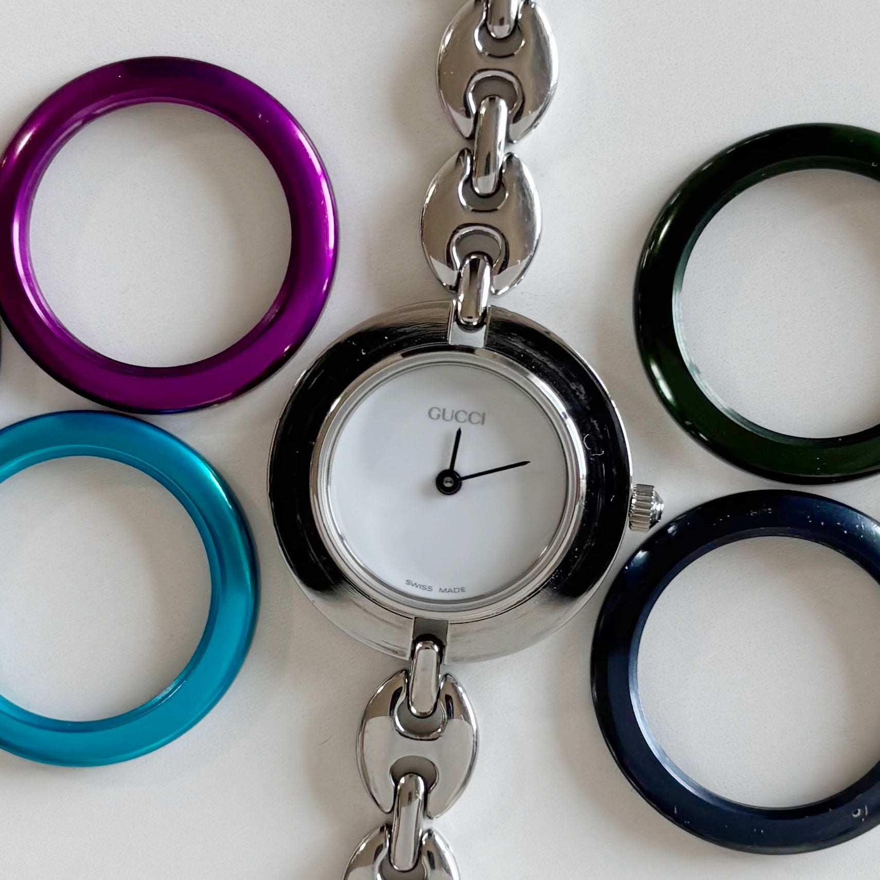 Gucci 1990s Interchangeable Bezel Stainless steel Watch with 6 bezels, case (165mm)