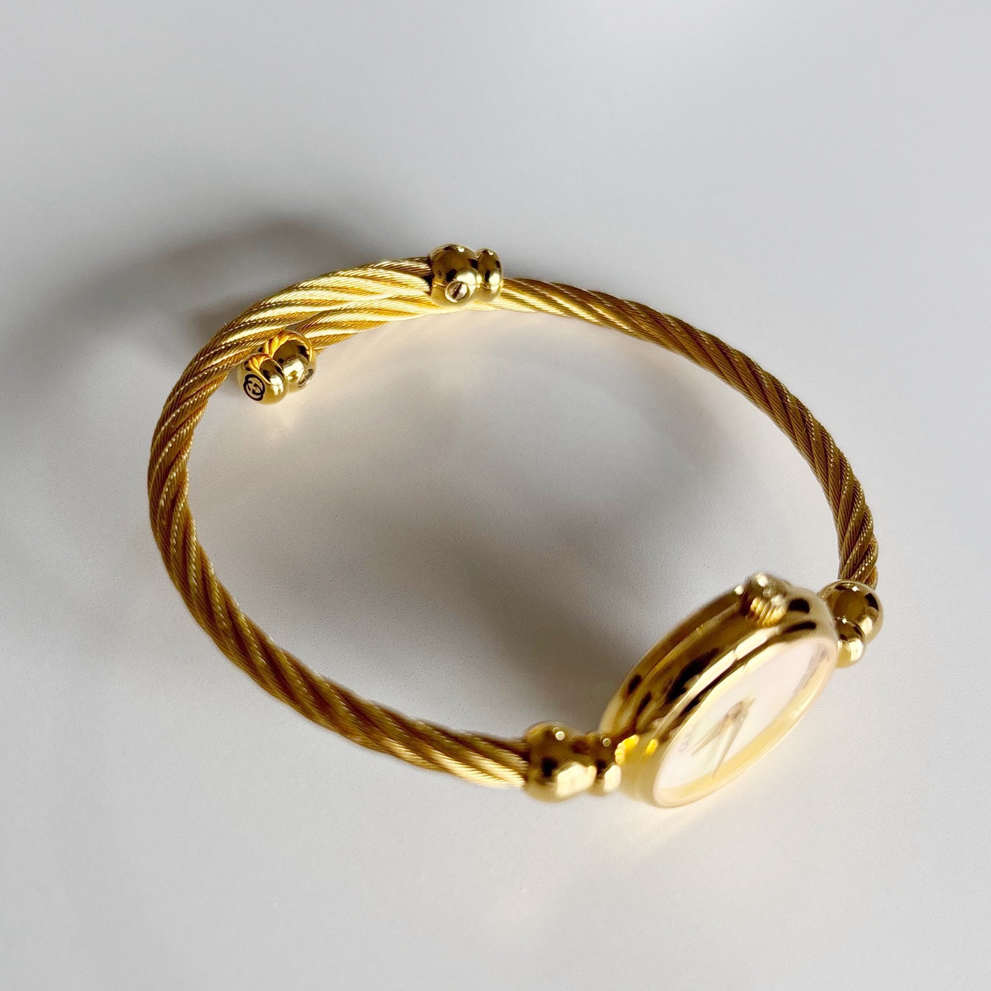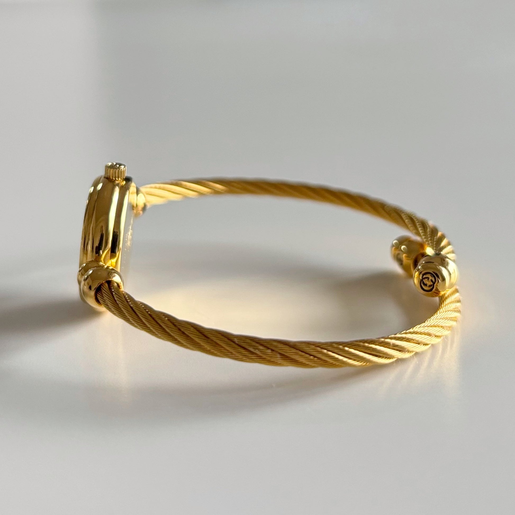 Gucci 1990s Seashell Dial Gold Plated Cable Band Bangle Watch