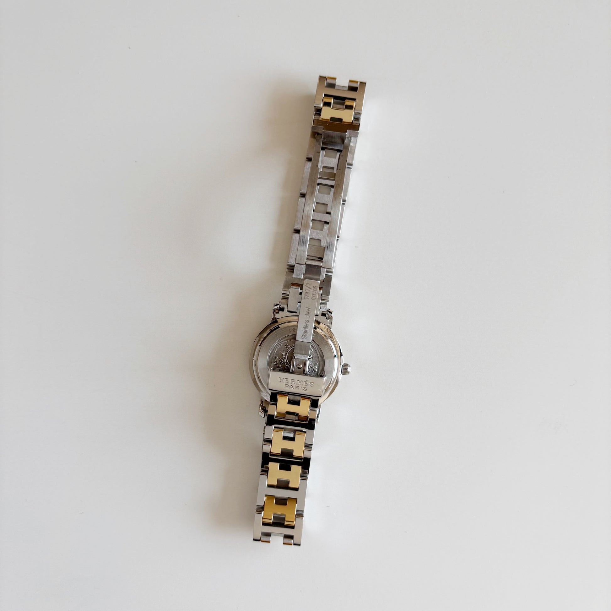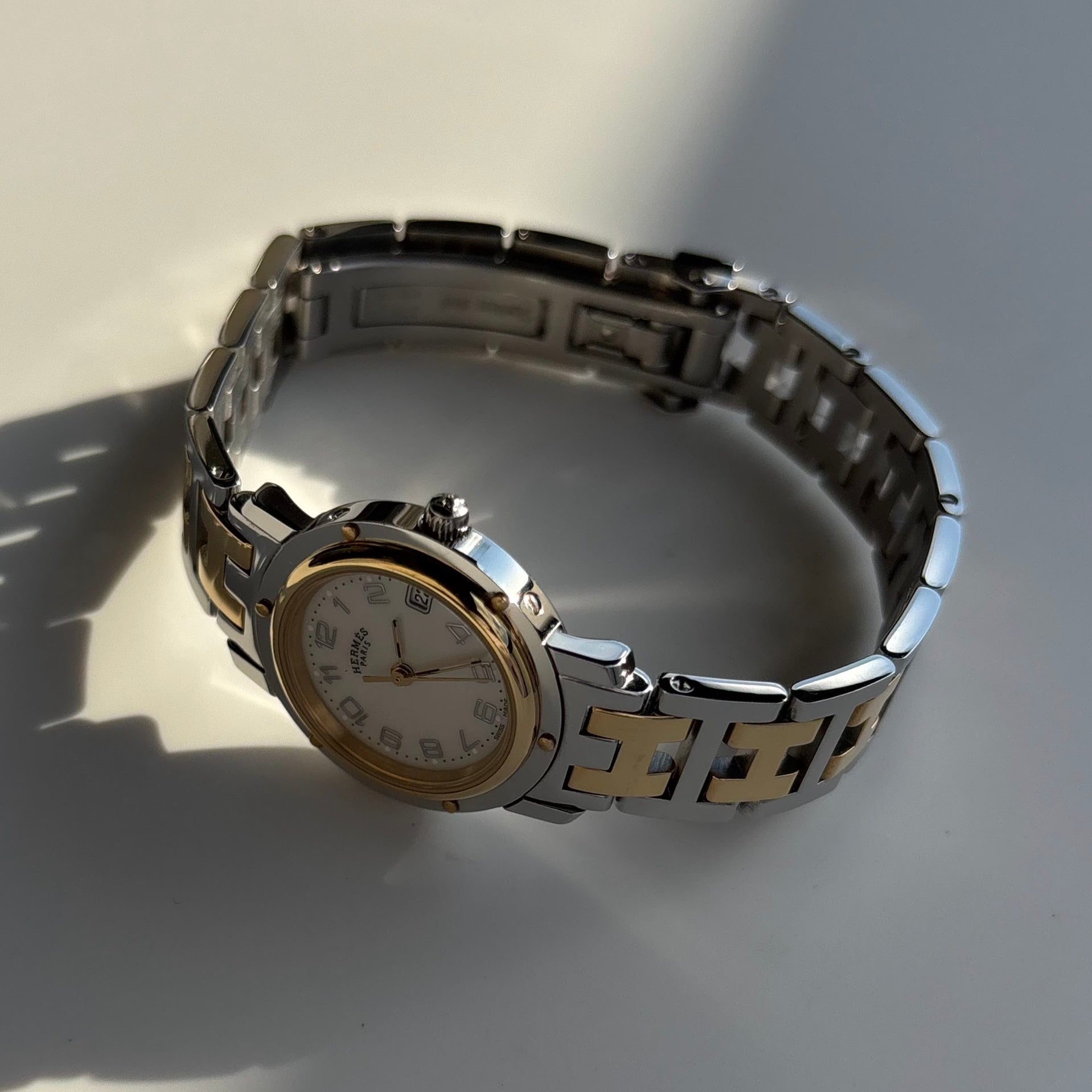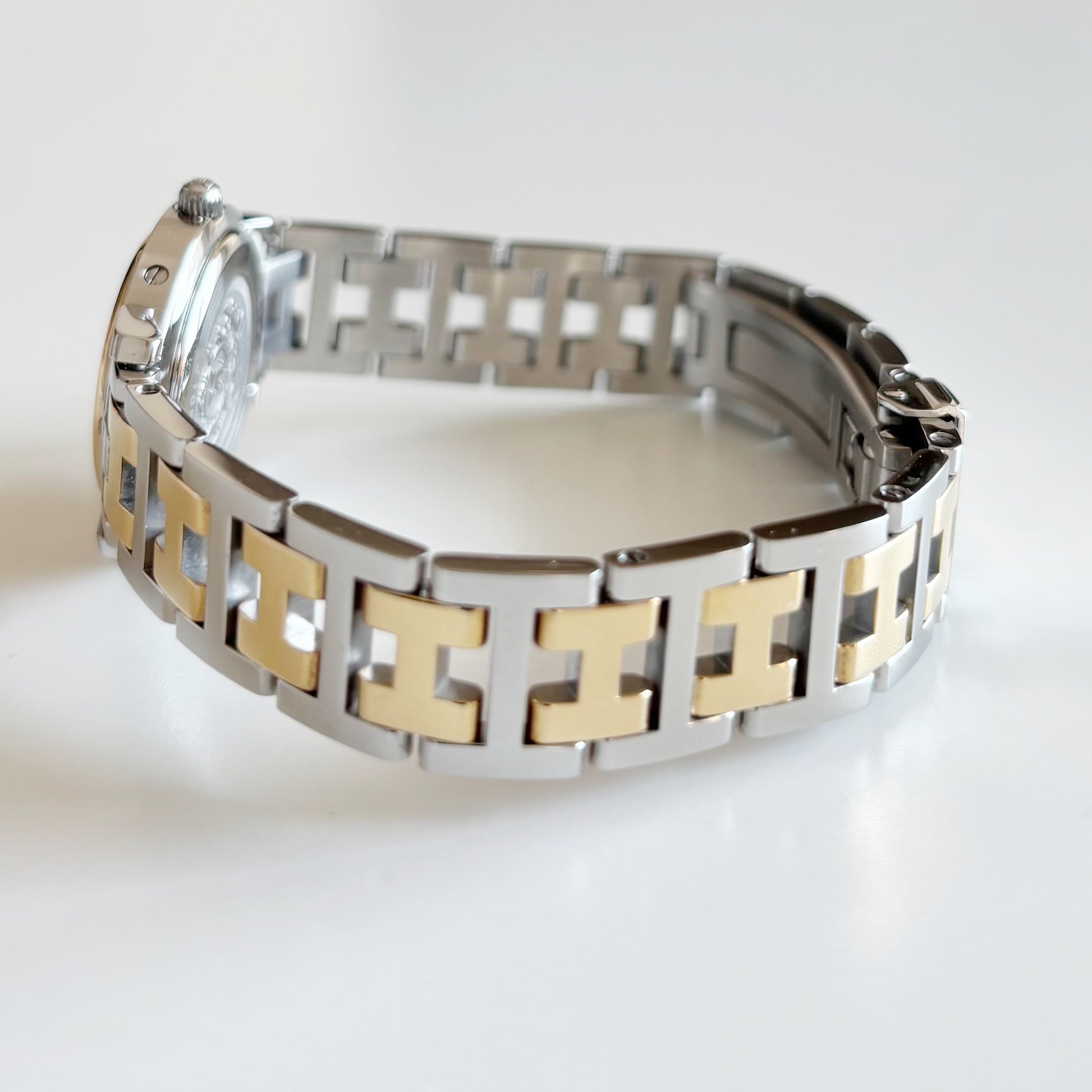 Hermes Early 2000s Clipper Seashell Dial Gold Plated Two Tone Watch