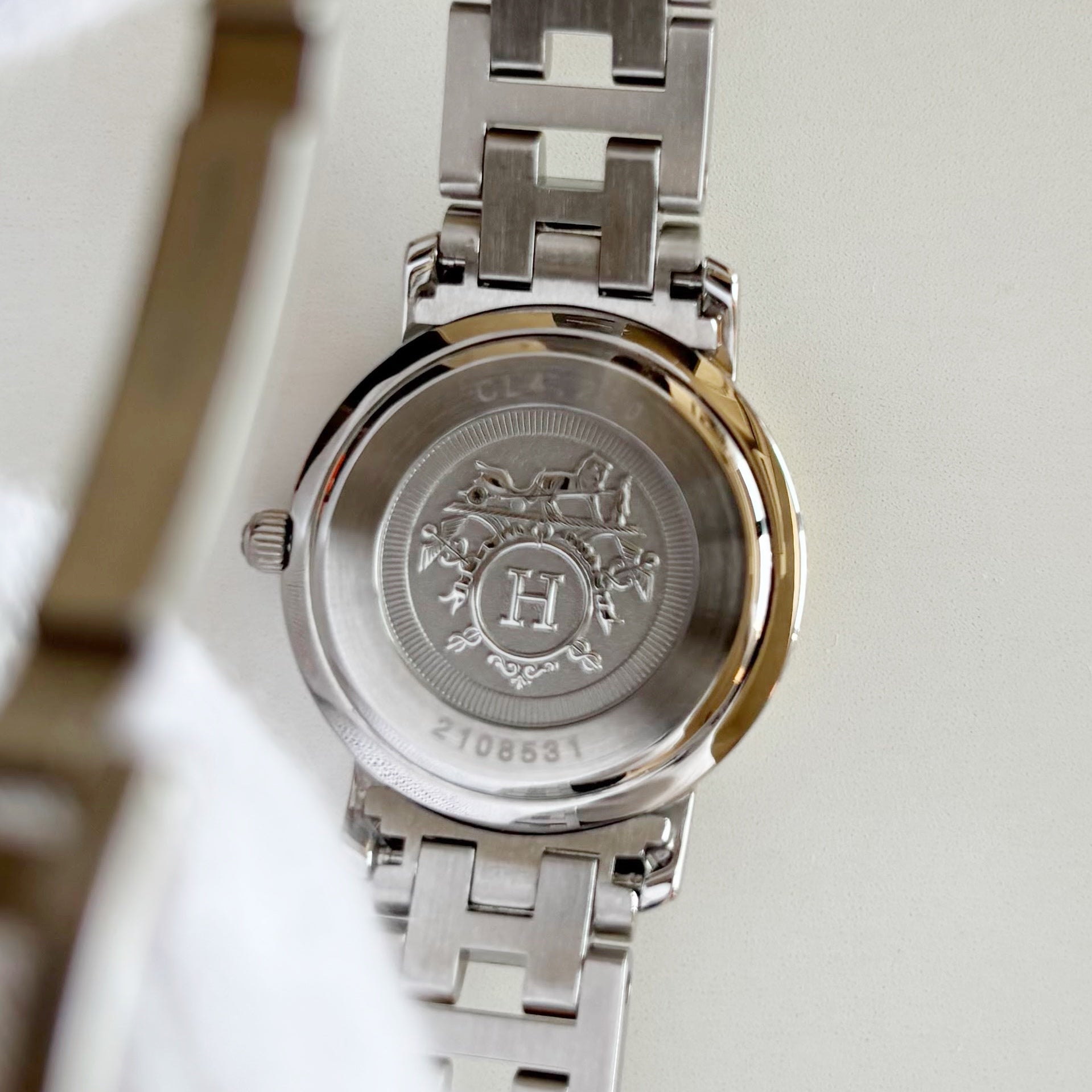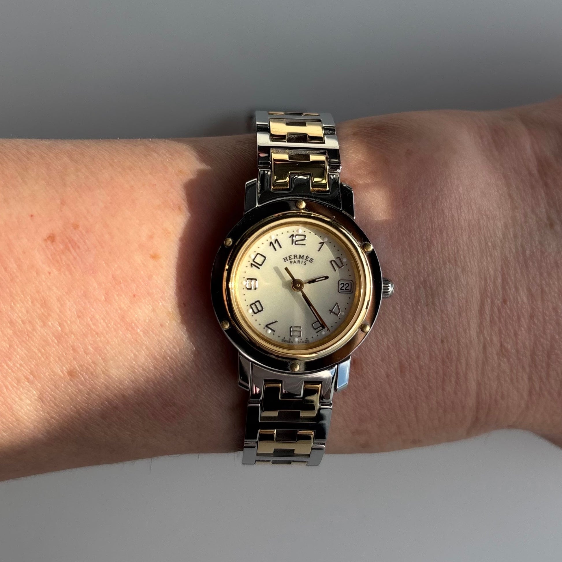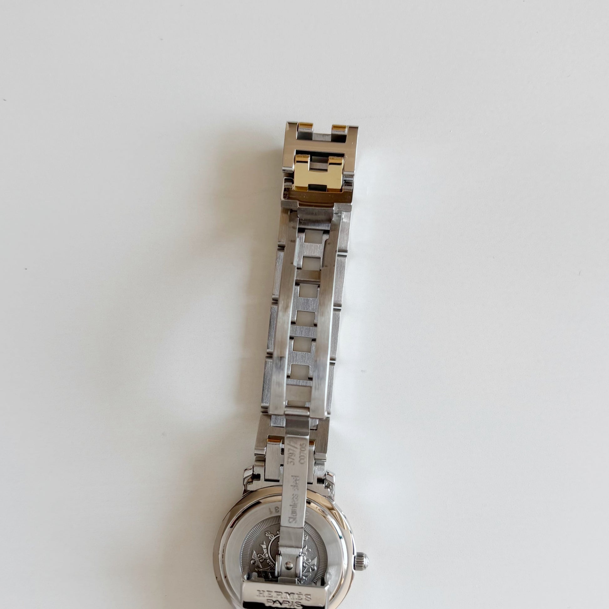 Hermes Early 2000s Clipper Seashell Dial Gold Plated Two Tone Watch