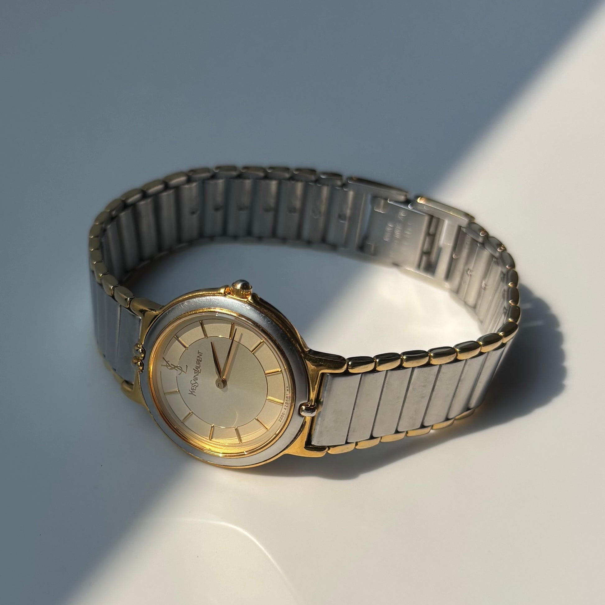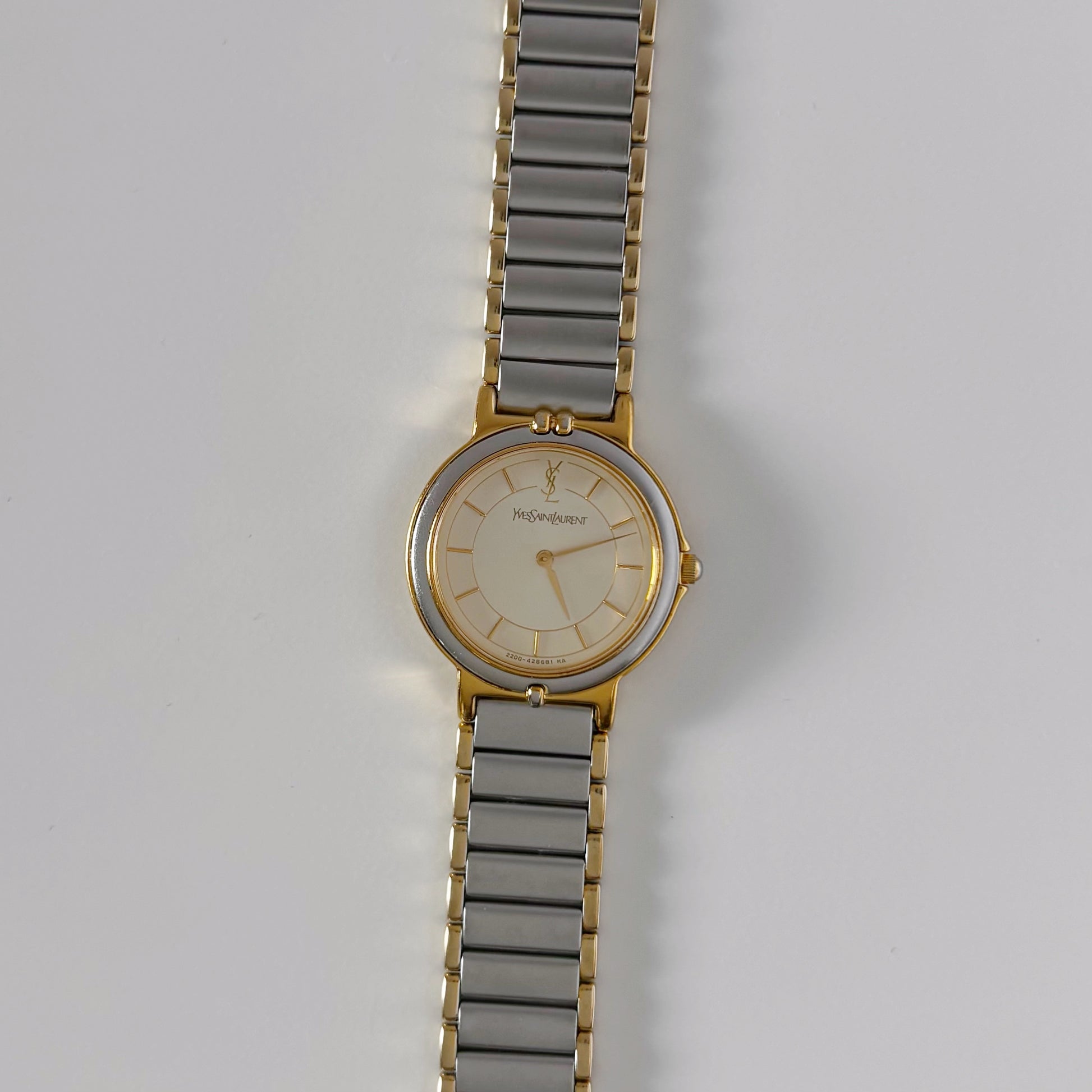 Yves Saint Laurent 1990s Round Dial Two Tone Watch