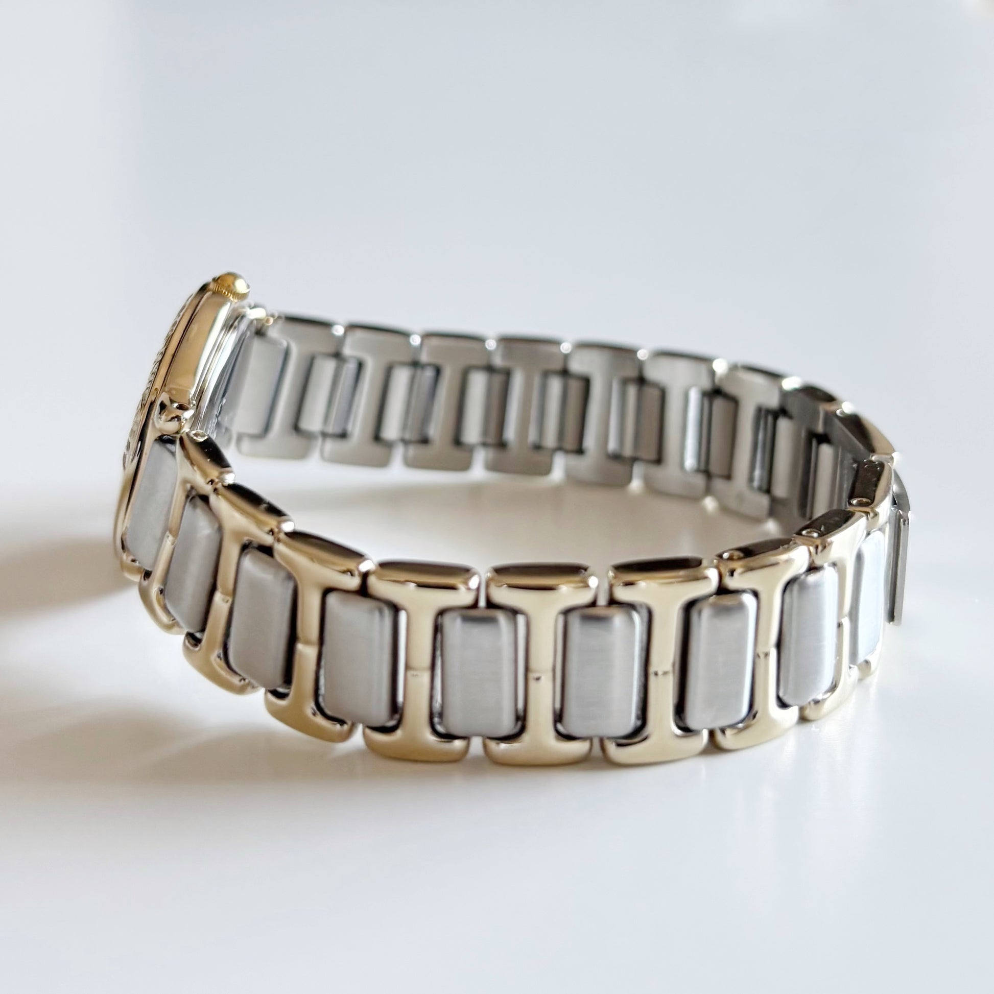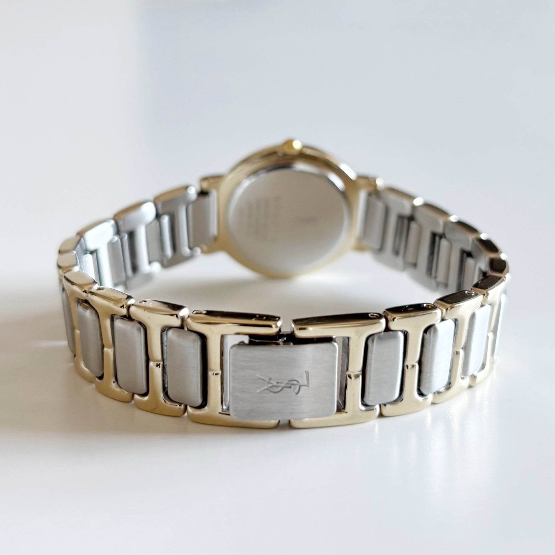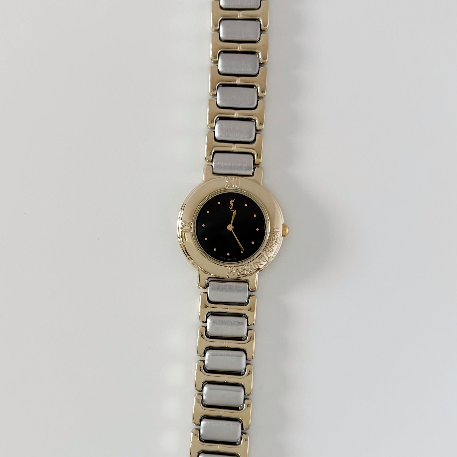 Yves Saint Laurent 1990s Black Round Dial Two Tone Watch