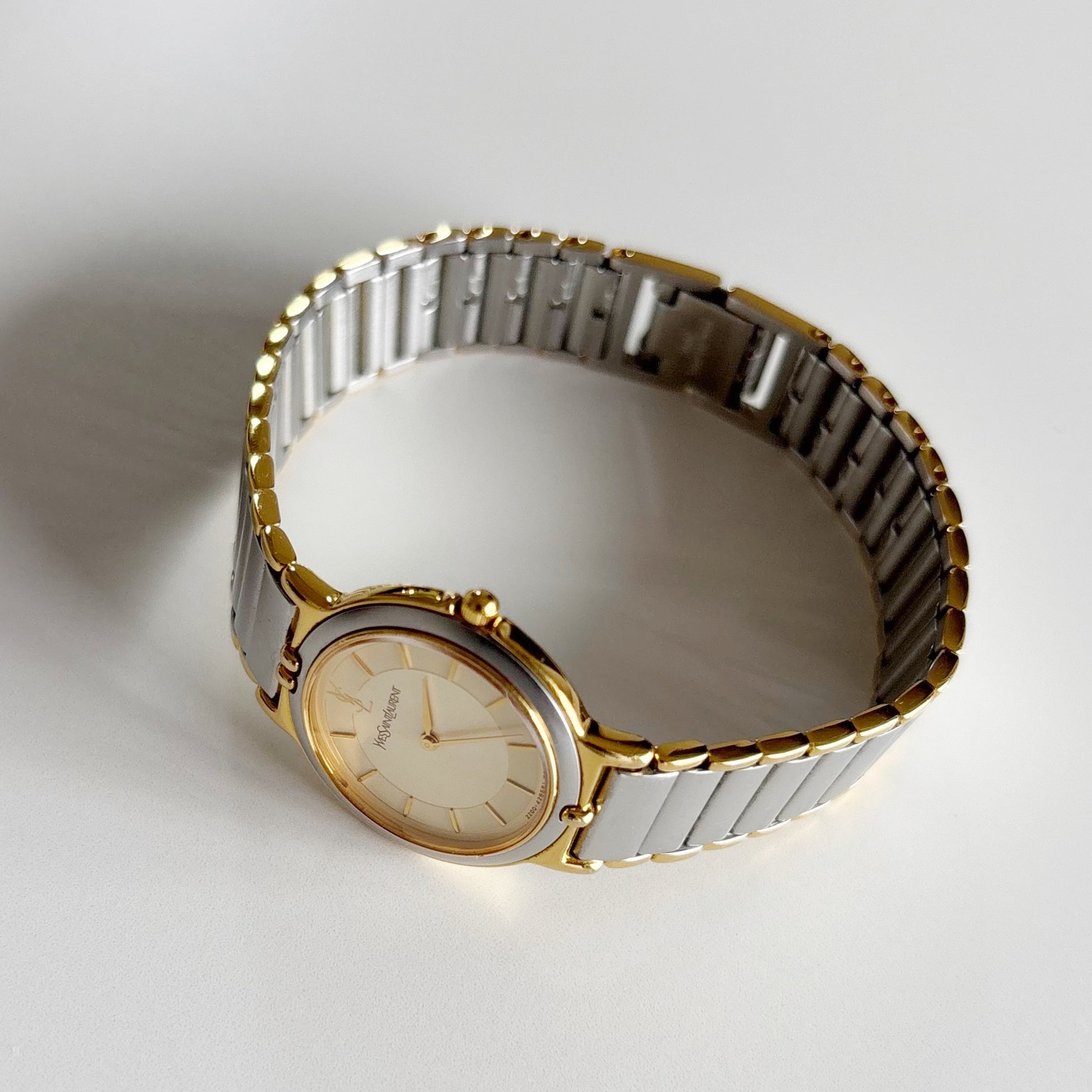 Yves Saint Laurent 1990s Round Dial Two Tone Watch