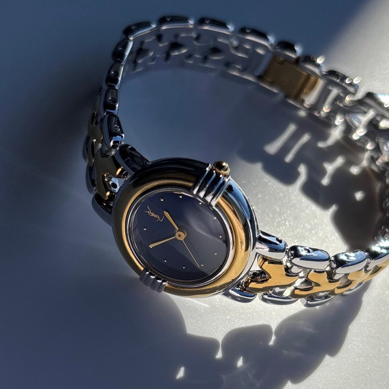 Yves Saint Laurent 1990s Round Dial Two Tone Watch