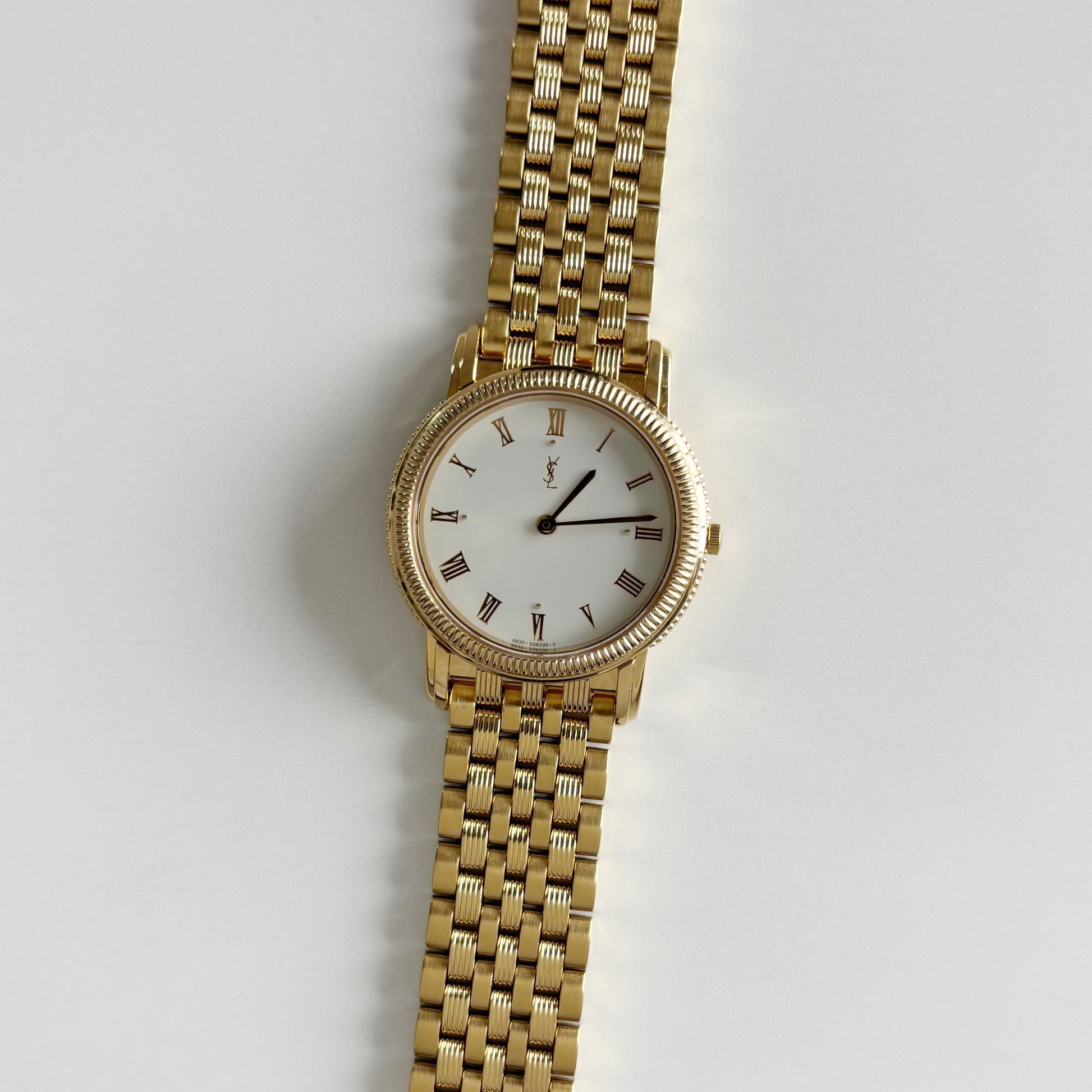 Yves Saint Laurent 1990s Round Dial Gold Plated Watch (Large)